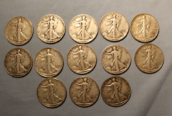 13 Walking Liberty U.S. silver half dollars dated 1937 to 1946.