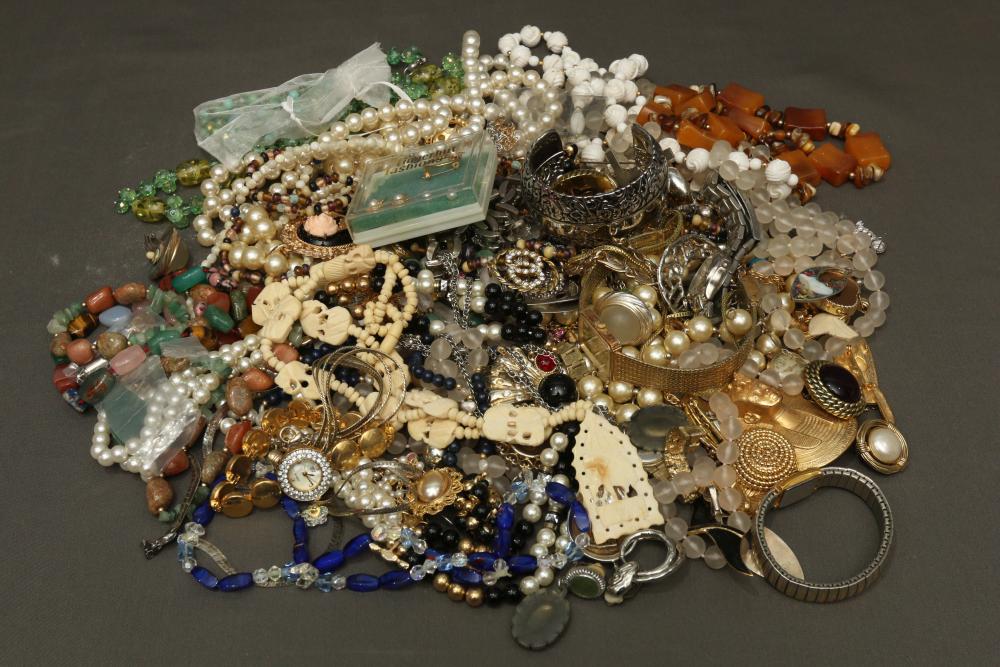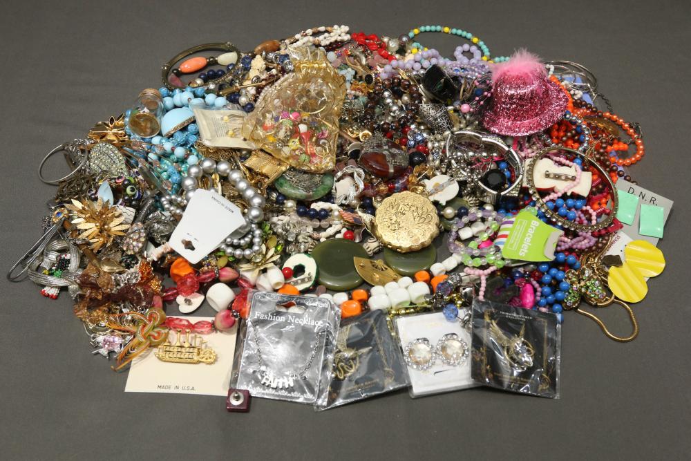 Costume jewelry incl necklaces, earrings, pendants, broaches, rings, bracelets, pins, etc.