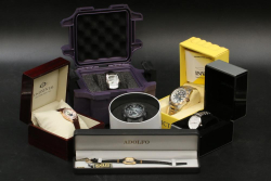 Six wrist watches incl two Invicta, Adolfo, Continental, G-Shock, and Emporio Armani, Adolfo watch with COA for diamond and mother of pearl face, some with metal and leather bands.