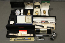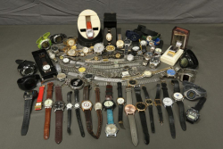 Wrist watches with brands incl FitBit, Seiko, JoJo, Samsung Gear 2, Tag Heuer, Rumours, Casio, Athletic Works, Swiss, Bulova, RJG, Monroe, Sharp, etc, some with metal, leather, silicone, etc.