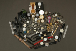 Watch accessories including various bands ranging in width, color, material, also incl backs, pins, etc.