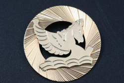 Stamped 14K gold pin depicting seahorse? marked on back "R.D.H. 1947-1971", total weight being 9 grams.