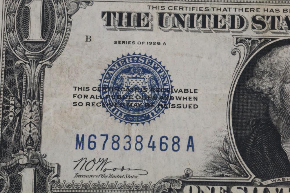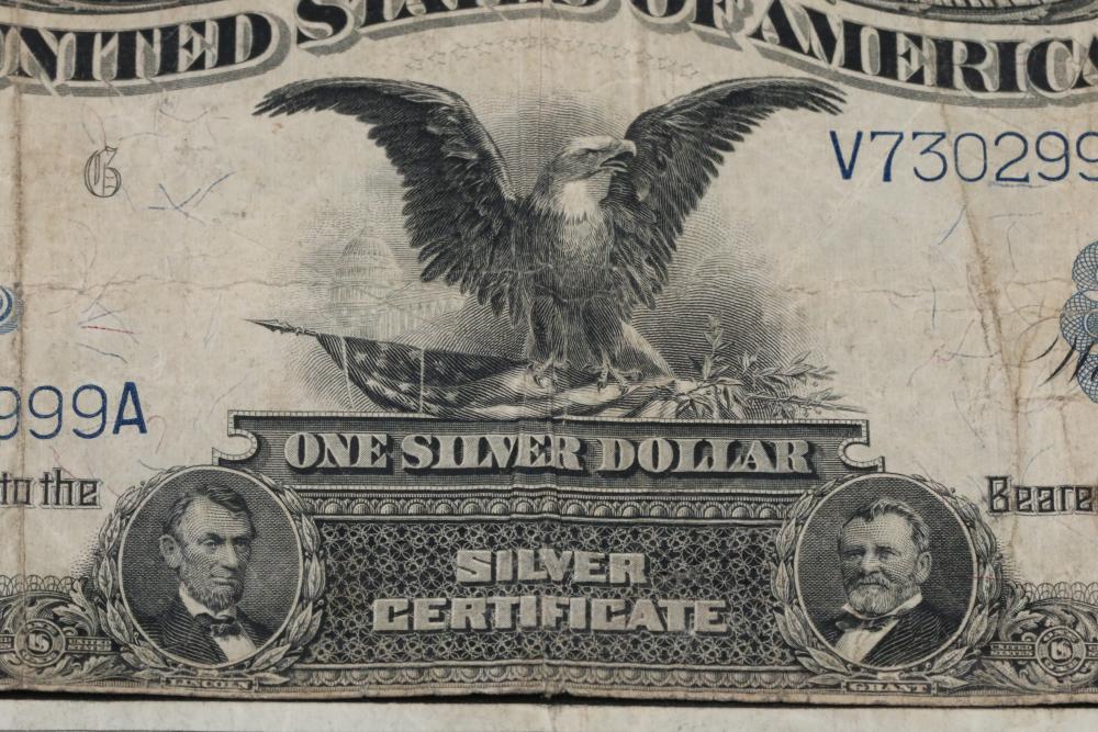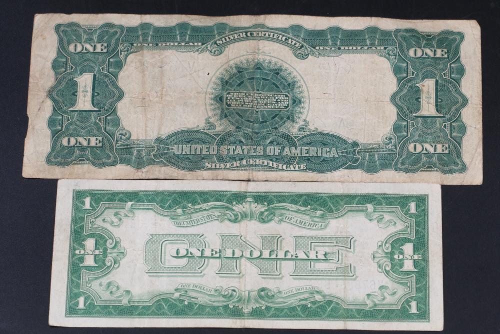 Two U.S. $1 Silver certificate notes incl one large bill series 1899, and one series 1928A.