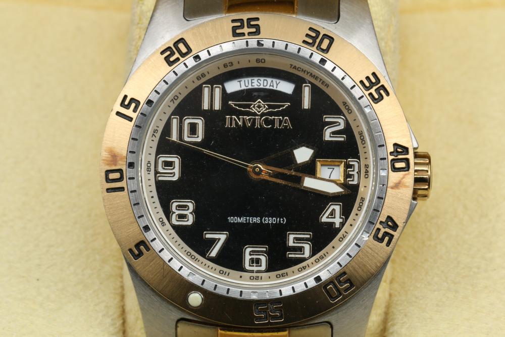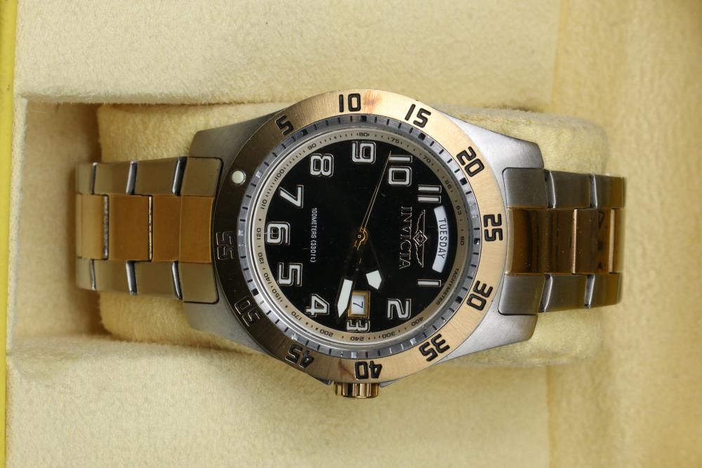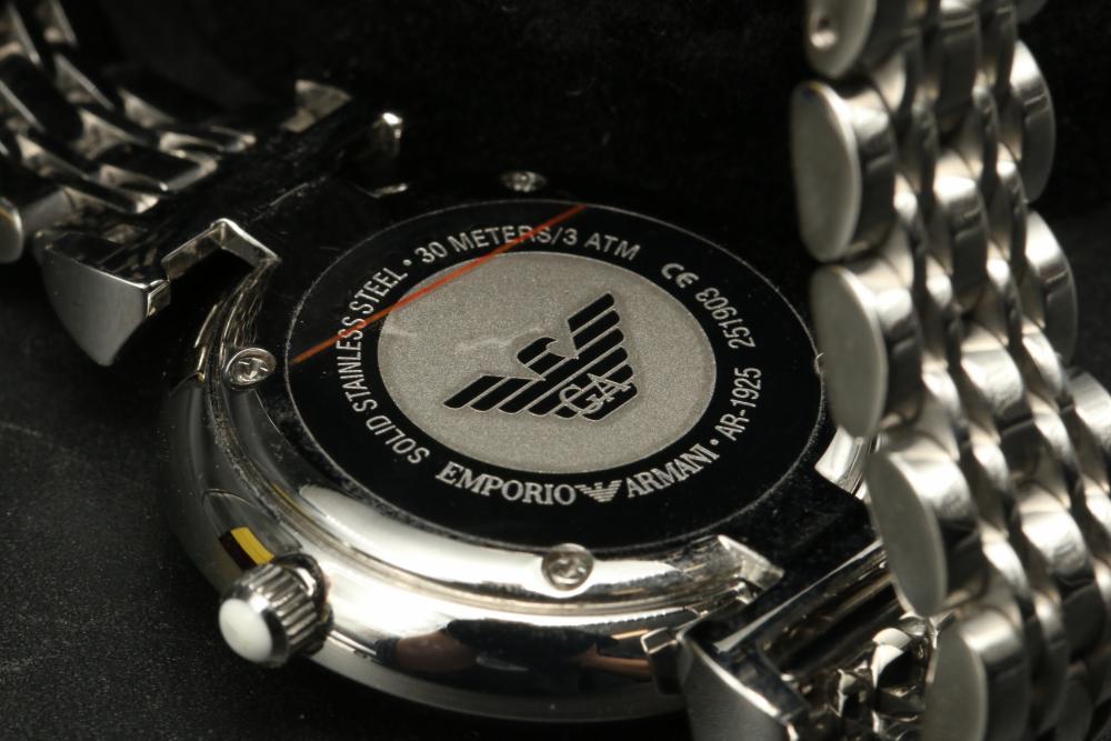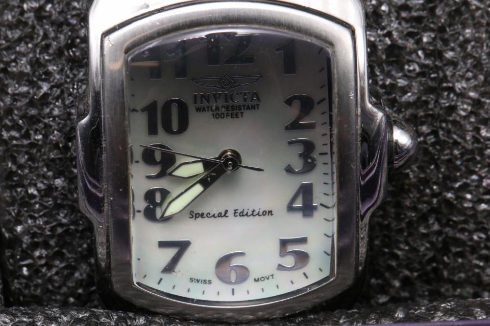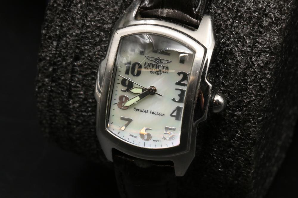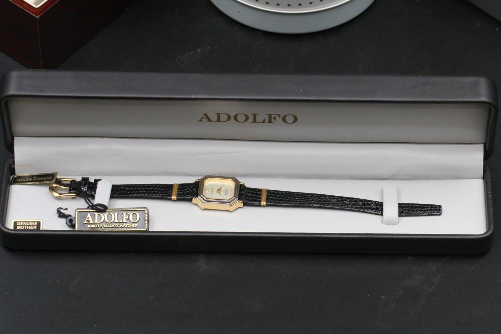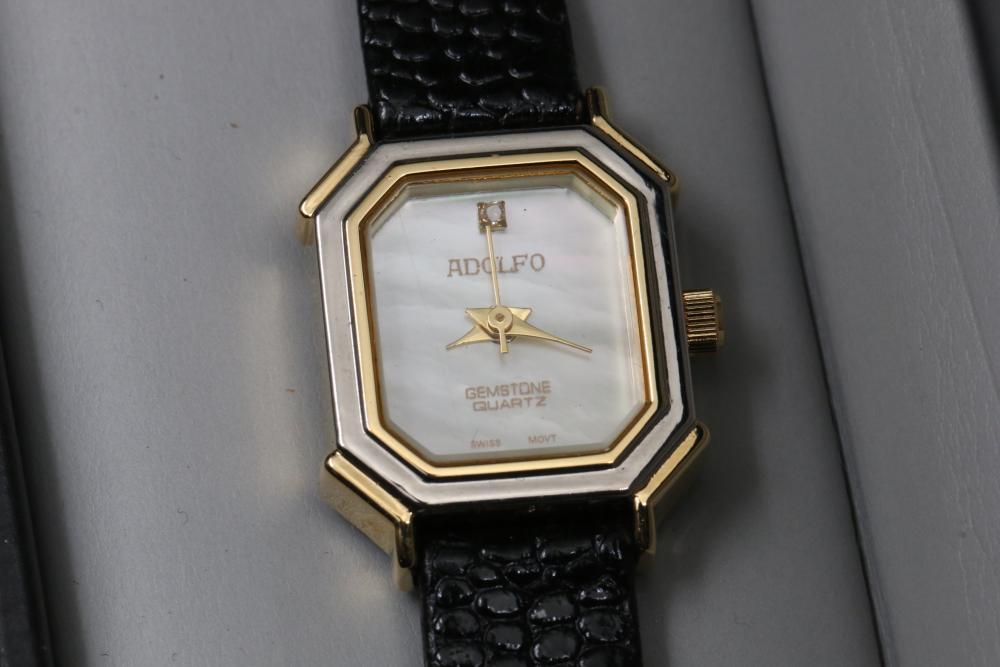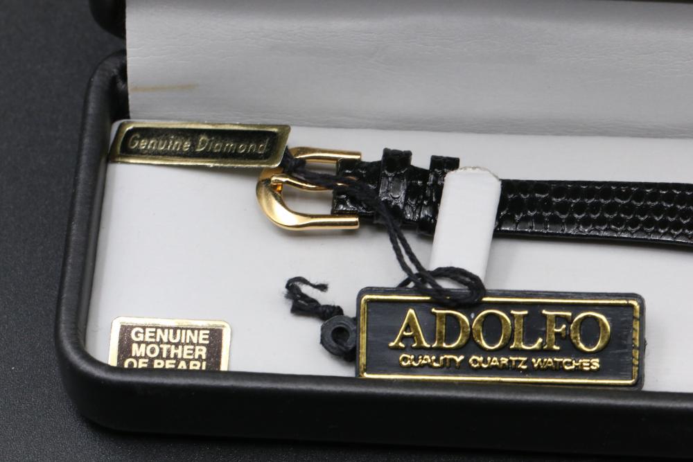 Six wrist watches incl two Invicta, Adolfo, Continental, G-Shock, and Emporio Armani, Adolfo watch with COA for diamond and mother of pearl face, some with metal and leather bands.
