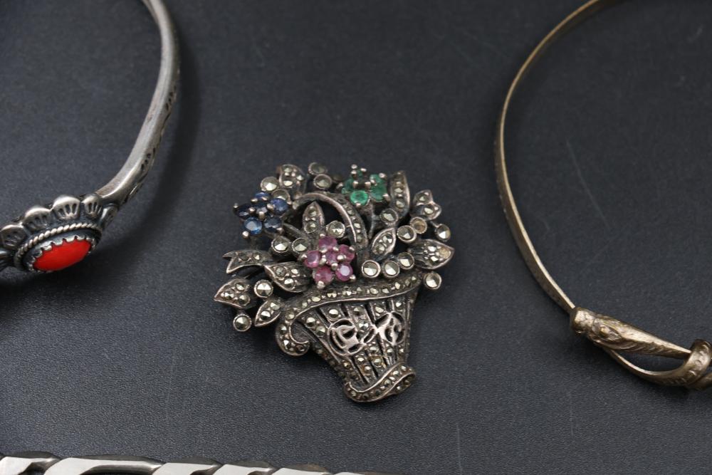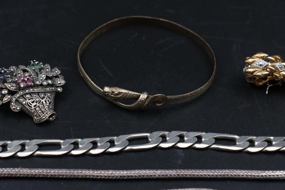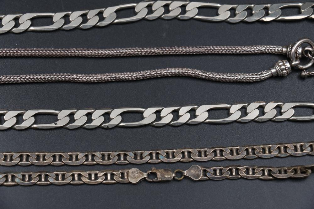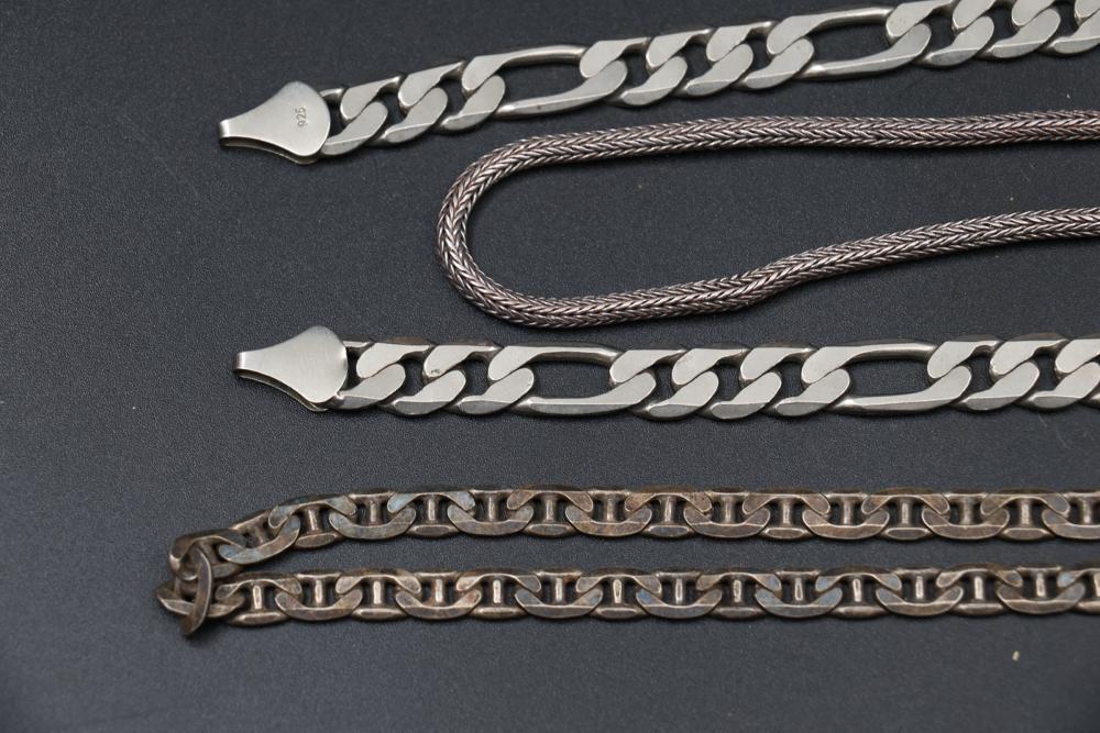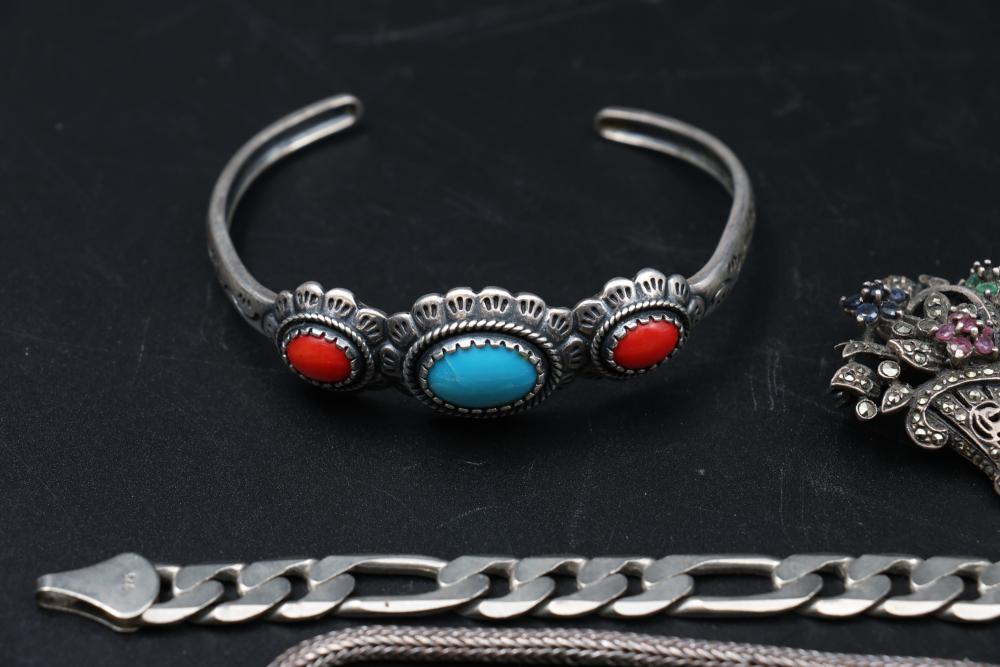 Sterling silver jewelry incl necklaces, pendants, rings, bracelets, earrings, total weight being 212 grams.