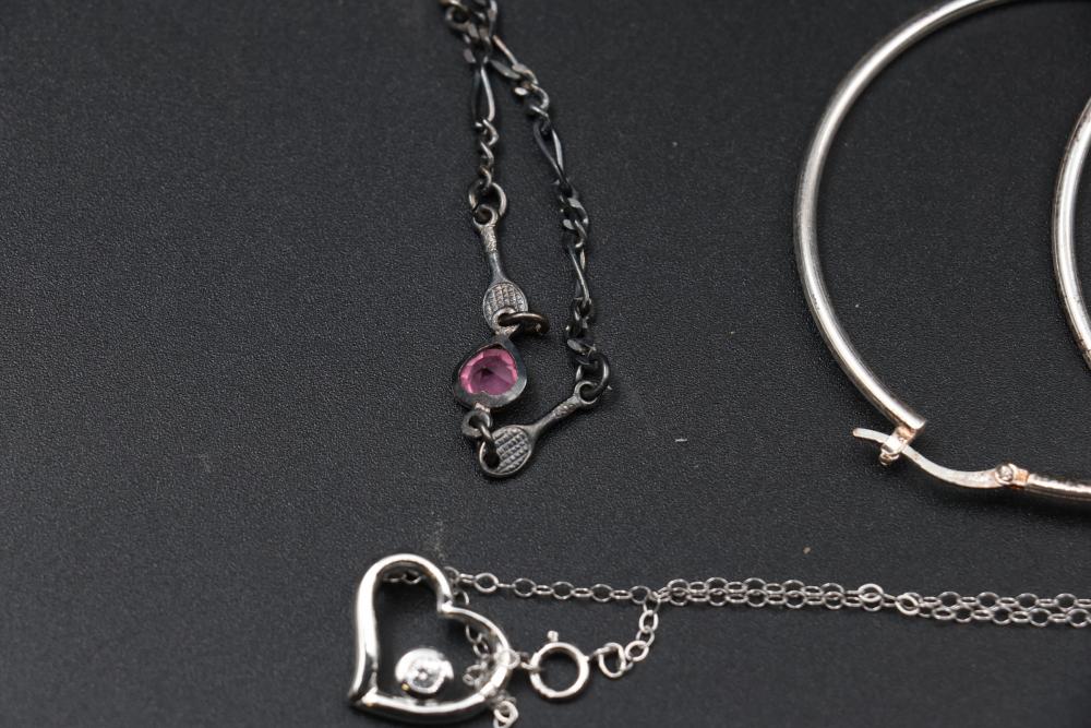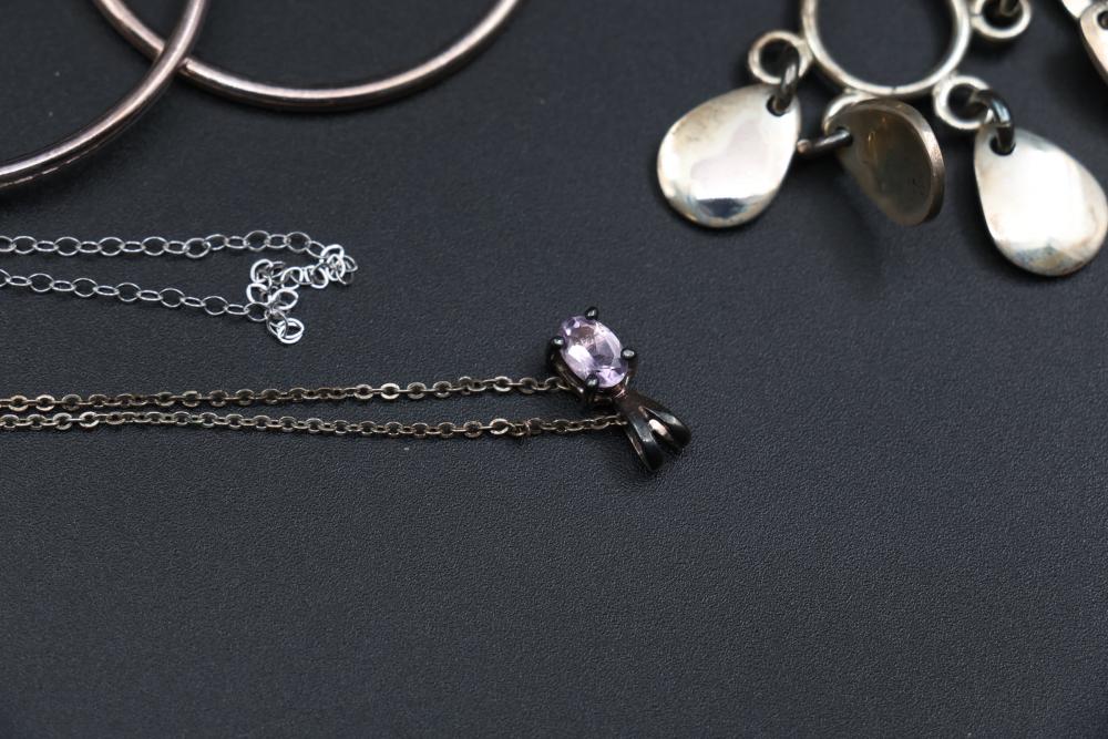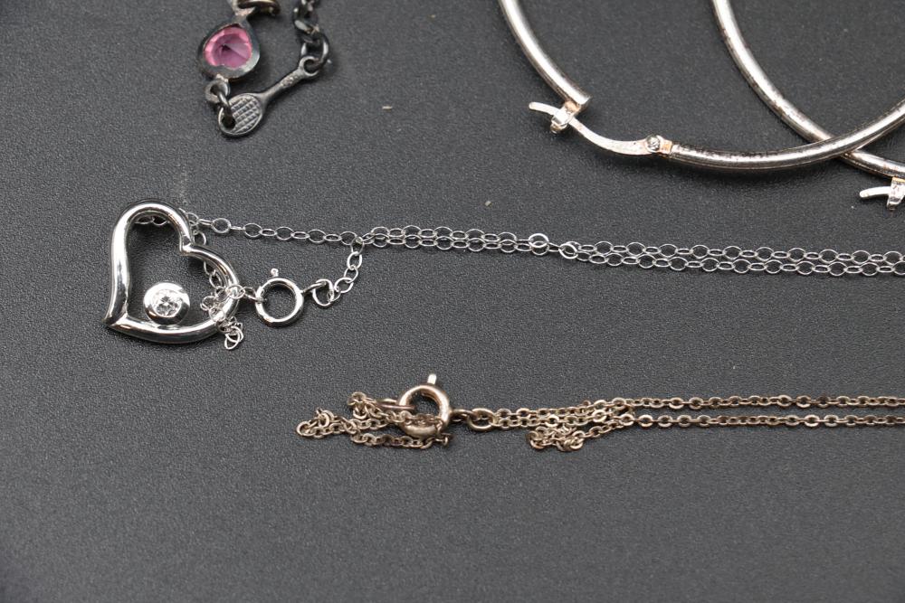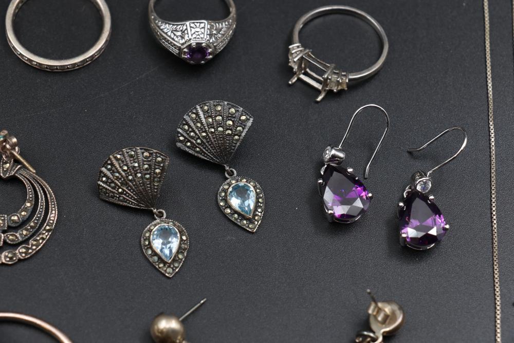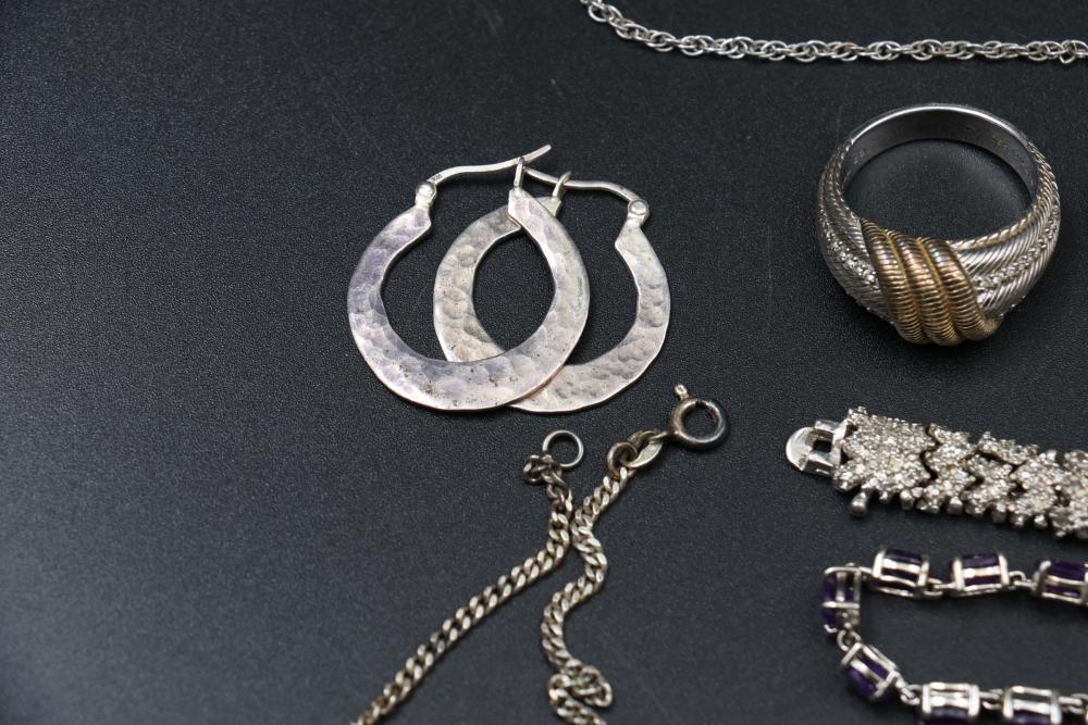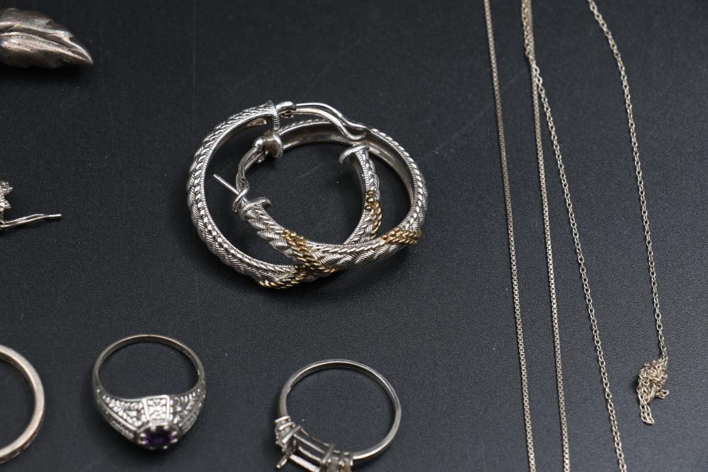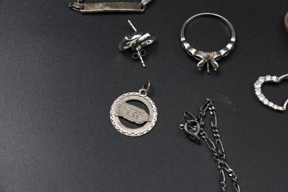 Sterling silver jewelry incl necklaces, pendants, rings, bracelets, earrings, total weight being 195 grams.