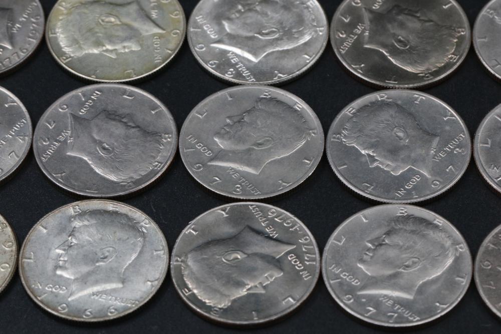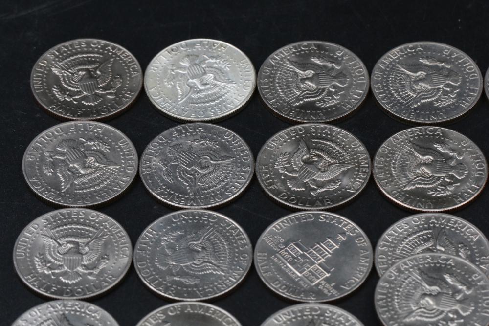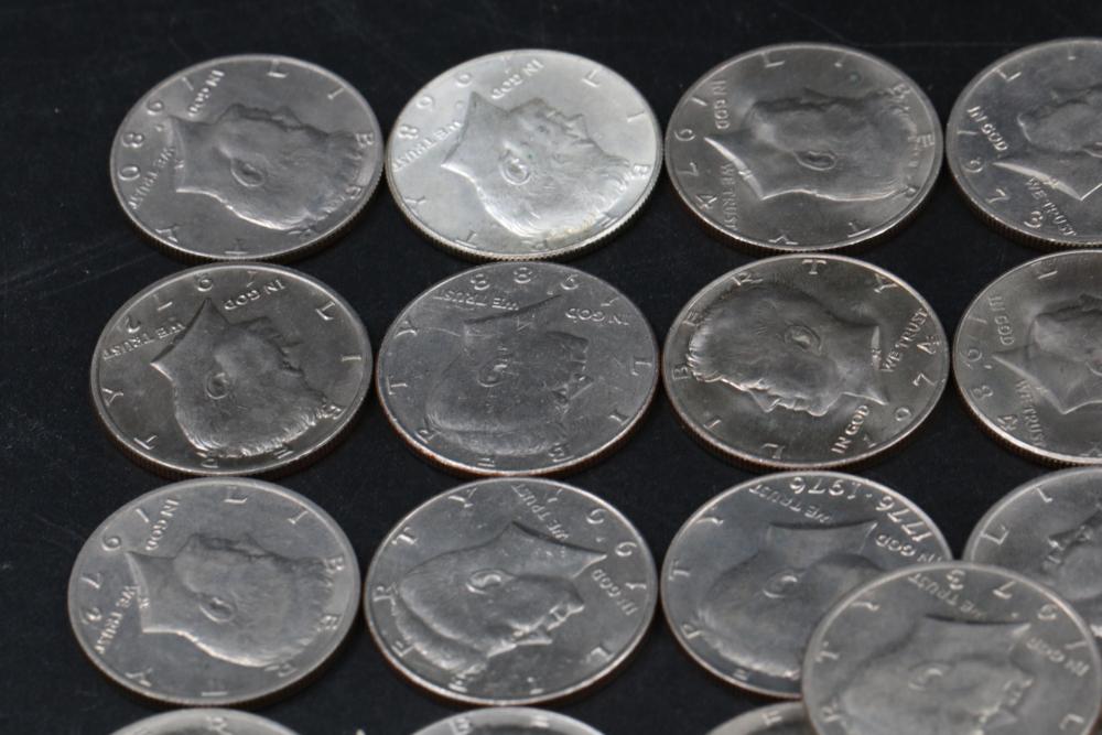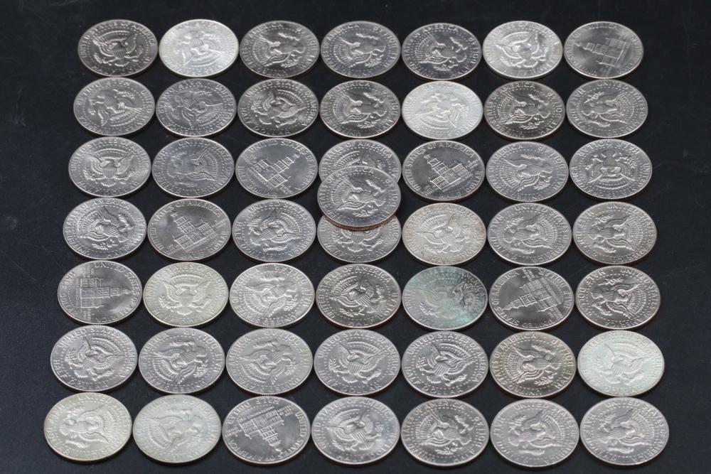 50 half dollar coins, dates incl 1966, 1967, 1968, 1969, 1971, 1972, 1973, 1974, 1977, 1980, 1981, 1984, 1991.