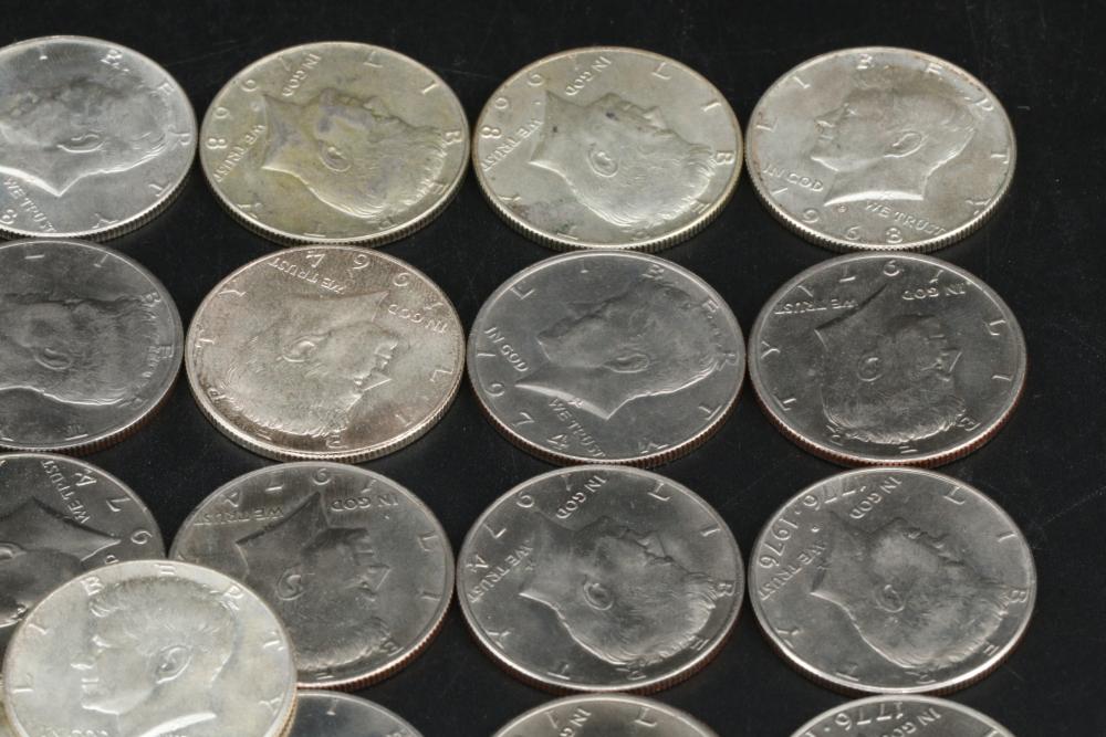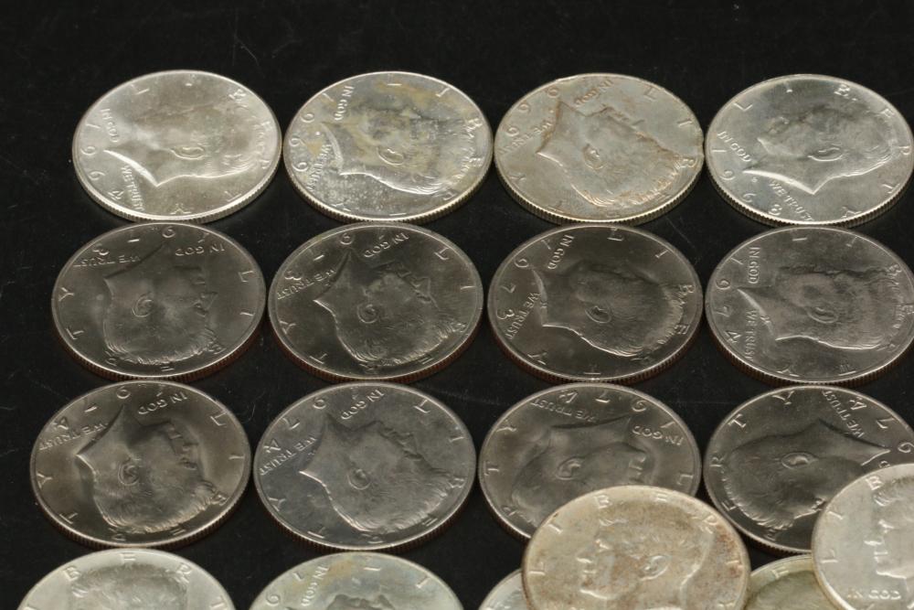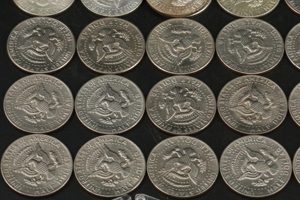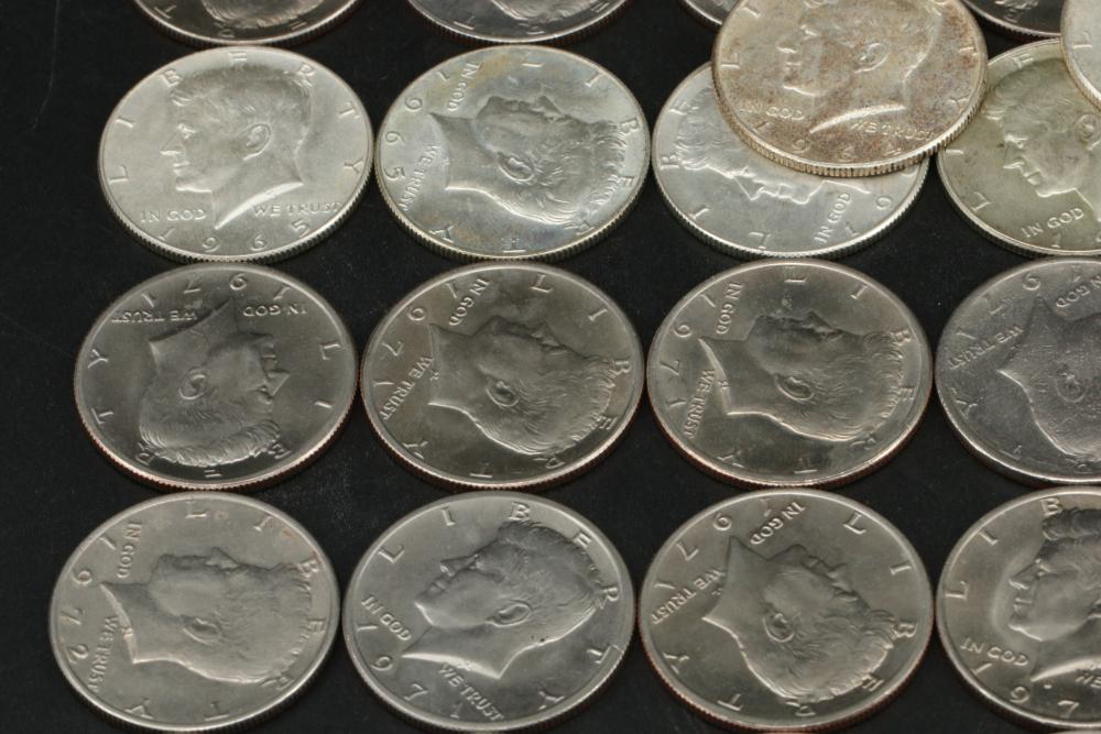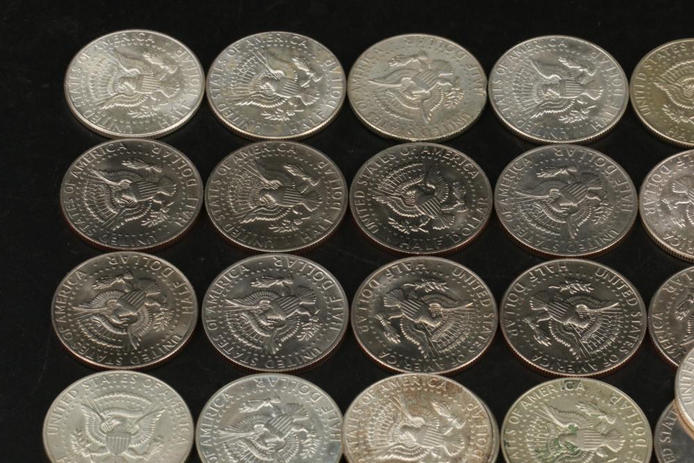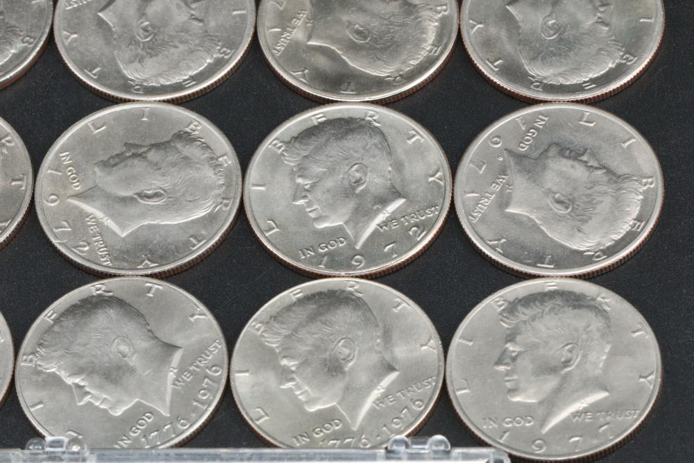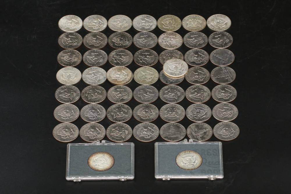 53 half dollar coins dates incl (6) 1964, 1965, 1967, 1968, 1969, 1971, 1972, 1973, 1974, 1977, also incl 5 bicentennial half dollars.