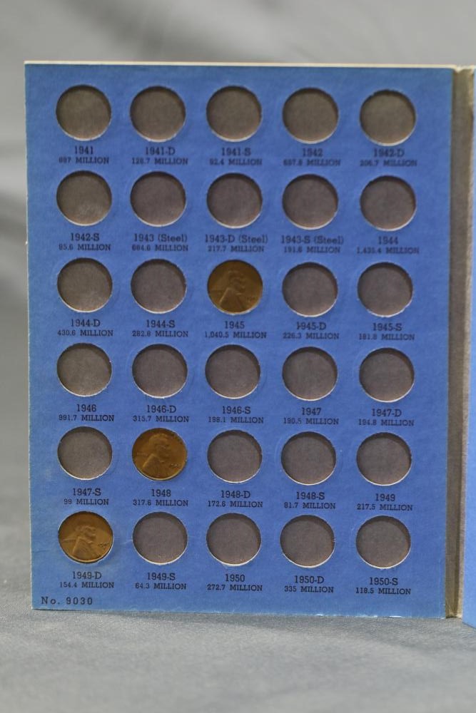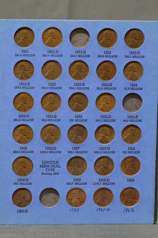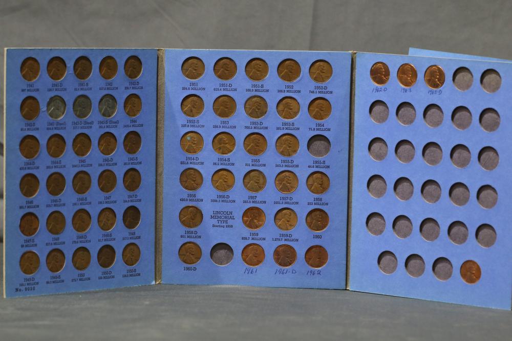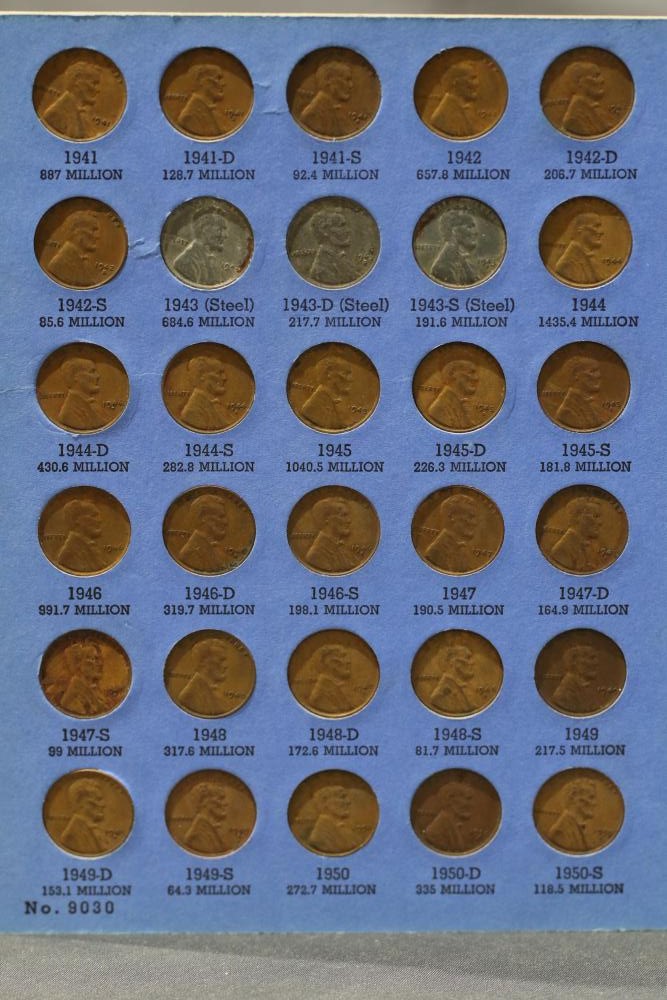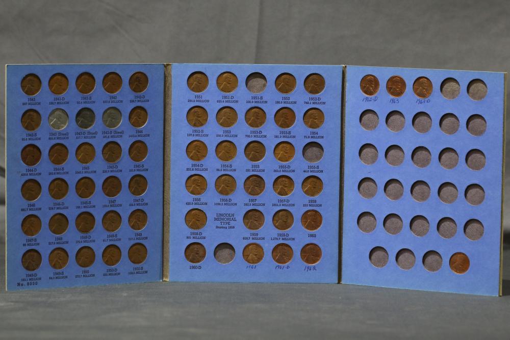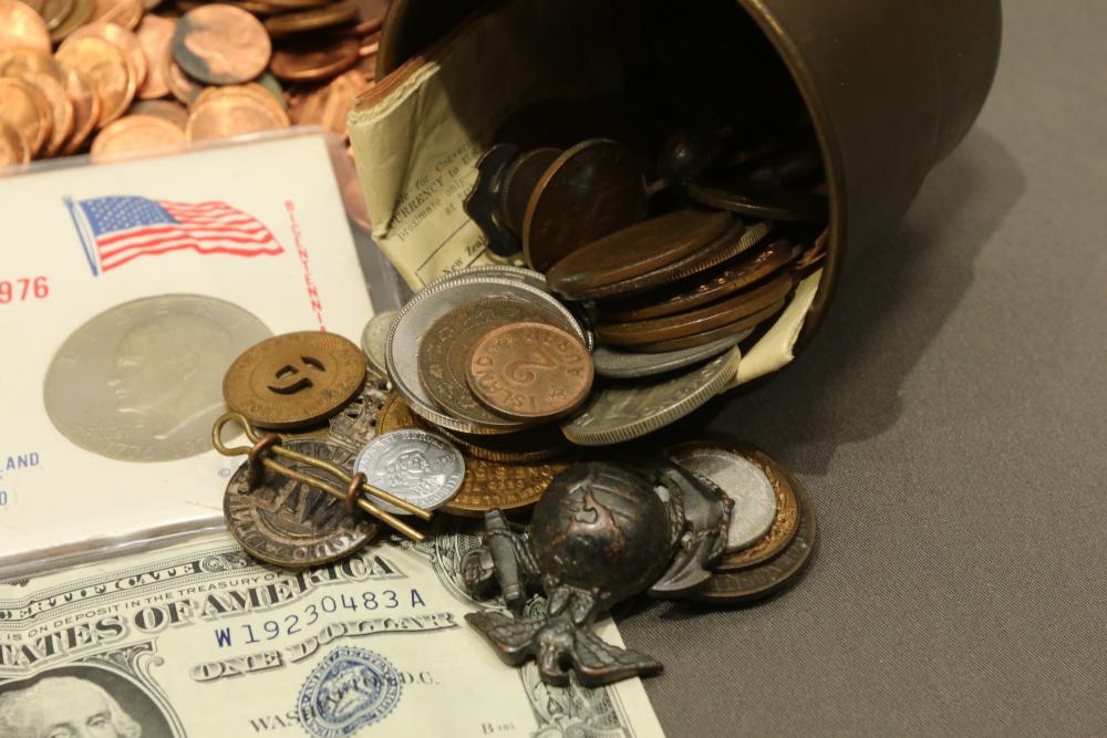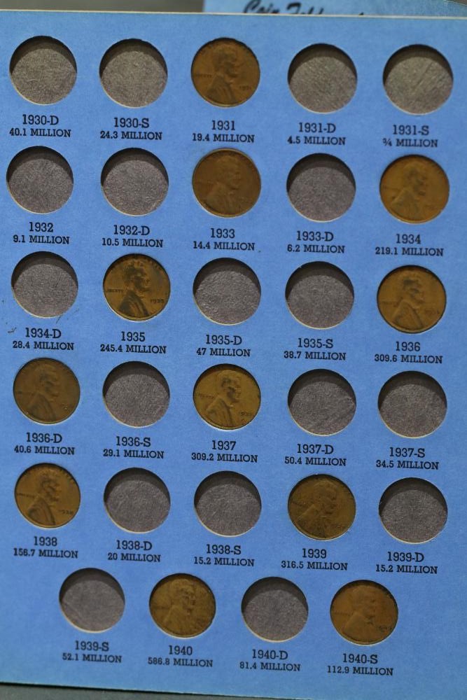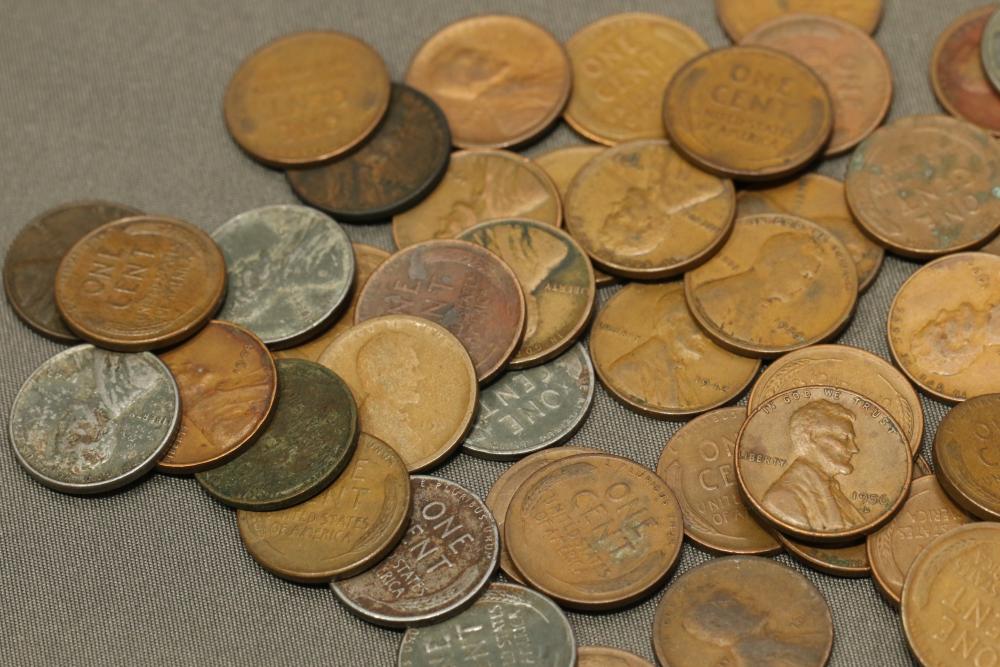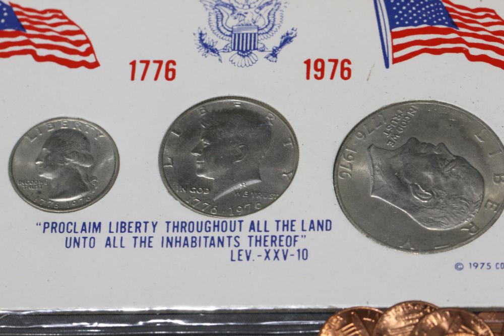 Large grouping of pennies some dates incl 1910, 1912, 1917, 1918, 1920, 1924, 1925, 1927, 1929, 1939, 1940, 1942, 1943, 1944, 1946, 1949, 1950, 1951, 1952, 1953, 1954, 1955, 1956, 1957, 1958, 1959, 1960, 1961, 1962, 1963, 1964, 1965, 1966, 1967, 1968, 1969, 1970, 1971, 1972, 1973, 1974, 1975, 1976, 1977, 1978, 1979, 1980, 1981, 1982, 1983, 1984, 1985, 1986, 1987, 1988, 1989, etc, also incl 20 rolls of pennies, four silver certificates incl one from Hawaii series 1935A, two bicentennial sets including quarter half dollar and silver dollar, The official Bicentennial Day Commemorative Medal sterling silver proof coin, foreign coins and tokens.