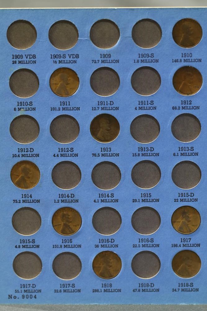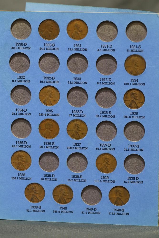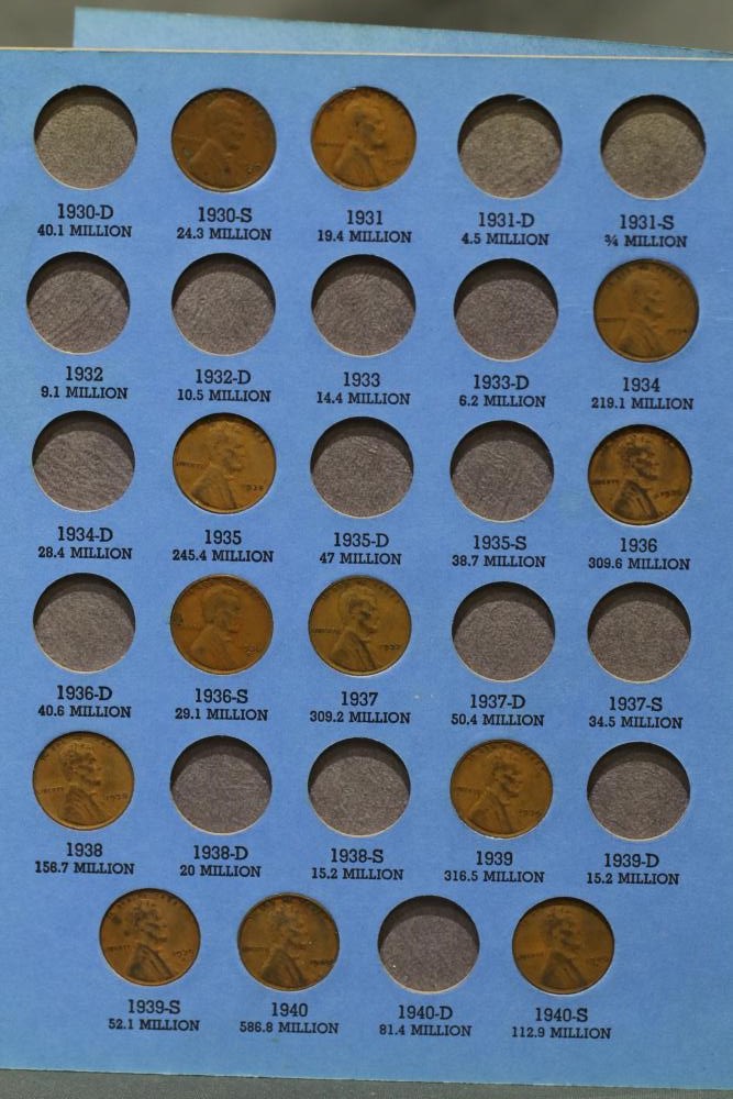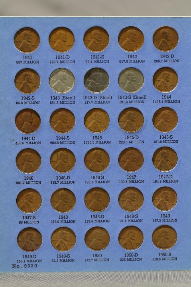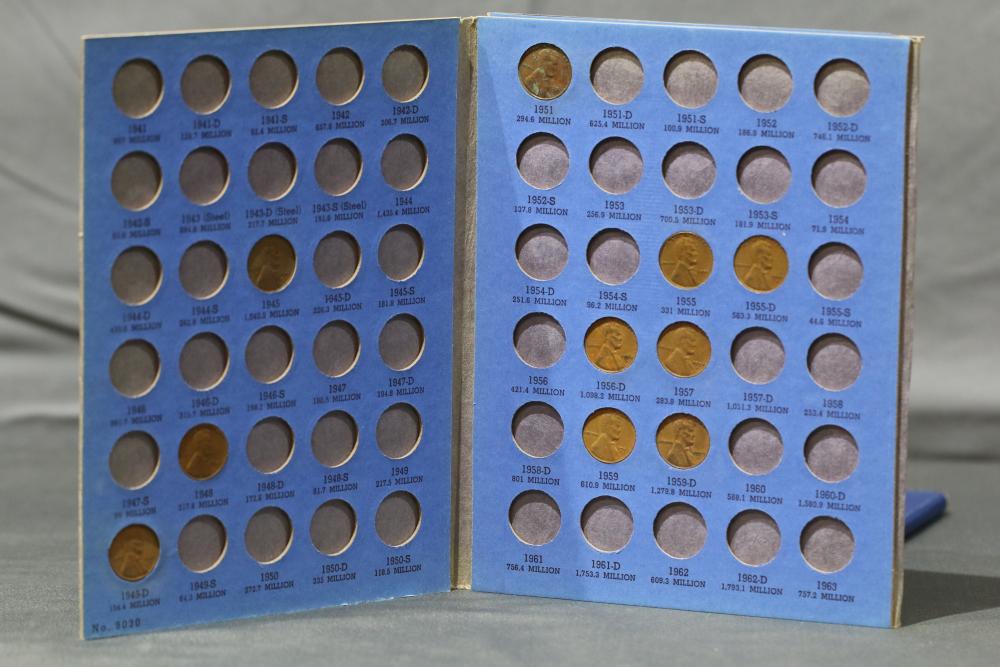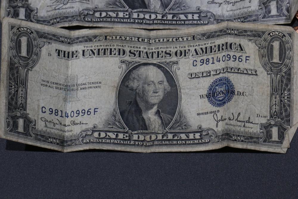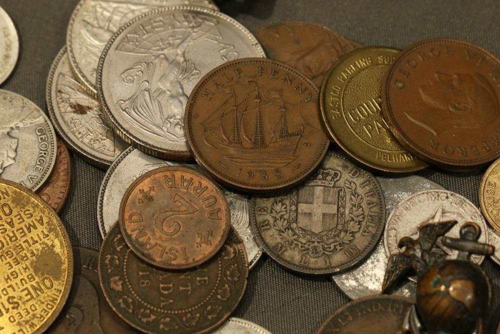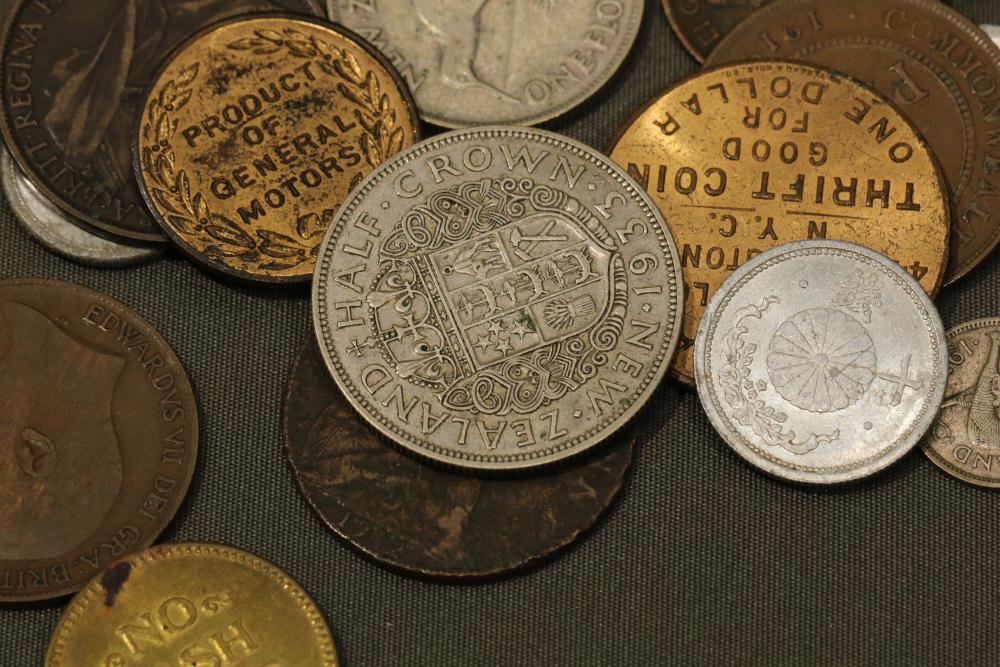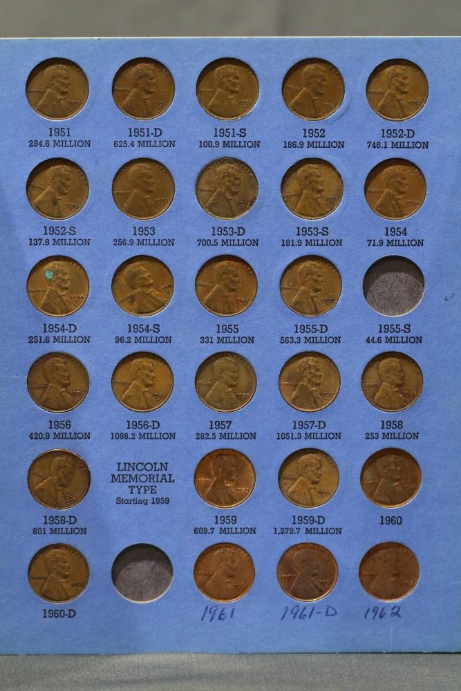 Large grouping of pennies some dates incl 1910, 1912, 1917, 1918, 1920, 1924, 1925, 1927, 1929, 1939, 1940, 1942, 1943, 1944, 1946, 1949, 1950, 1951, 1952, 1953, 1954, 1955, 1956, 1957, 1958, 1959, 1960, 1961, 1962, 1963, 1964, 1965, 1966, 1967, 1968, 1969, 1970, 1971, 1972, 1973, 1974, 1975, 1976, 1977, 1978, 1979, 1980, 1981, 1982, 1983, 1984, 1985, 1986, 1987, 1988, 1989, etc, also incl 20 rolls of pennies, four silver certificates incl one from Hawaii series 1935A, two bicentennial sets including quarter half dollar and silver dollar, The official Bicentennial Day Commemorative Medal sterling silver proof coin, foreign coins and tokens.