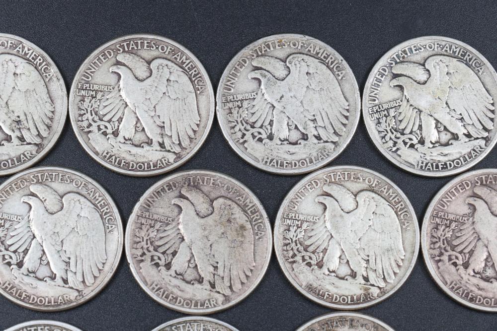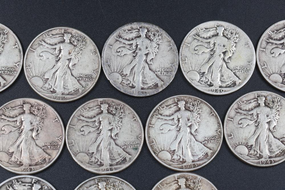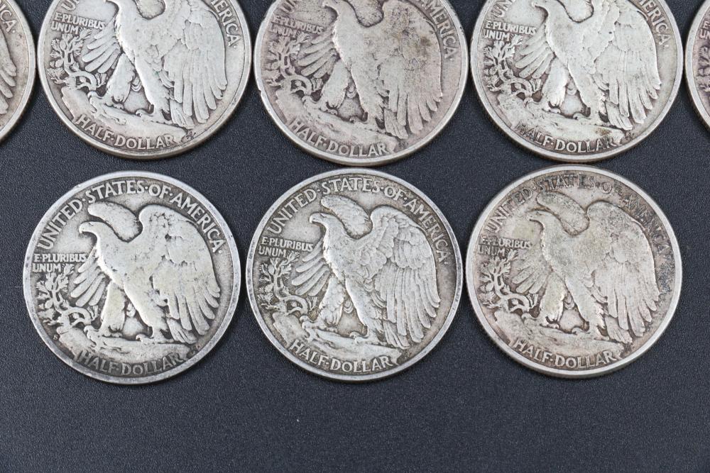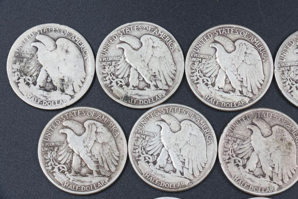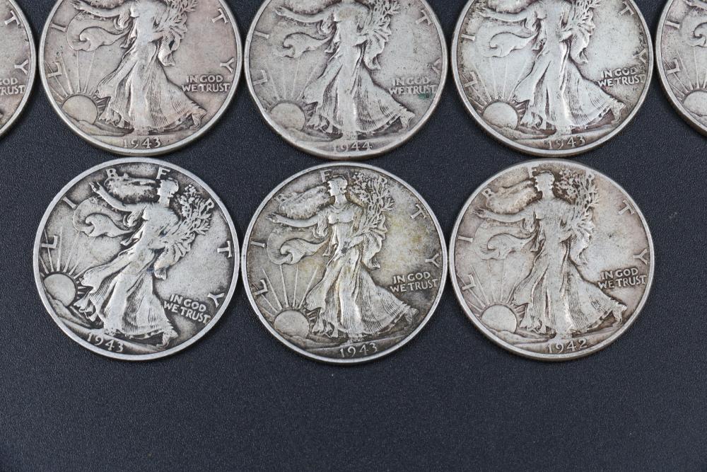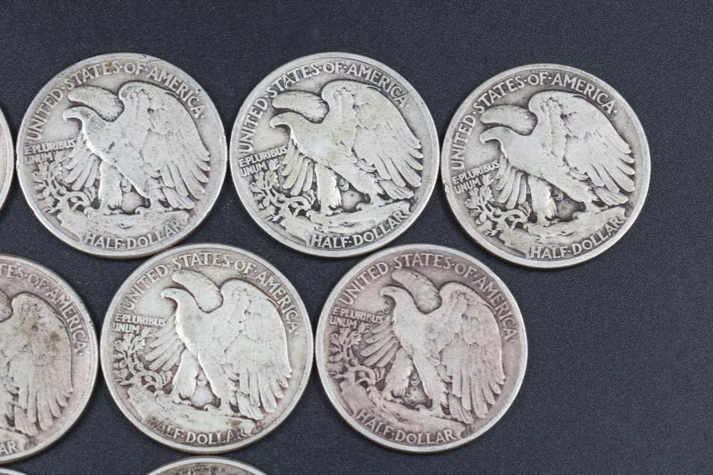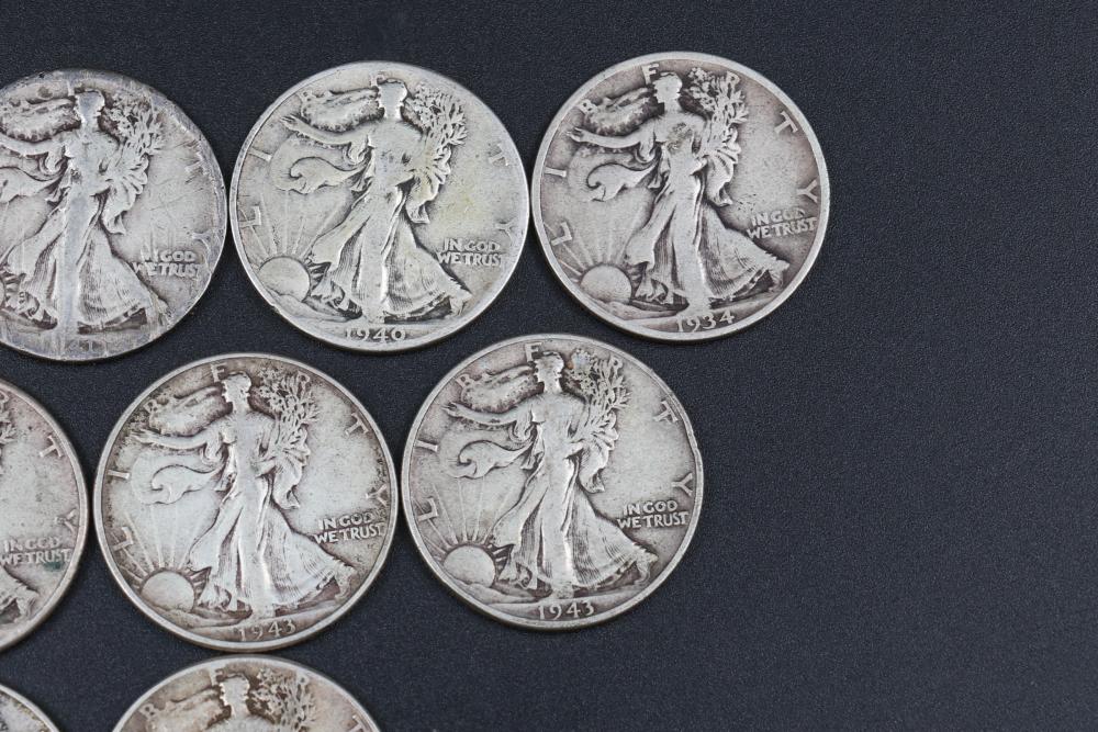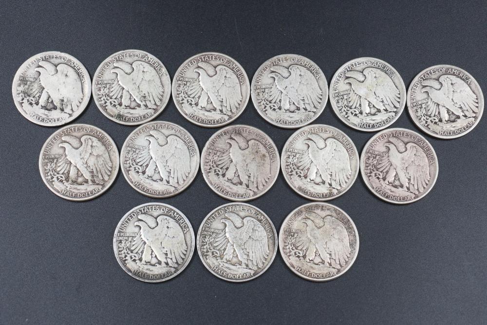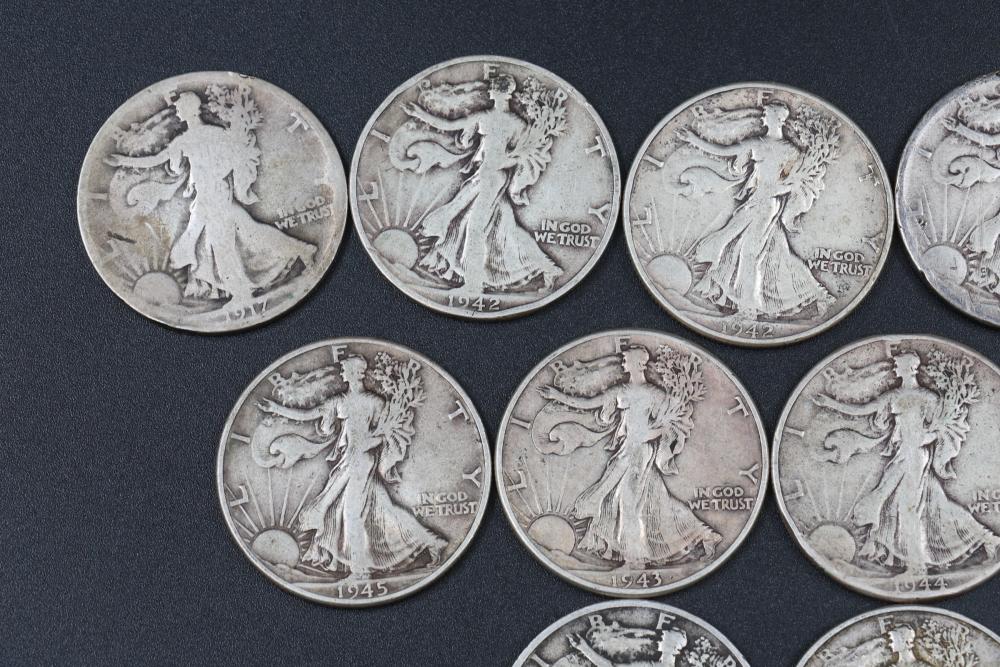 14 Walking liberty half dollars incl 1917, 1934, 1940, 1941, 1942, 1943, 1944, 1945.