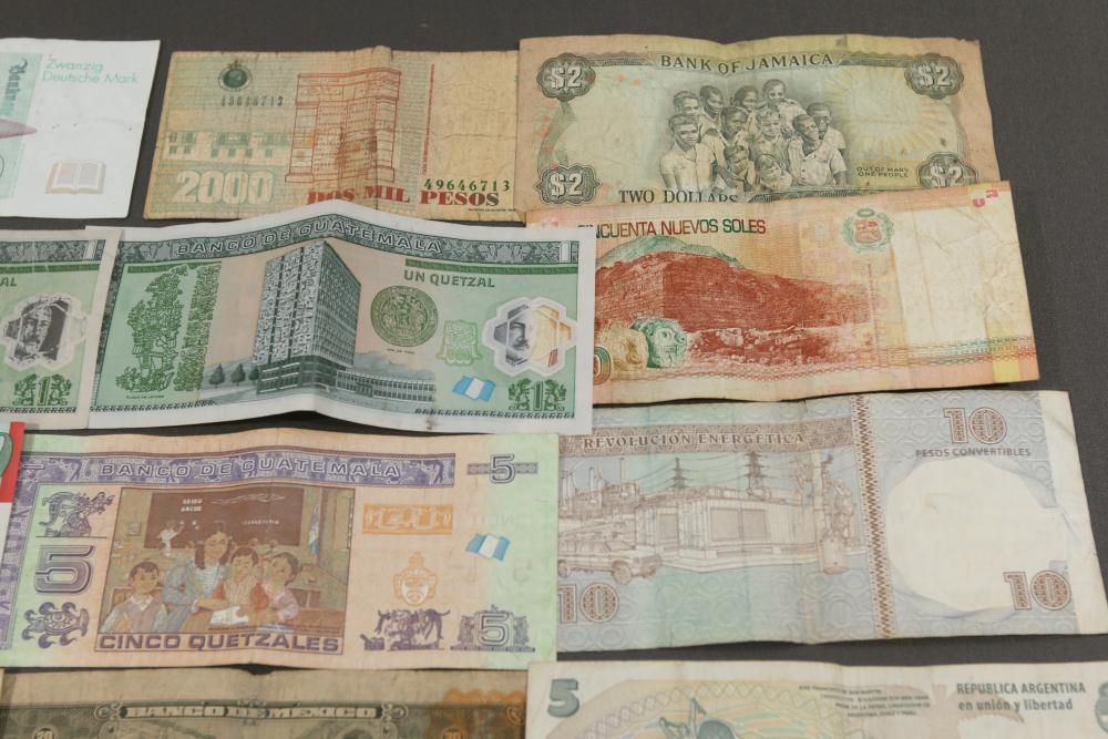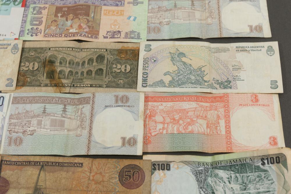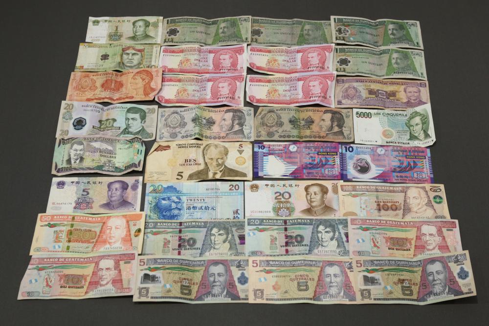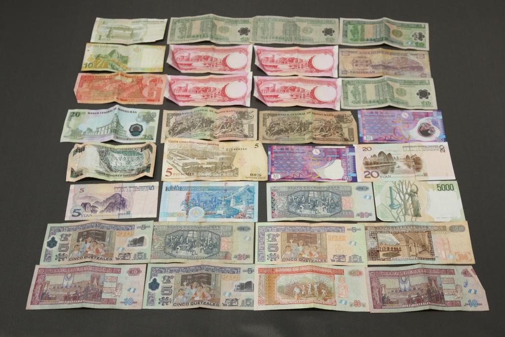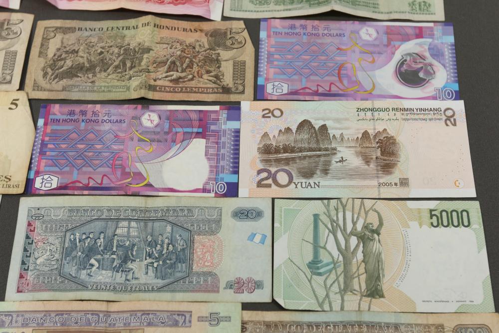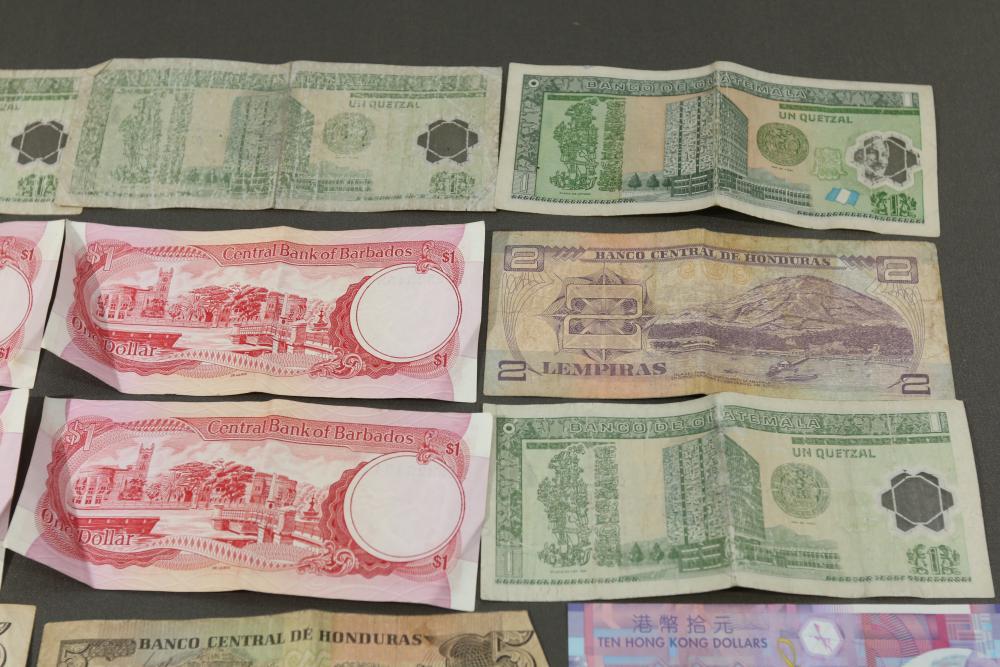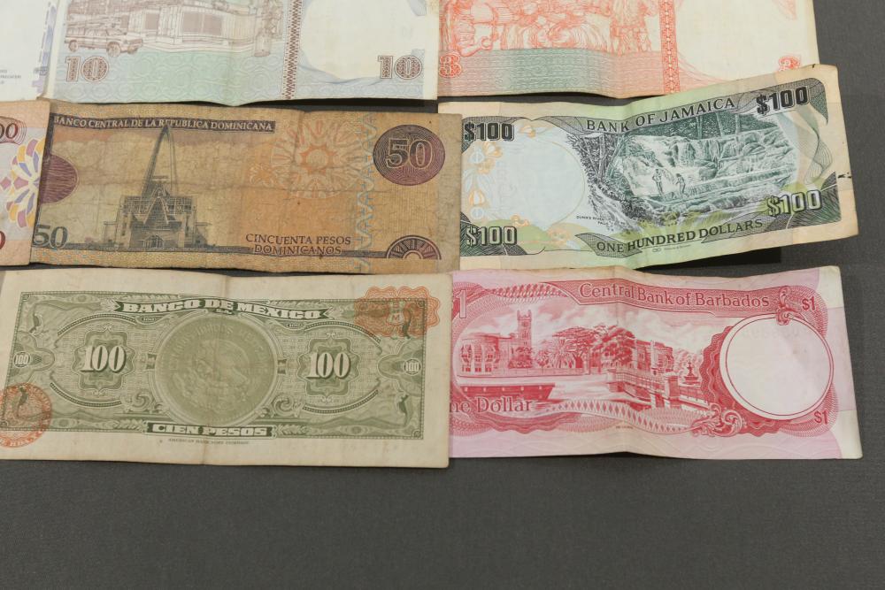 Foreign paper currency varying in country and denominations, some countries incl Guatemala, Honduras, Argentina, Mexico, Columbia, Israel, Barbados, Italy, Dominican Republic, Jamaica, Guyana, India, France, Peru, Cuba, Turkey, etc.