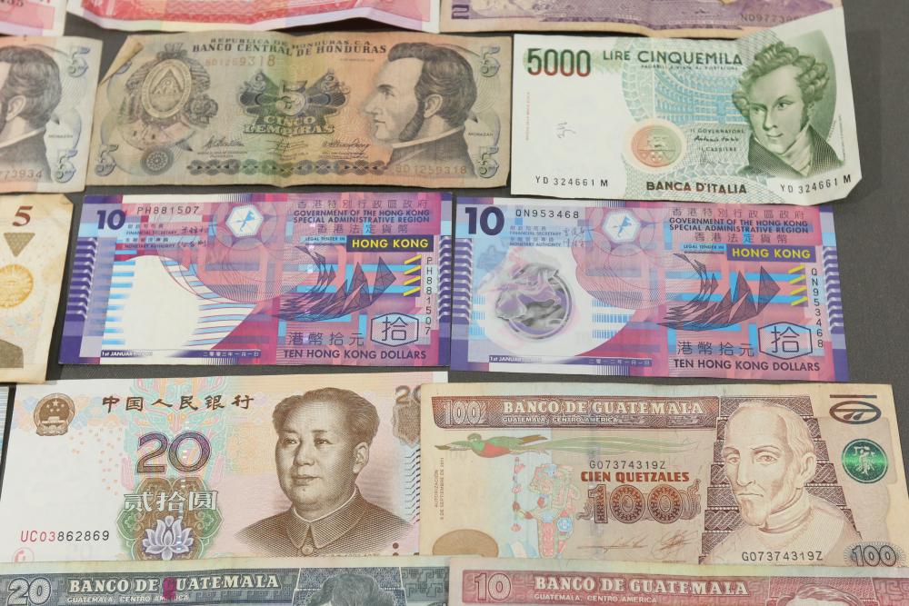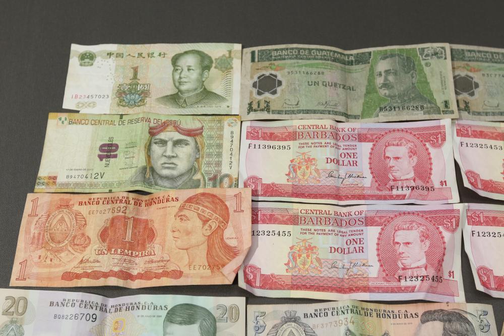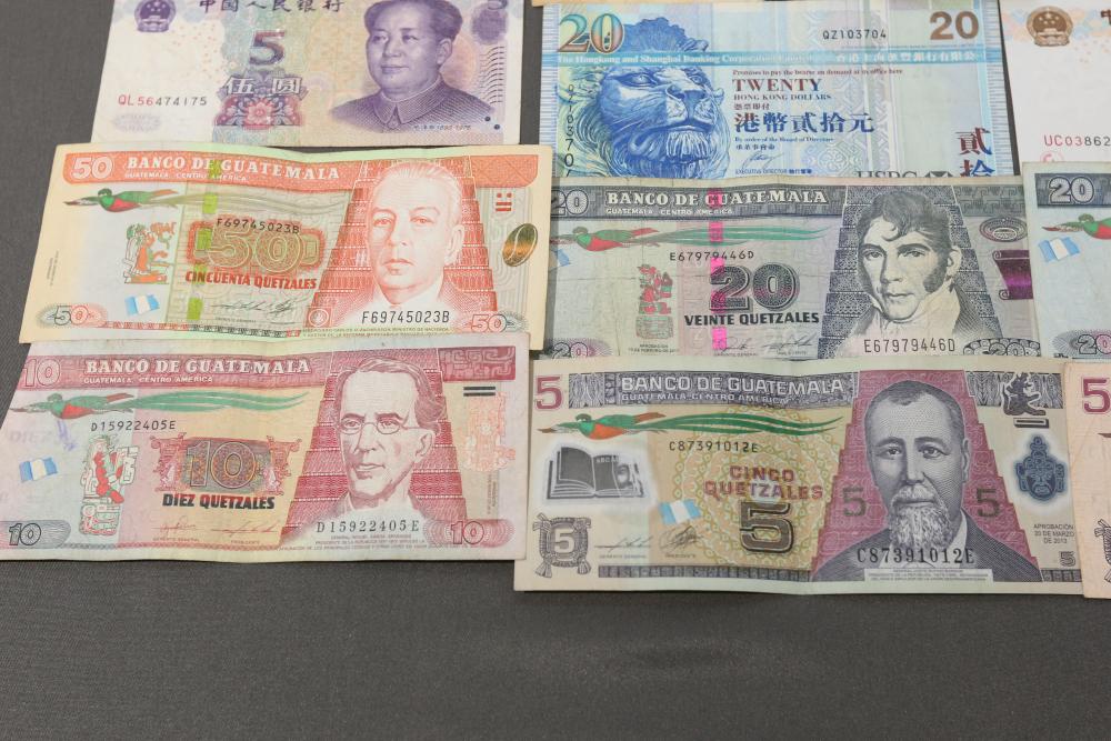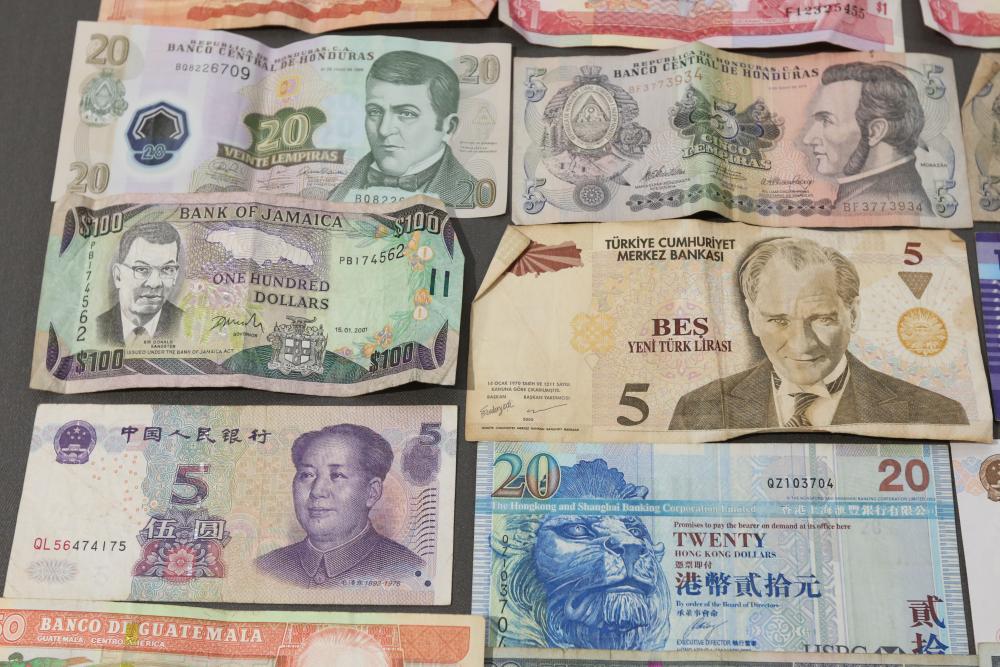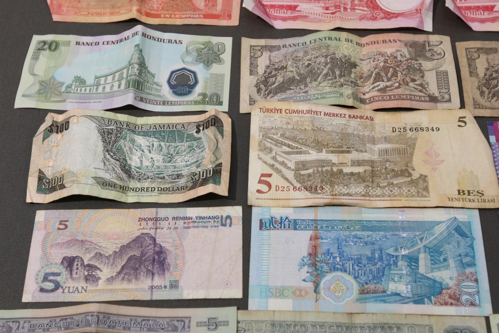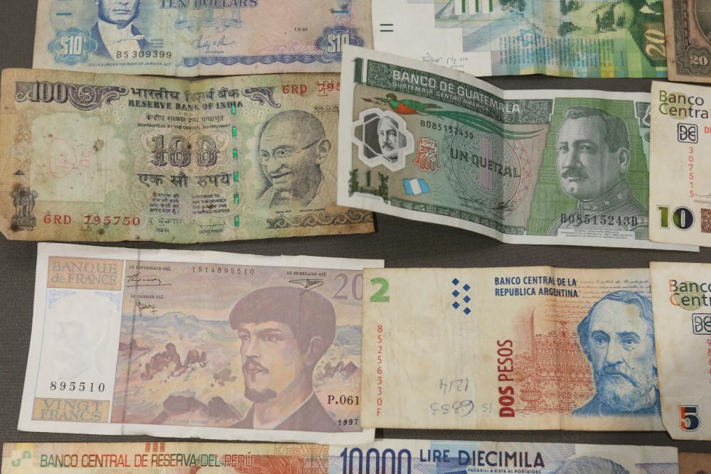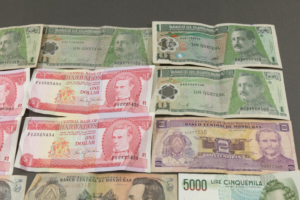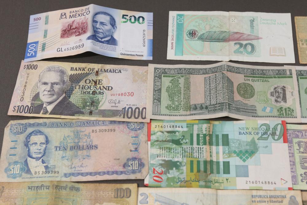 Foreign paper currency varying in country and denominations, some countries incl Guatemala, Honduras, Argentina, Mexico, Columbia, Israel, Barbados, Italy, Dominican Republic, Jamaica, Guyana, India, France, Peru, Cuba, Turkey, etc.