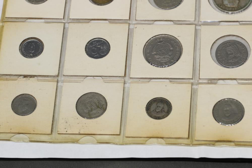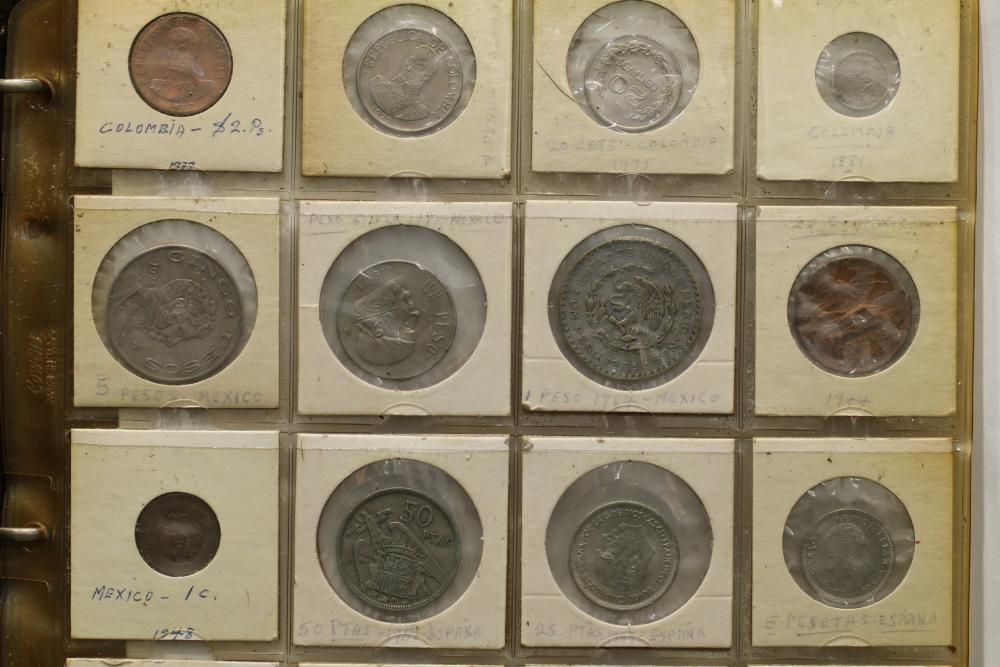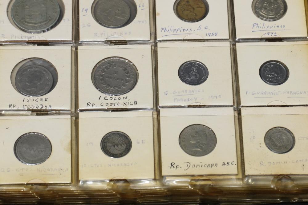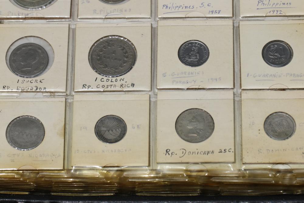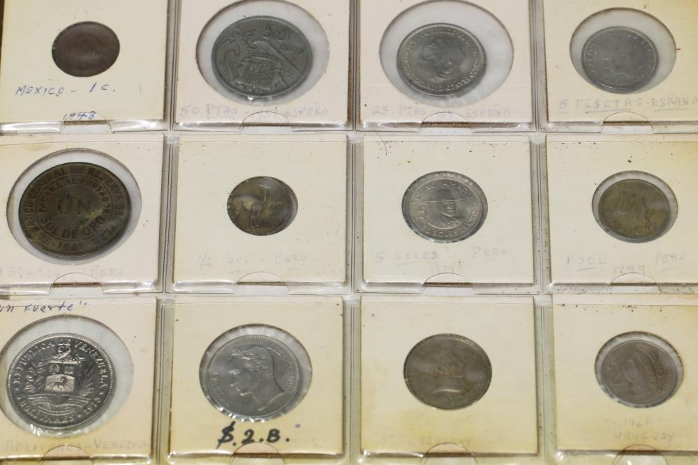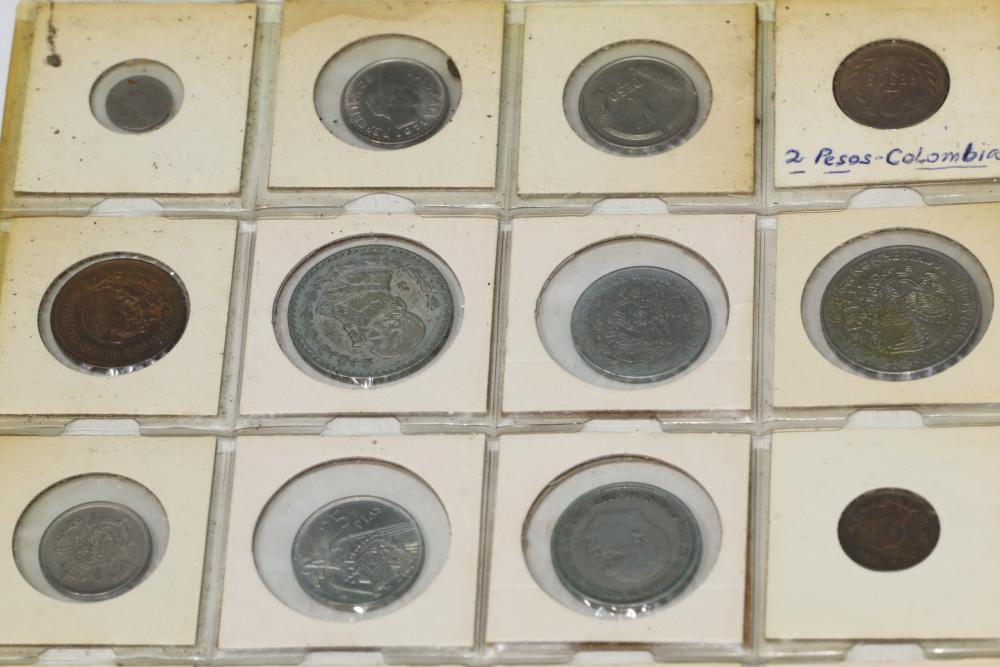 foreign coins varying in country and denomination, some countries incl Colombia, Mexico, Spain, Peru, Venezuela, Bolivia, Uruguay, Brasil, Argentina, Philippines, Costa Rica, Dominican Republic, Nicaragua, Switzerland, France, Saudi Arabia, Israel, Jordan, Kenya, Morocco, Chile, Russia, Denmark, India, Czechoslovakia, Greece, Japan, Australia, etc.