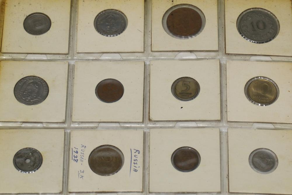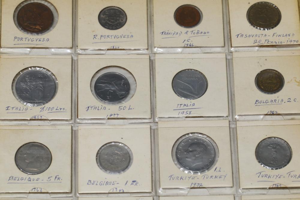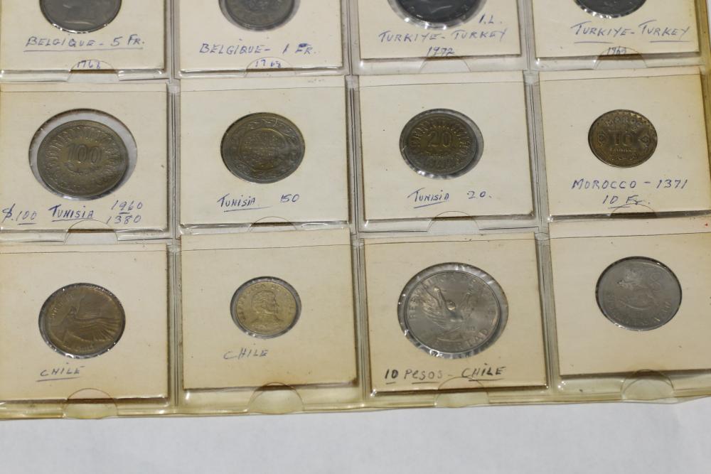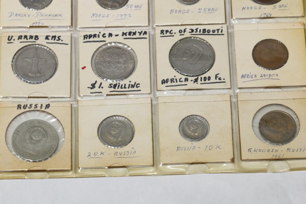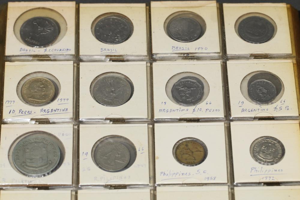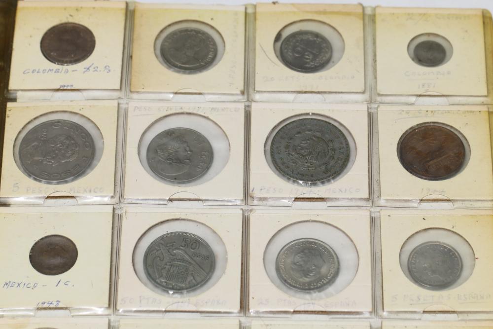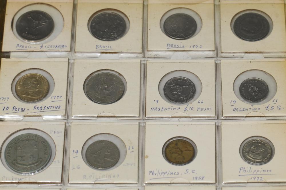 foreign coins varying in country and denomination, some countries incl Colombia, Mexico, Spain, Peru, Venezuela, Bolivia, Uruguay, Brasil, Argentina, Philippines, Costa Rica, Dominican Republic, Nicaragua, Switzerland, France, Saudi Arabia, Israel, Jordan, Kenya, Morocco, Chile, Russia, Denmark, India, Czechoslovakia, Greece, Japan, Australia, etc.