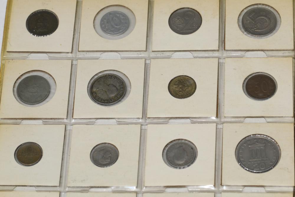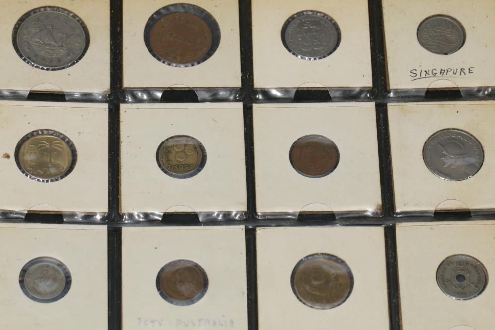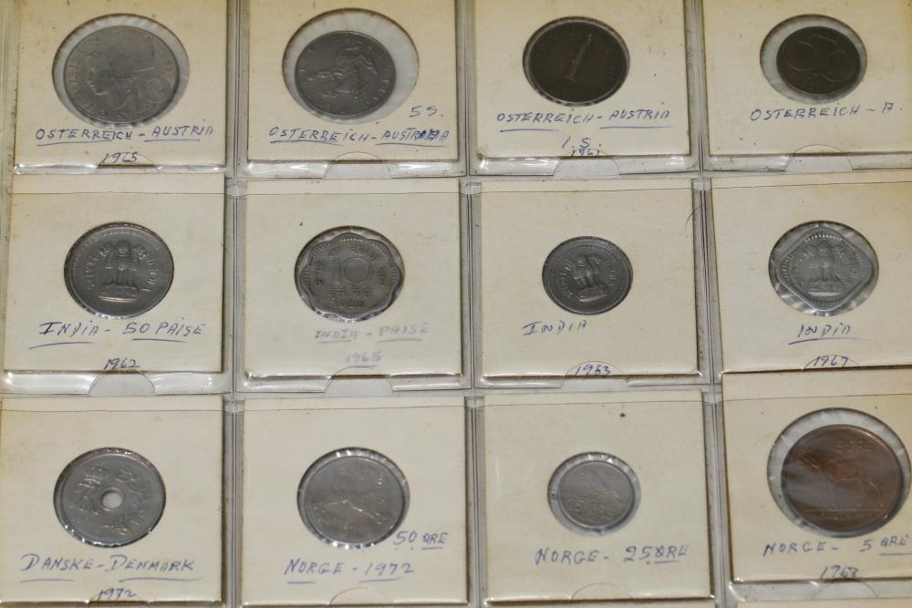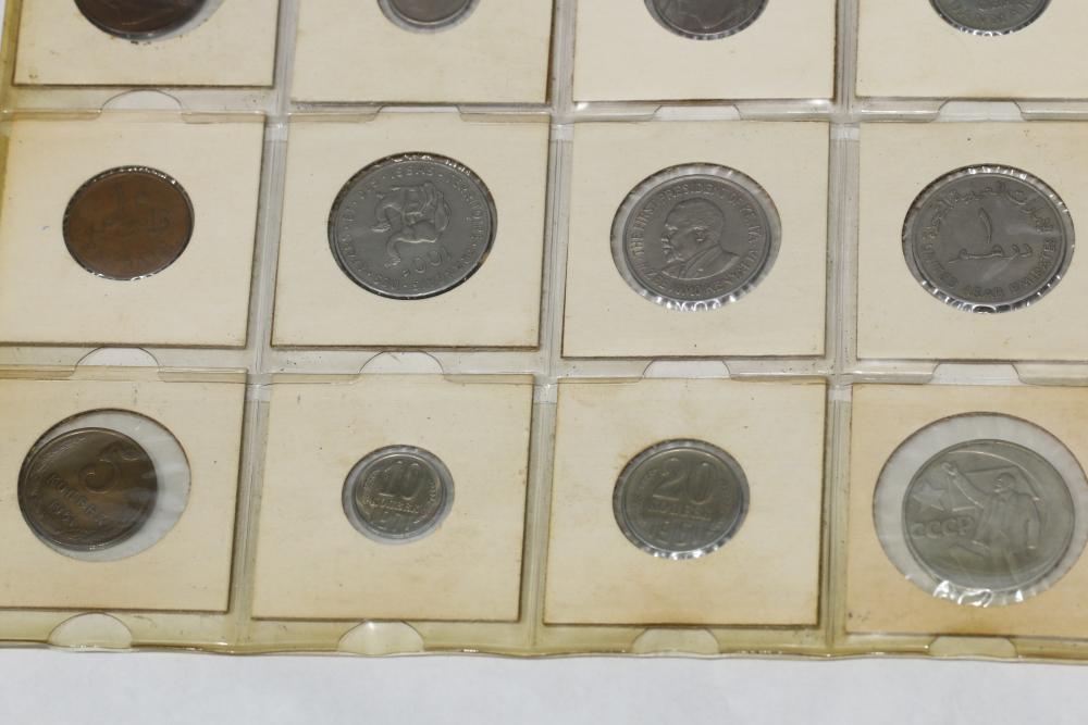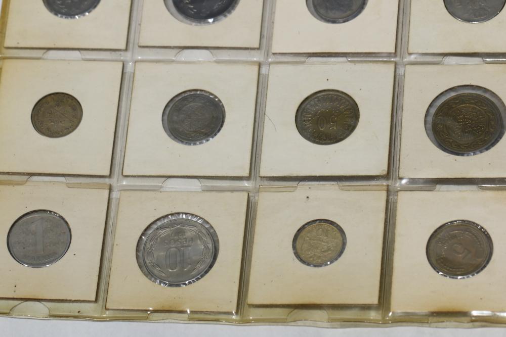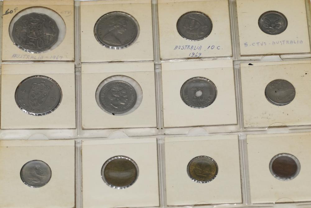 foreign coins varying in country and denomination, some countries incl Colombia, Mexico, Spain, Peru, Venezuela, Bolivia, Uruguay, Brasil, Argentina, Philippines, Costa Rica, Dominican Republic, Nicaragua, Switzerland, France, Saudi Arabia, Israel, Jordan, Kenya, Morocco, Chile, Russia, Denmark, India, Czechoslovakia, Greece, Japan, Australia, etc.