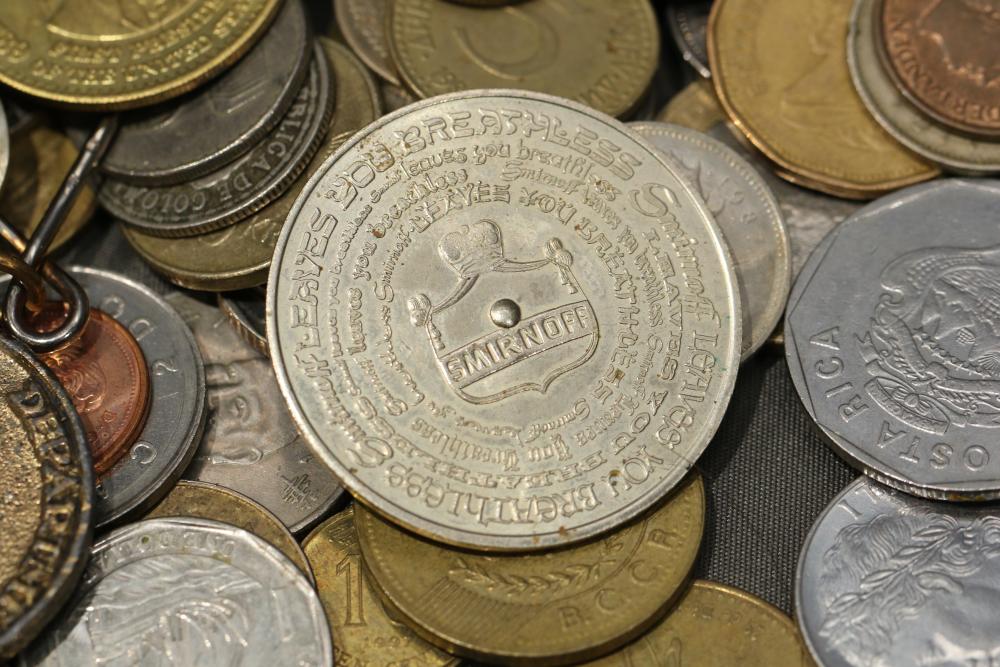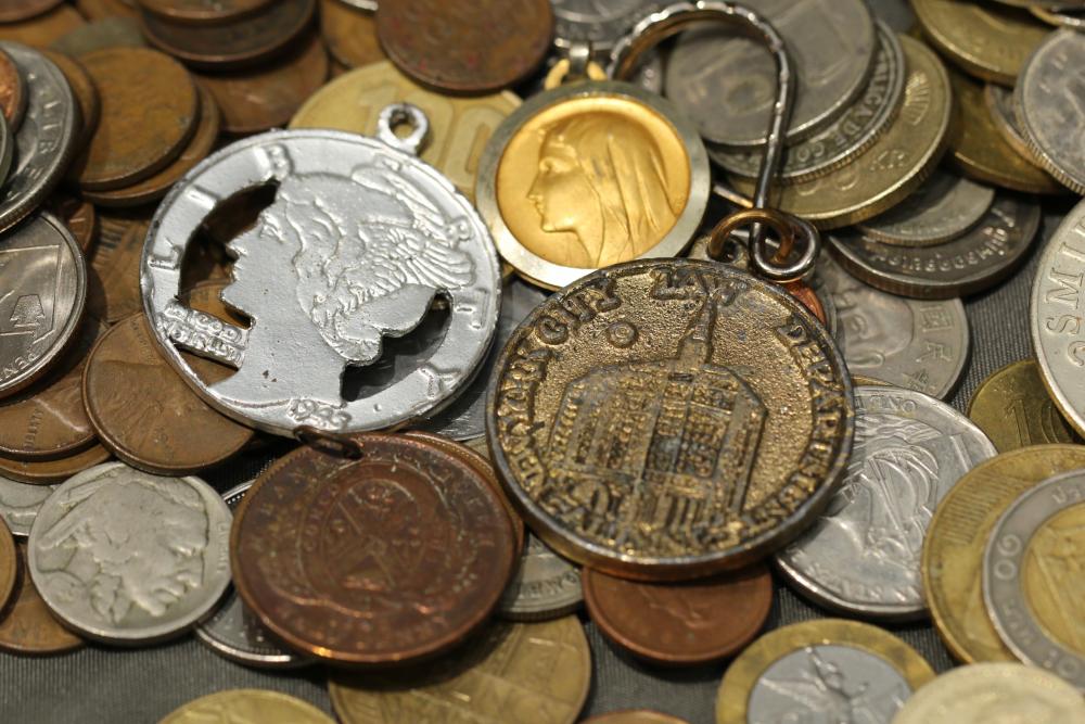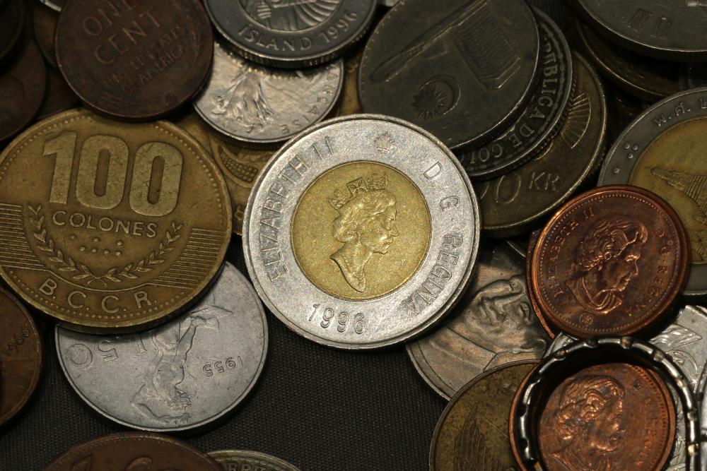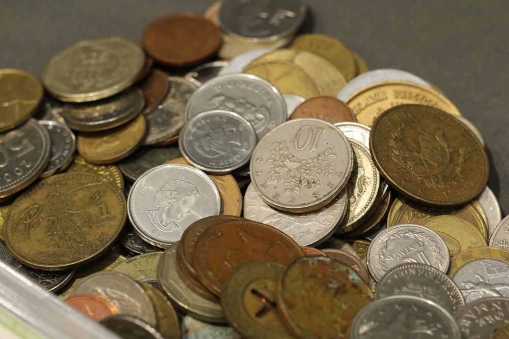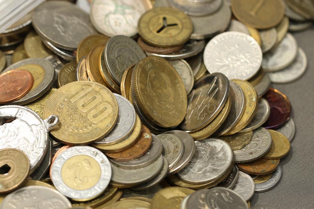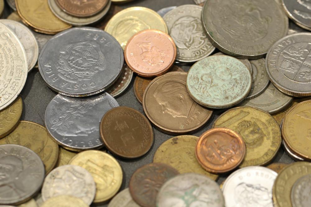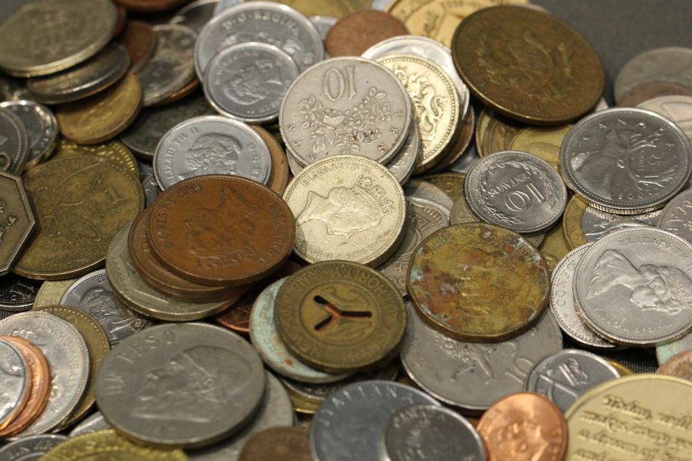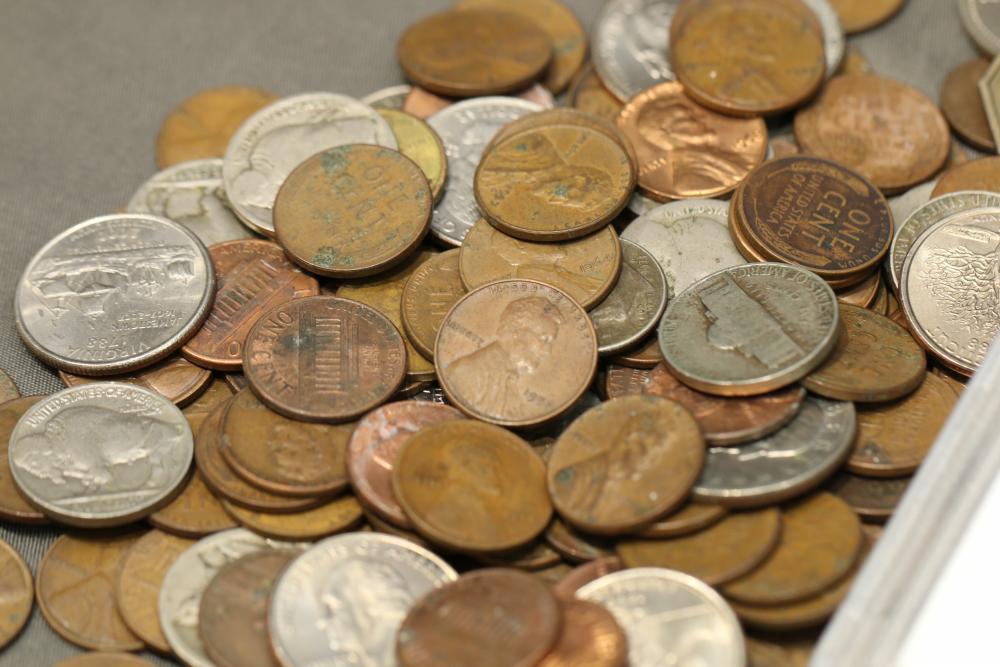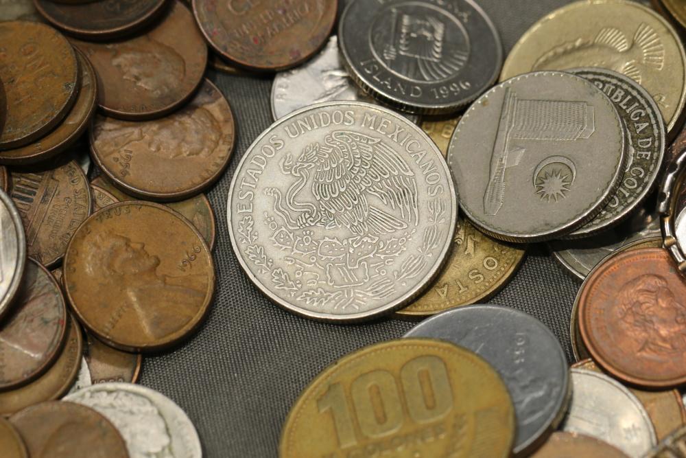 Domestic and foreign coinage incl slabbed "Constantine The Great Era Roman Empire c.330 AD" from International Numismatic Bureau, Domestic currency incl Lincoln pennies, wheat pennies, state quarters, buffalo nickels, foreign currency incl Columbia, Guatemala, France, Mexico, Canada, Hong Kong, Costa Rica, Peru, Denmark, etc, also incl tokens, and commemorative coins.