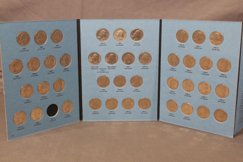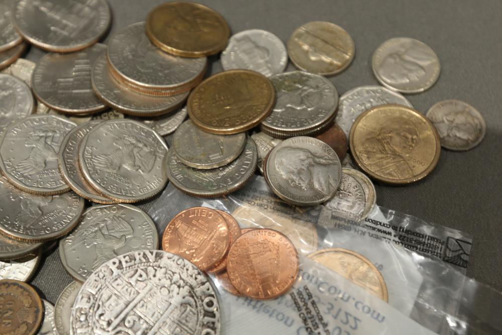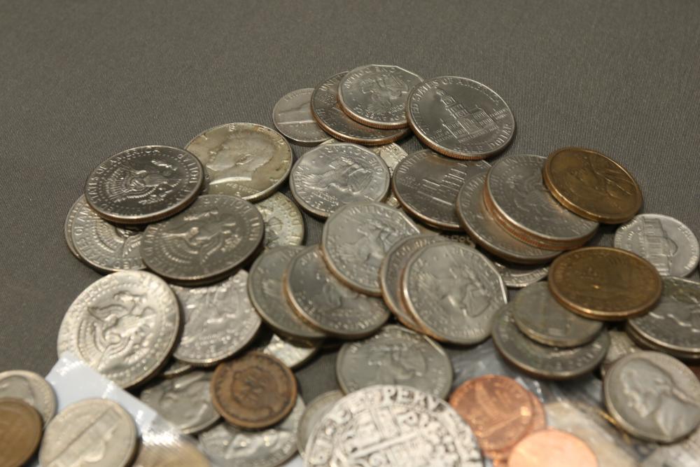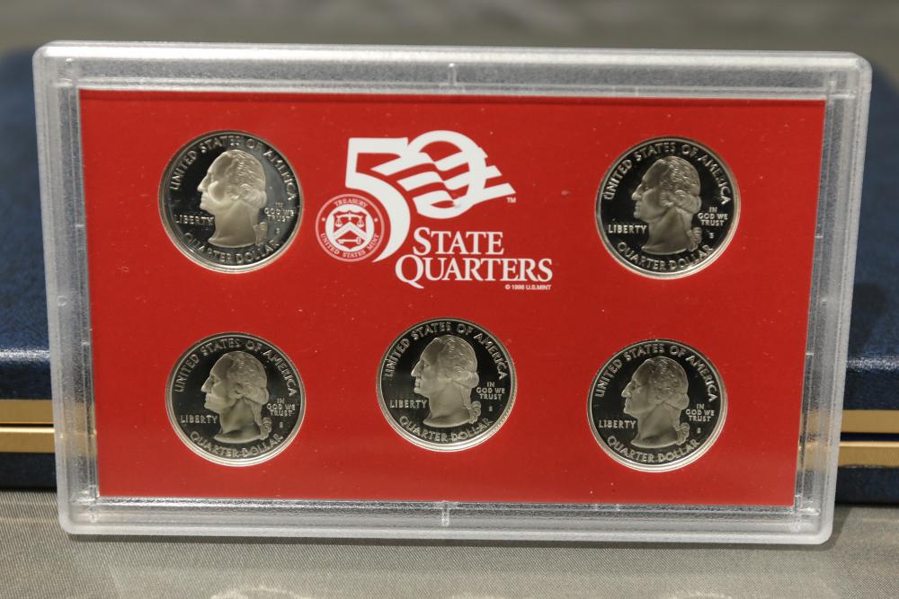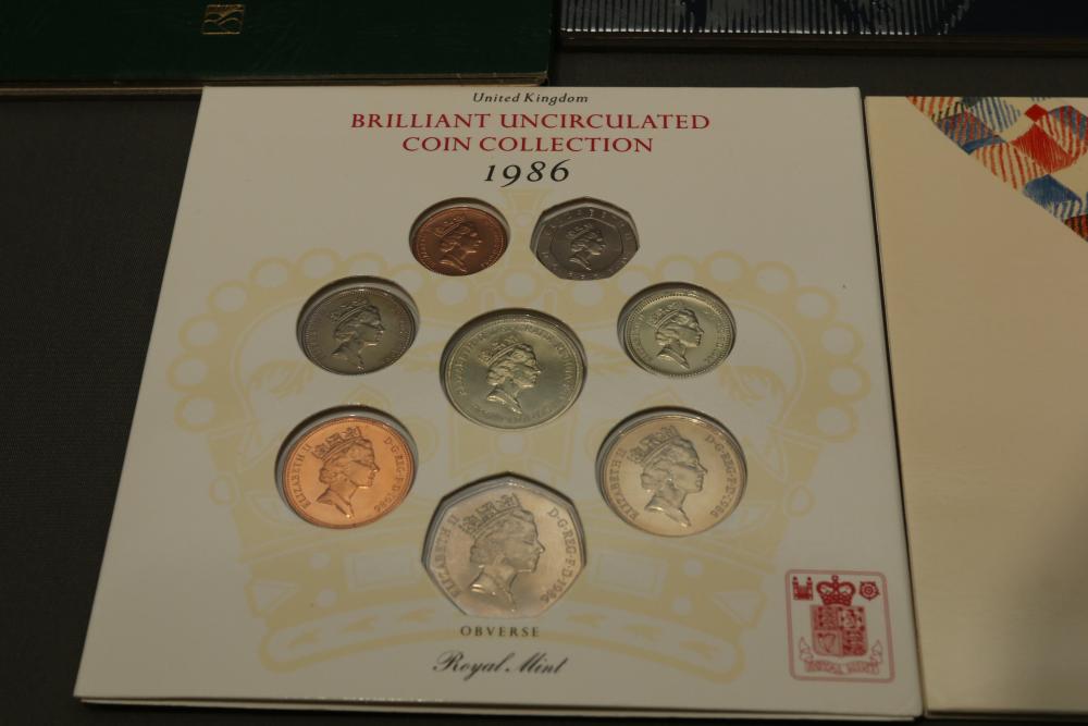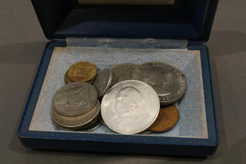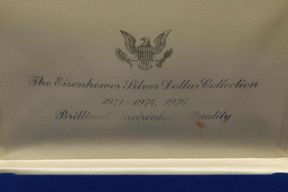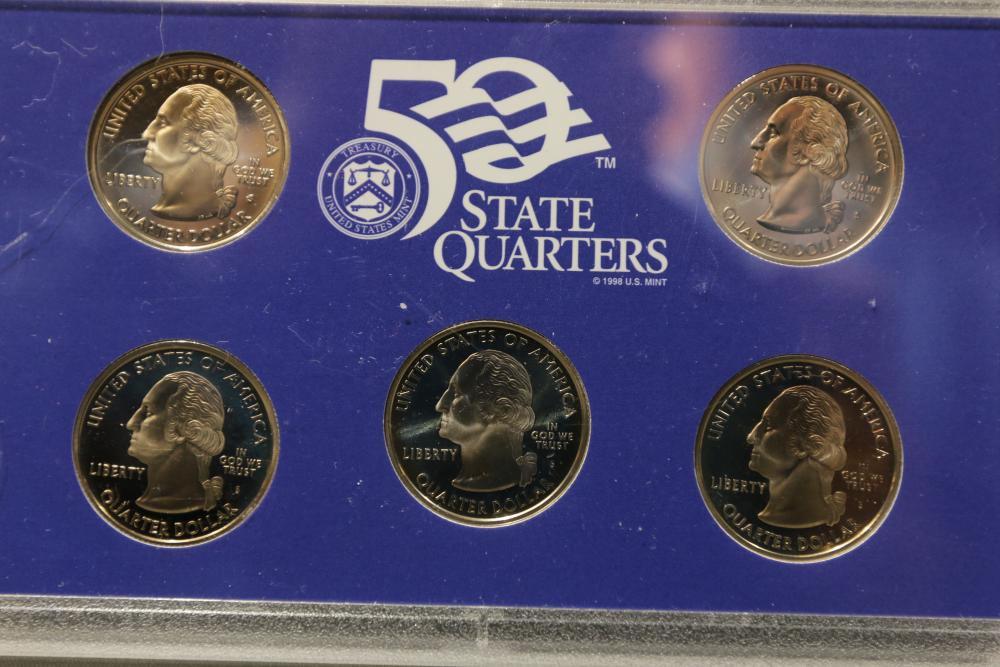 Domestic and foreign coinage incl five Eisenhower silver dollars, Kennedy half dollars three dated 1964, two Liberty Walking half dollars, six pre 1964 dimes, eleven 1979 half dollars, Ten Sacagawea gold coins, eight quarters three pre 1964, state quarters and Washington quarters in coin folders, four wheat pennies, two Indian head pennies, ten nickels, also incl 2006 proof sets commemorative coins, foreign currency, etc.