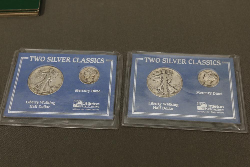 Items include 1900 Liberty $5 gold U.S. coin; 2002 China gold panda coin 1/20 ounce AU.999 5 Yuan mounted in a 14k gold pendant; Morgan silver dollars; U.S. Mint Prestige coin sets including 1986, 1989, 1990, 1992 & 1995 with boxes and COAs; Judith Ripka womens wrist watch with mother of pearl face; Stamped 14K gold necklace; Walking Liberty half dollars; 14K stamped rose gold bracelet with many small diamonds; Two pearl necklaces, both having 10K gold clasp; Foreign paper currency varying in country and denominations and much more! Items are located in Pleasant Valley, NY.