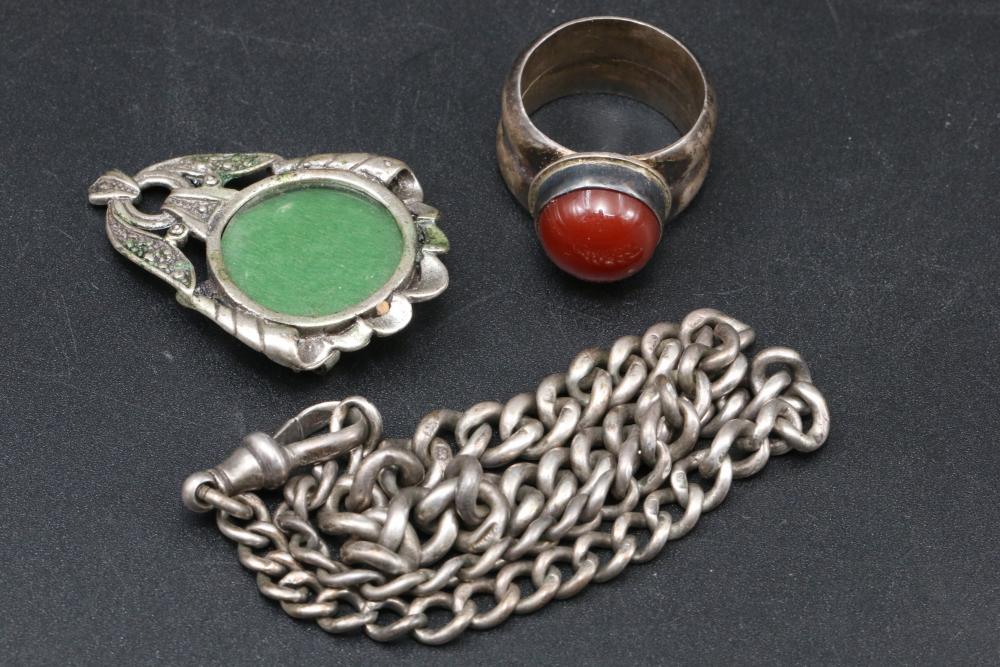 Sterling silver jewelry incl rings, pin, earrings, bracelet, pendant, also incl spoon, all items tested using JSP Testing solution, total weight of sterling items being 152 grams.