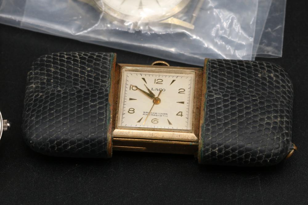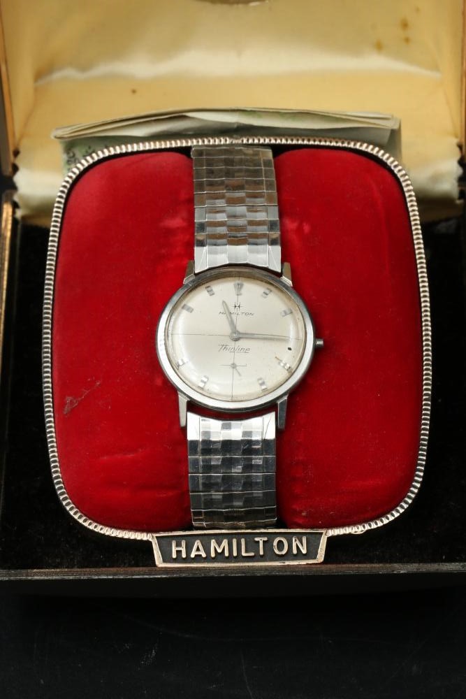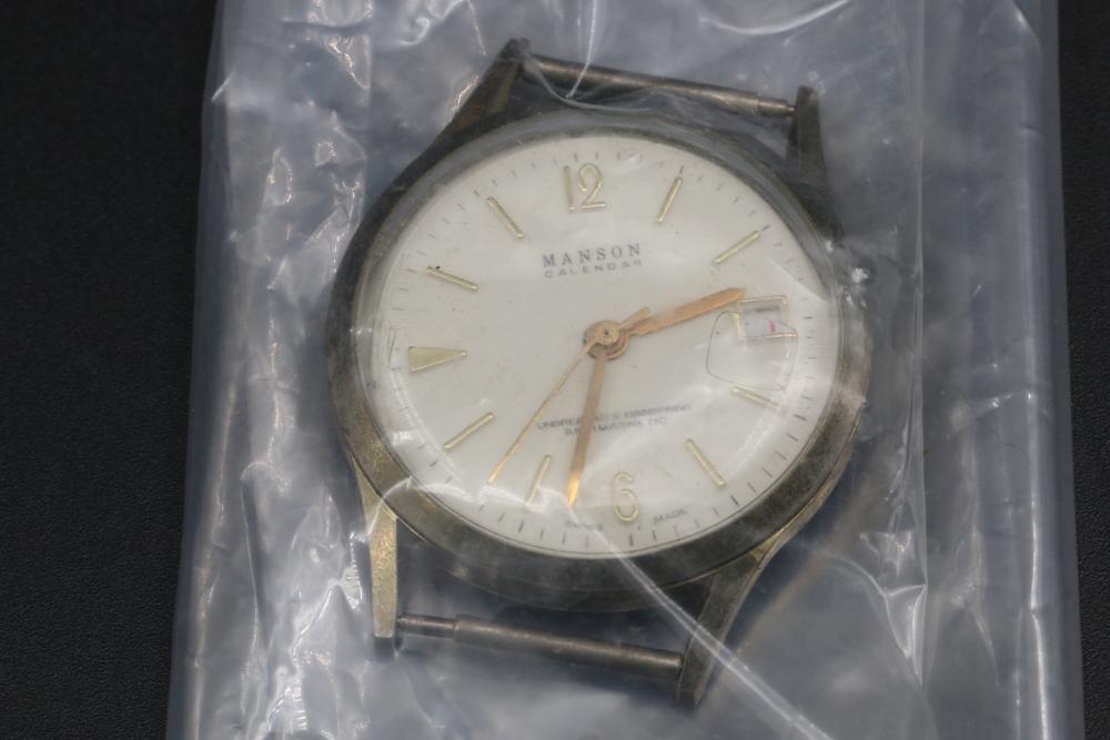 Various wrist watches some brands incl Hamilton Thin Line, Rumours, Manson Calendar, Waltham, etc, also incl Laco pocket clock.