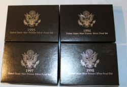 4 United States Mint Premier Silver Proof Sets for 1993, 1994, 1997 & 1998.