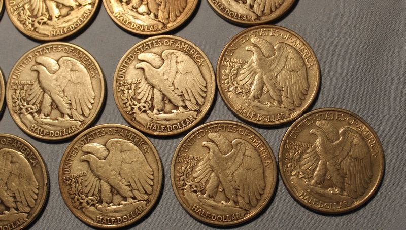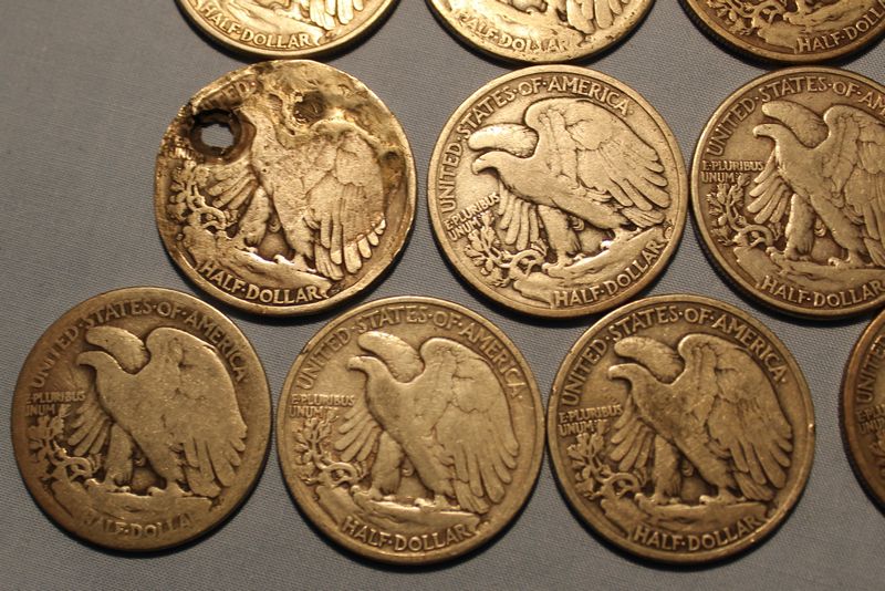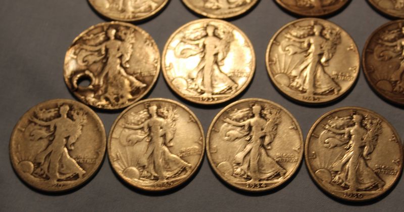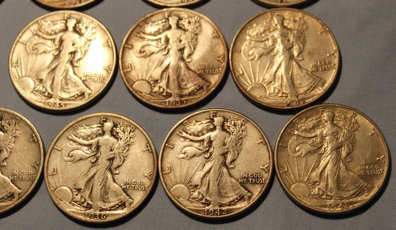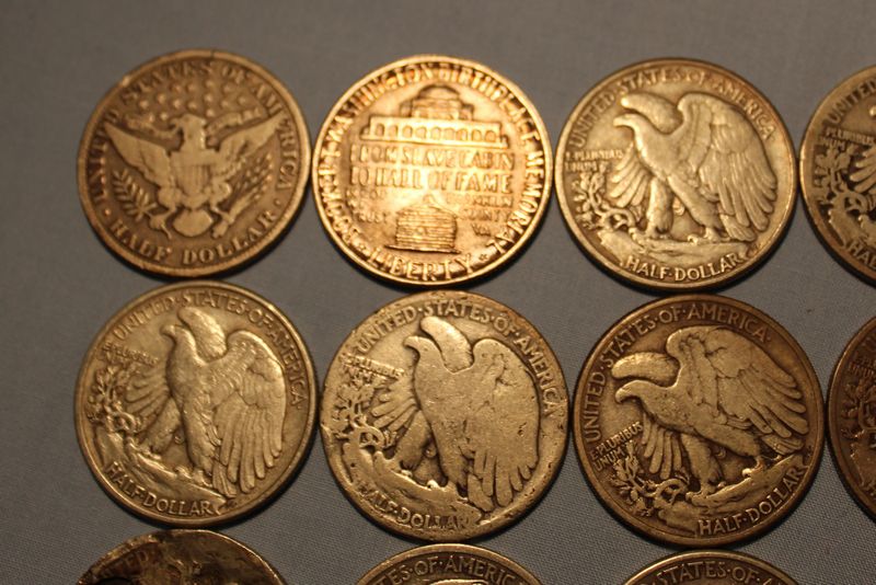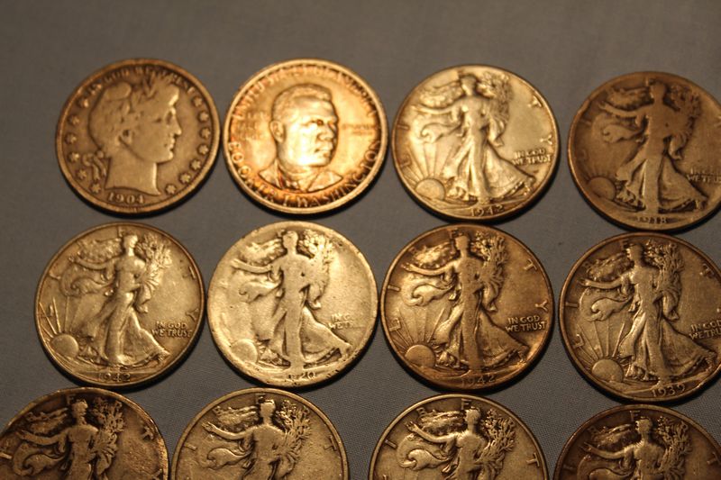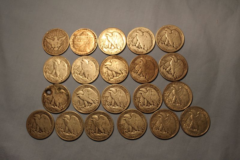 21 U.S. silver half dollars including a 1904 Barber; a 1946 Booker T. Washington; 19 Walking Liberty half dollars with various dates (one is drilled). Shipping is available for this item.