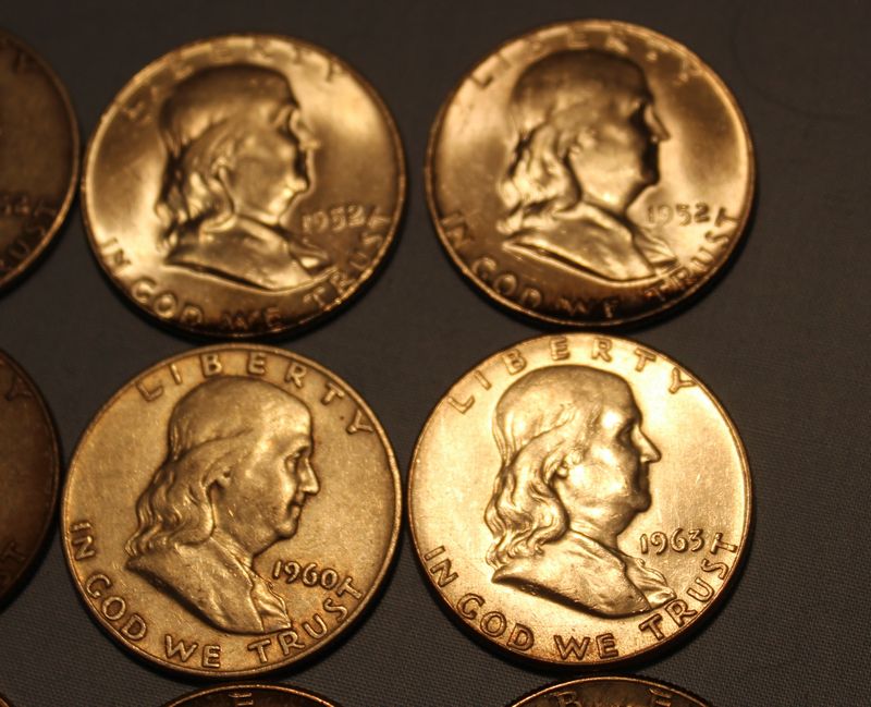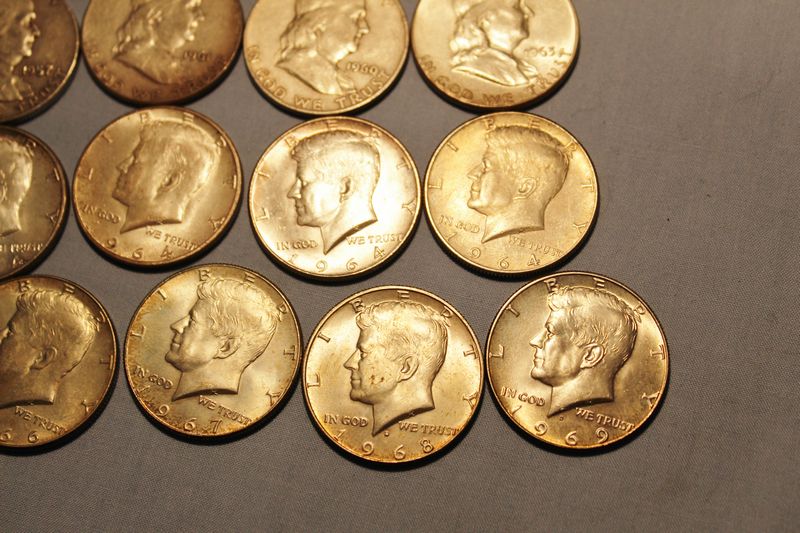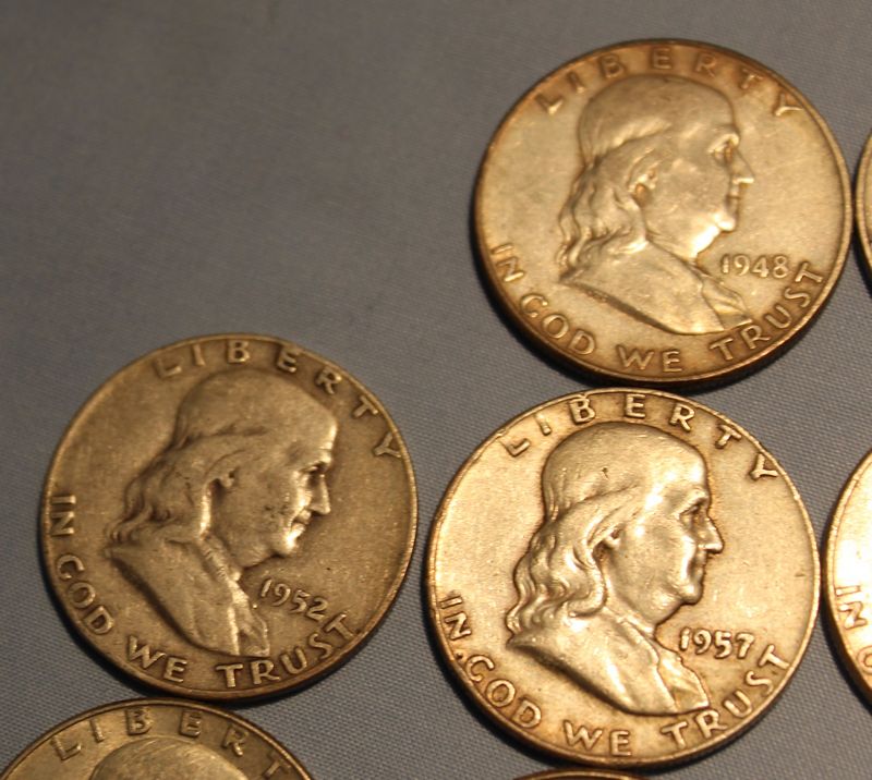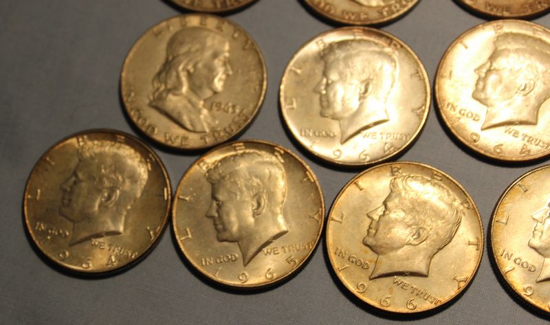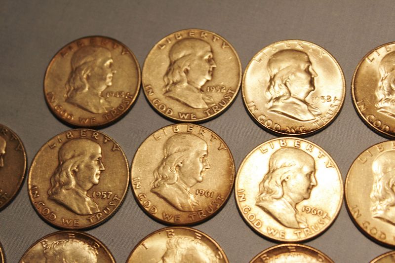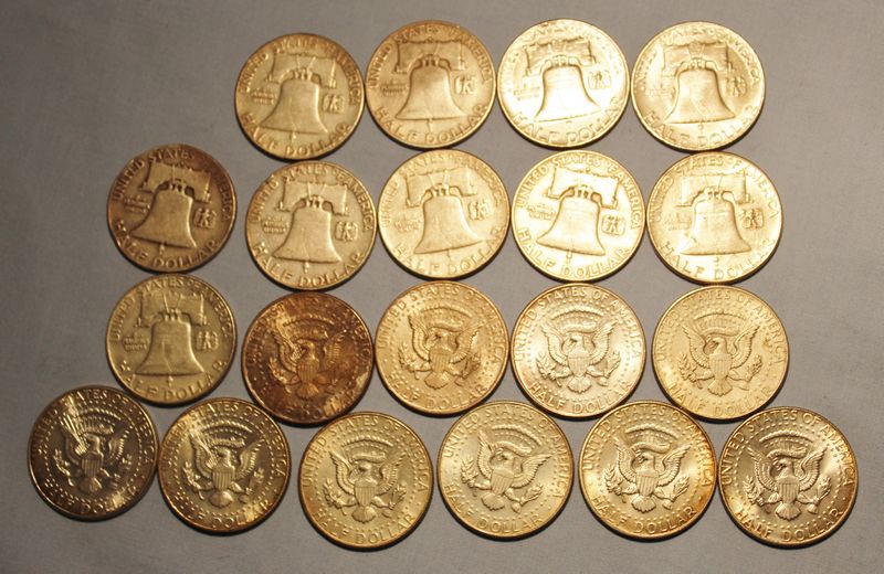 21 U.S. half dollar coins including a 1926 Sesquicentennial Silver Half Dollar; ten Franklin (various dates) and ten Kennedy (five 1964 and the others are dated from 1965 - 1969). Shipping is available for this item.