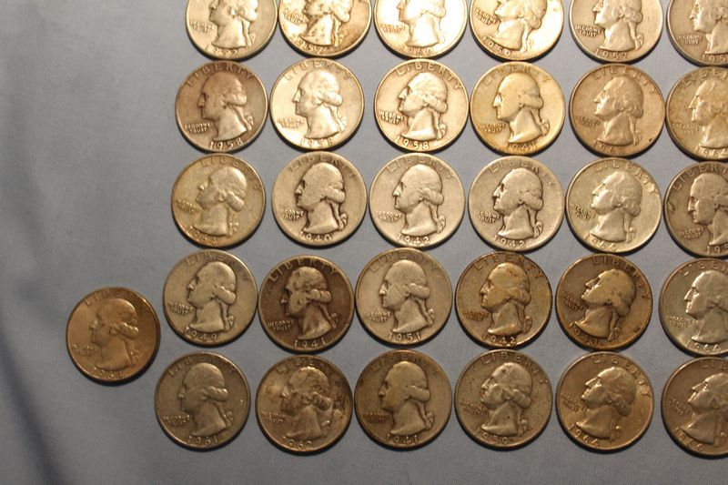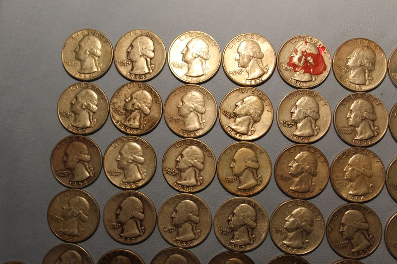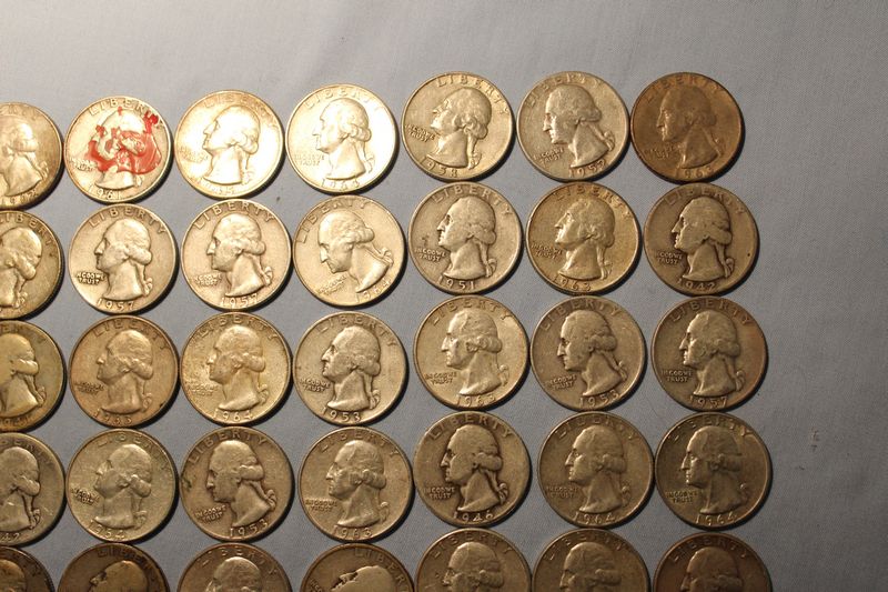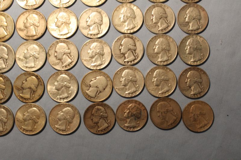 61 silver U.S. Washington quarters (all pre 1965, various dates, unsorted). Shipping is available for this item.