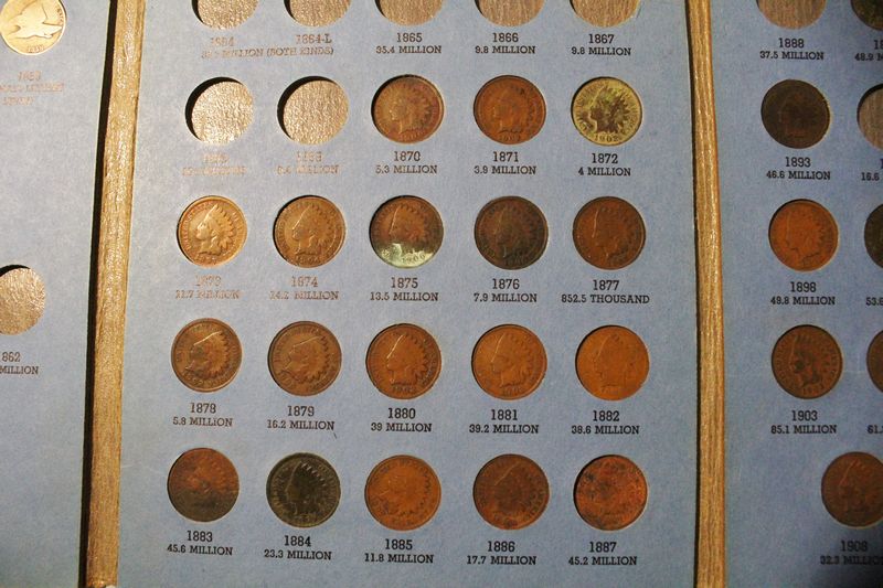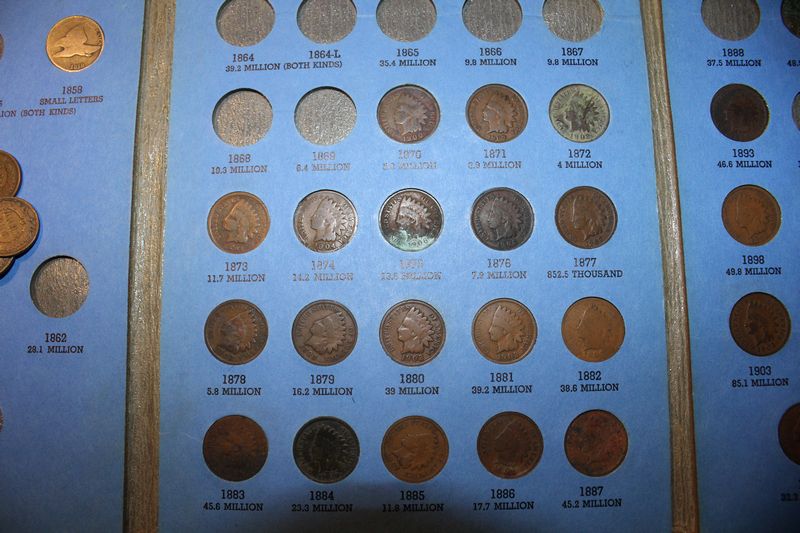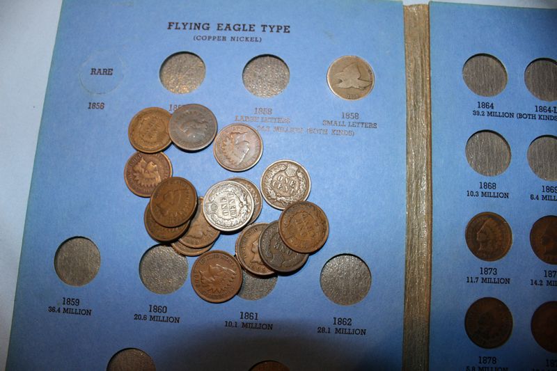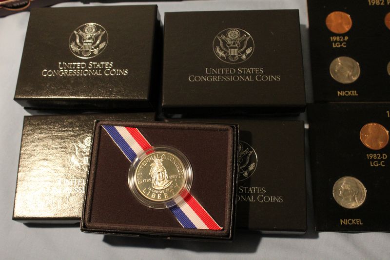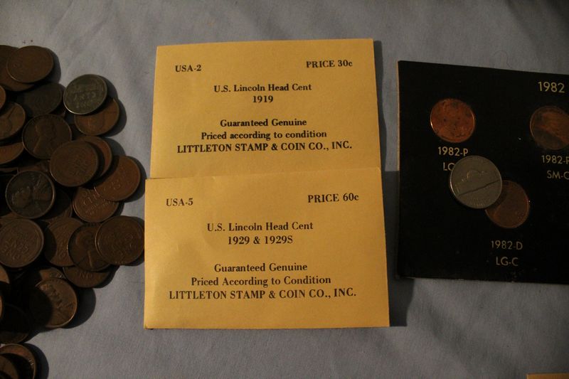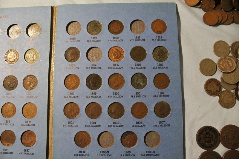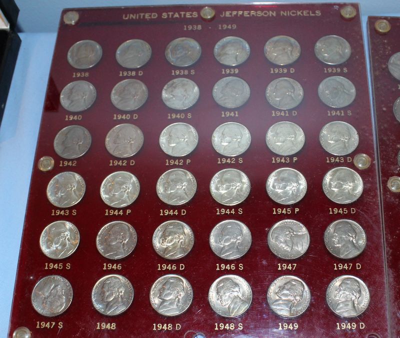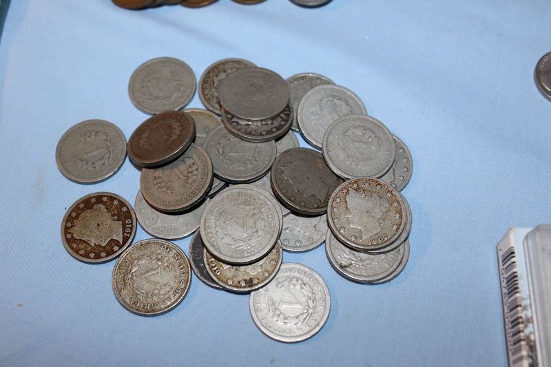 Coins and medals including 4 antique US one cent coins dated 1845, 1847, 1849 & 1853; 30 Barber Nickels (various dates unsorted); 53 Indian Head pennies (various dates, some sorted); 230 wheat back pennies (various dates unsorted); Jefferson Nickel collection 1938 - 1962; 45 loose vintage nickels (unsorted); 7 US Mint 1989 Congressional Coins half dollar proofs; 1992 U.S. Olympic half dollar proof; two 1982 US Mint coin sets; a 1983 U.S. Mint coin set; a 1982 Lincoln Cents set; 2004 US Mint Westward Journey Nickel Series; The National Bicentennial Medal and 6 other Bicentennial Medals.