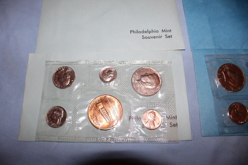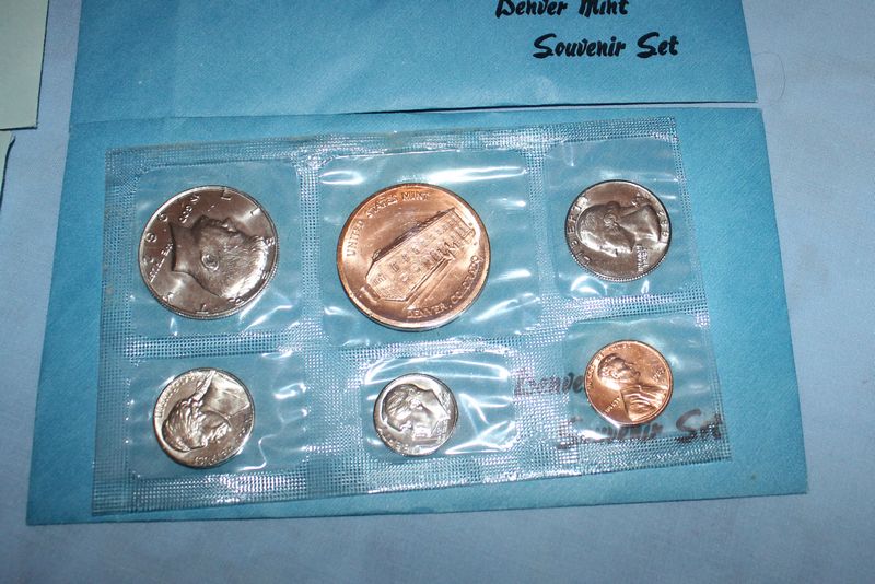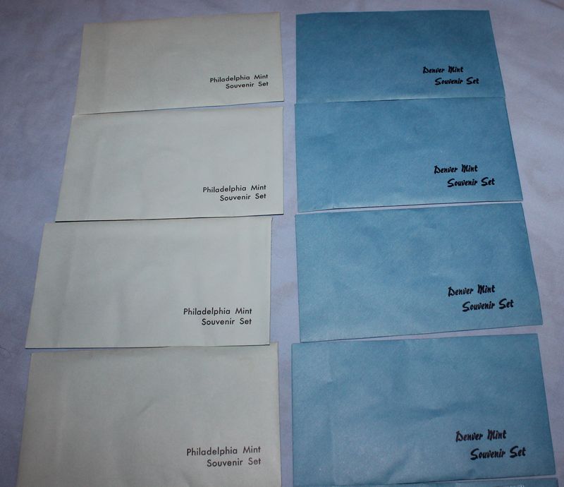 1982 Mint Souvenir Coin Sets, five from the Denver Mint and five from the Philadelphia Mint, with envelopes (all open).