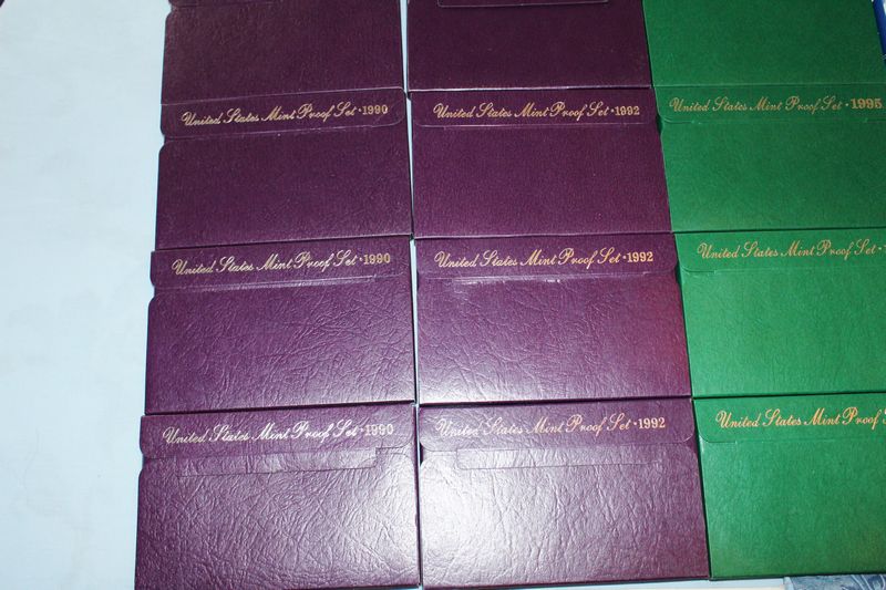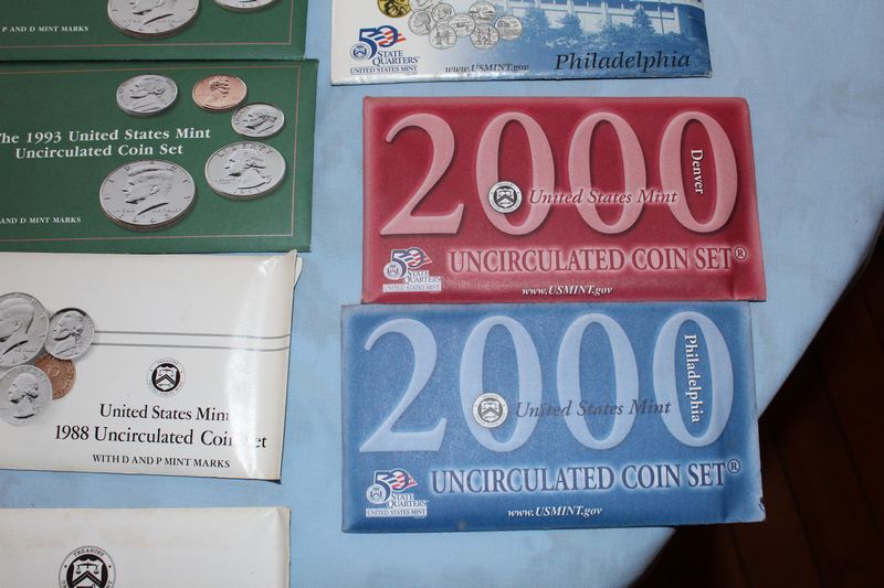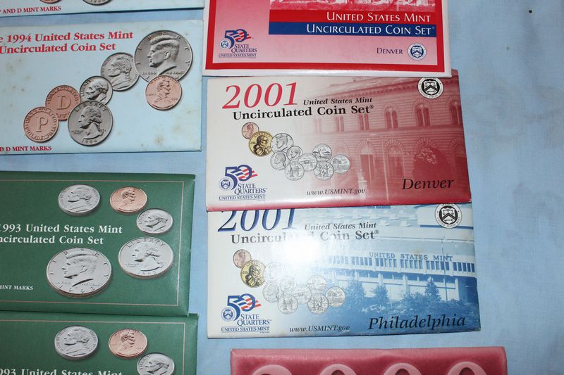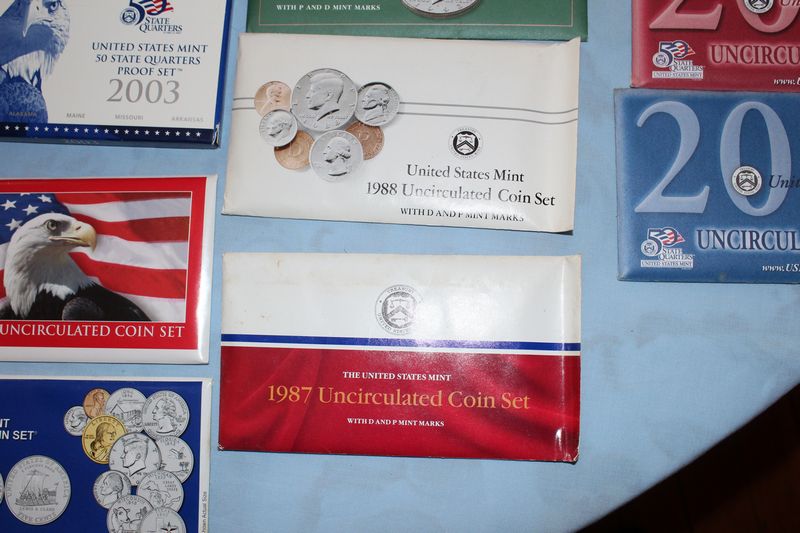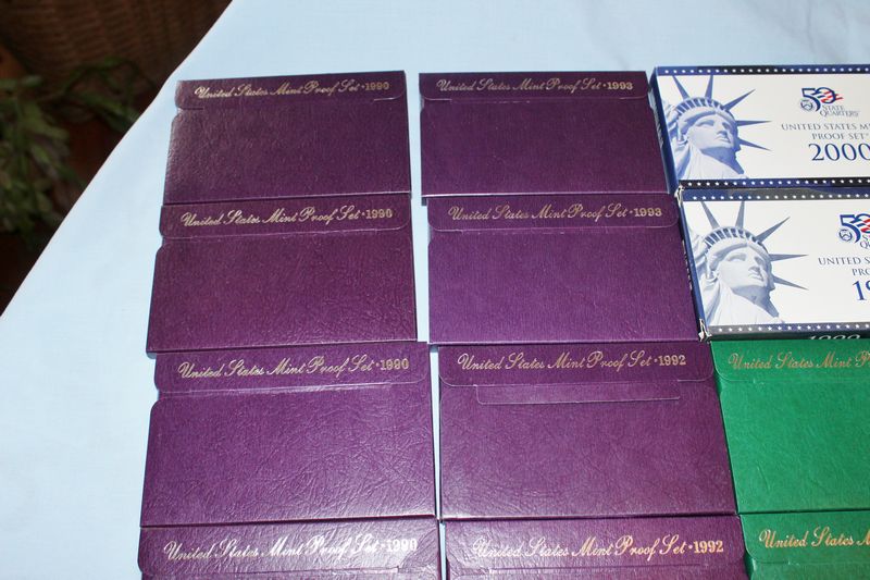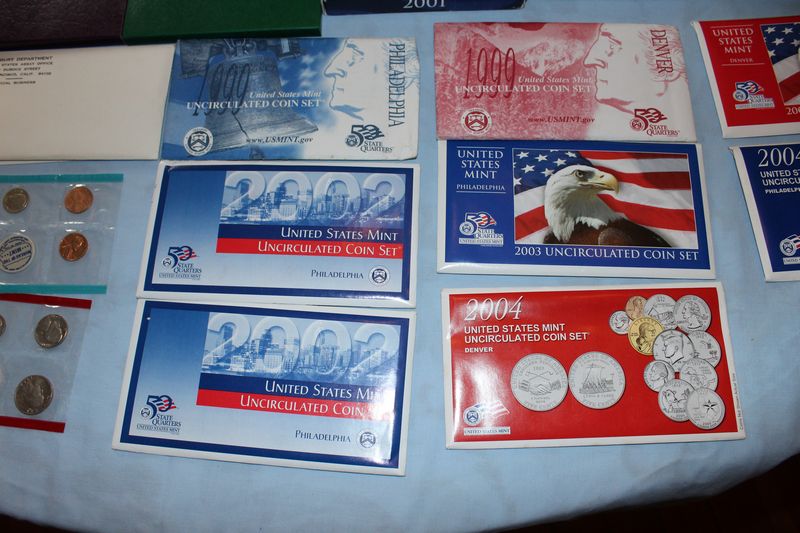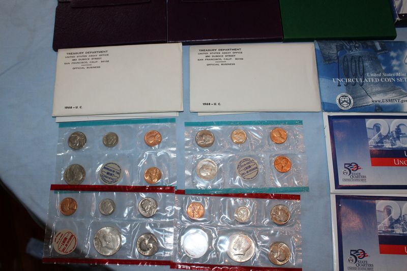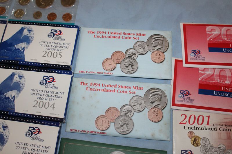 U.S. Mint Proof Sets including six 1990; six 1992; two 1992; two 1995; one 1999; one each 2000 - 2005. Also with this lot are ten U.S. Mint 50 State Quarters Proof Sets (see photos); two 1968 Uncirculated Sets; numerous other Uncirculated Coin Sets from 1987 to 2004; etc.