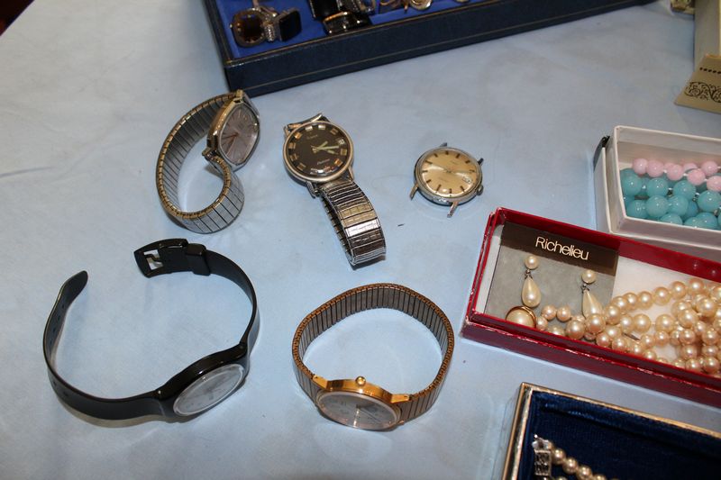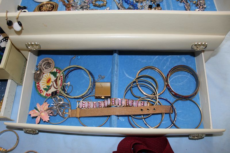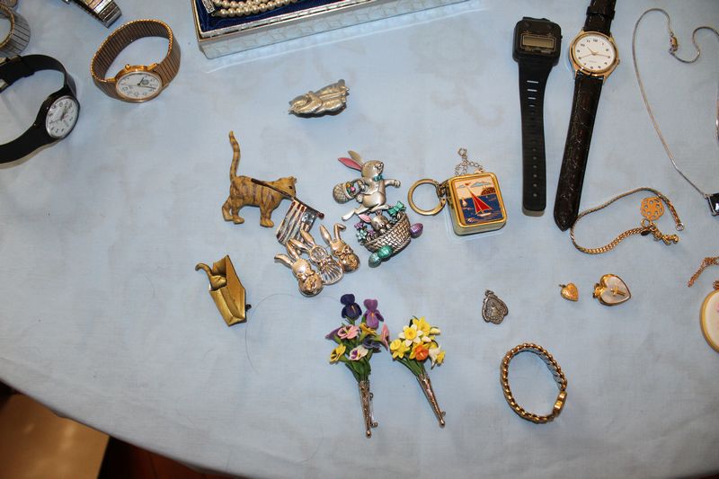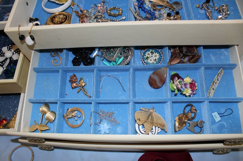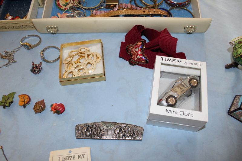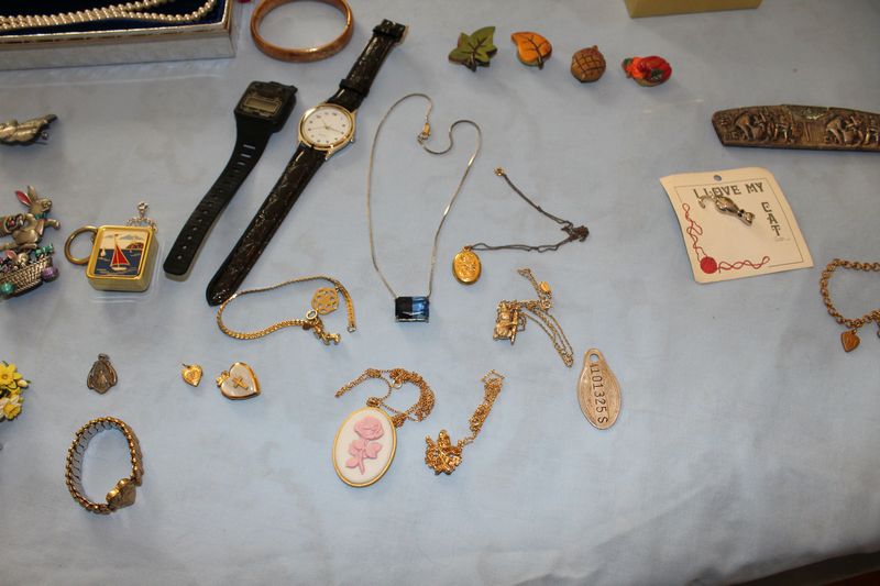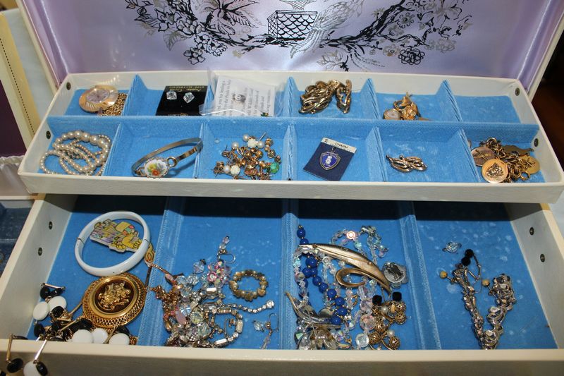 Costume jewelry including necklaces; bracelets; pins; watches; earrings; men's jewelry; jewelry boxes; etc.