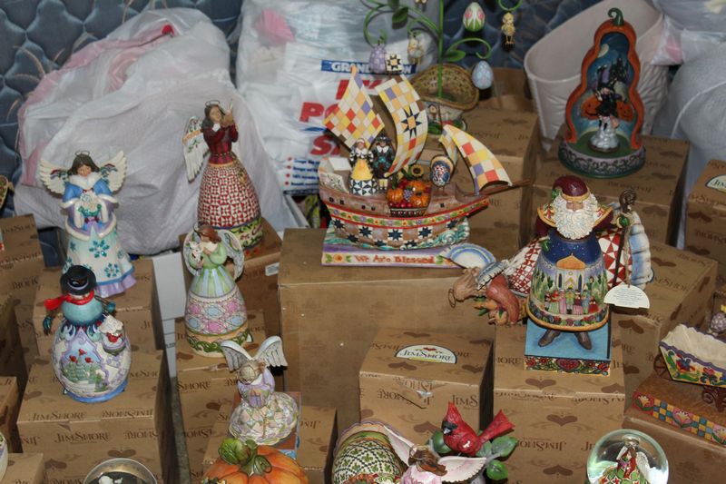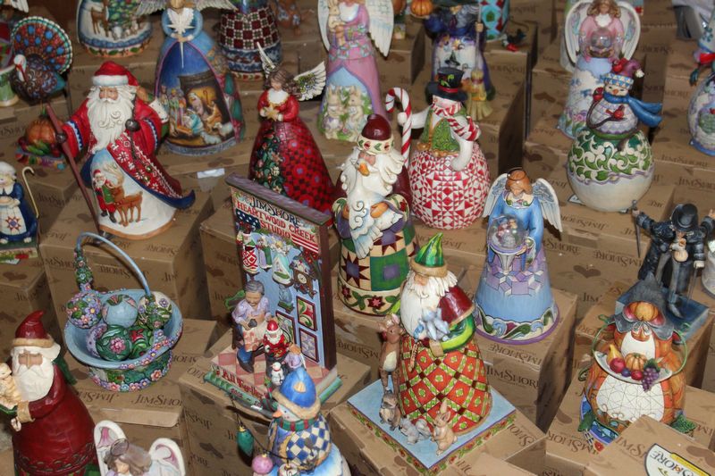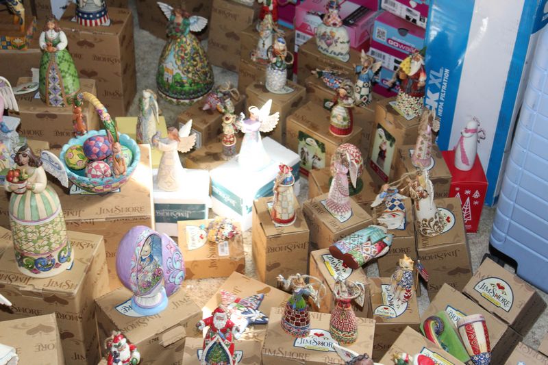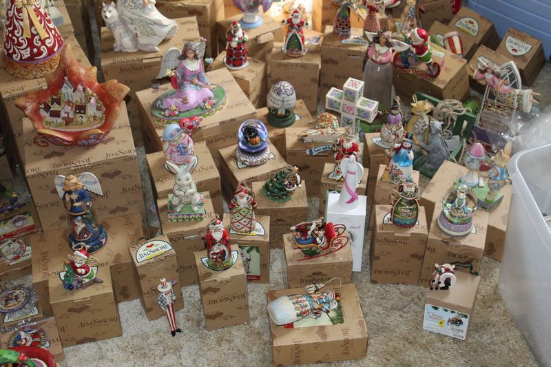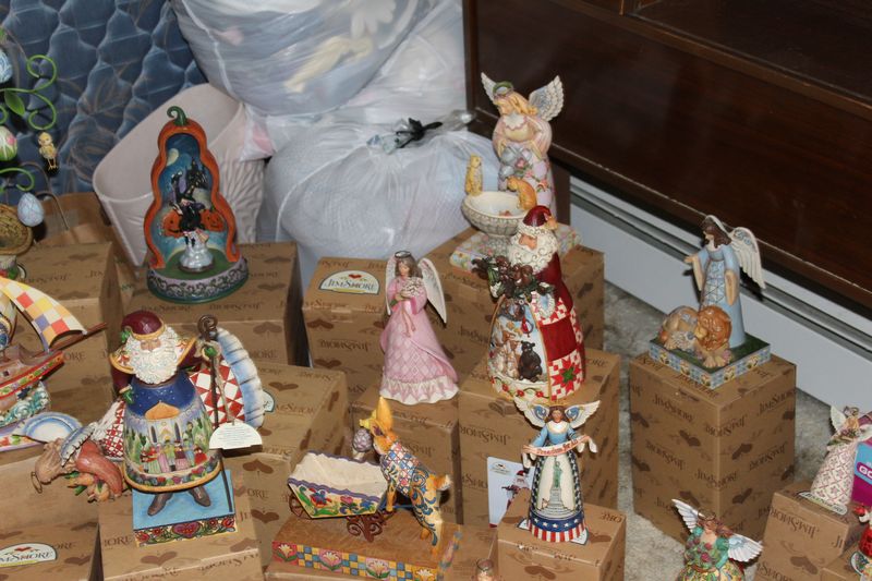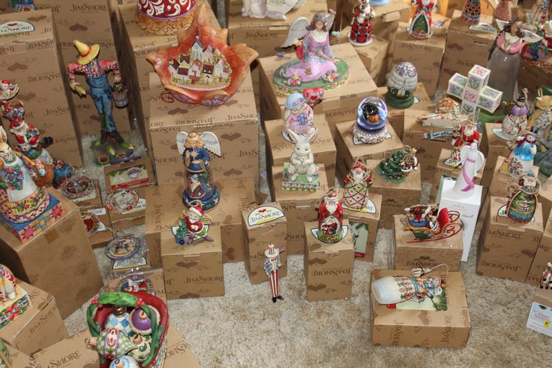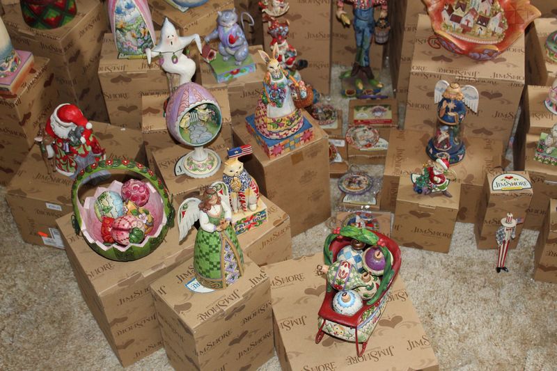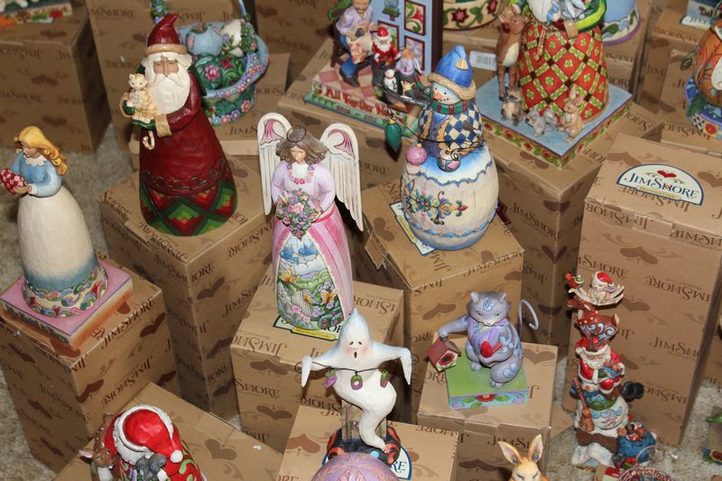 Large collection of Jim Shore figurines, most with original boxes (more than 100 figurines). Buyer should bring boxes and packing materials.