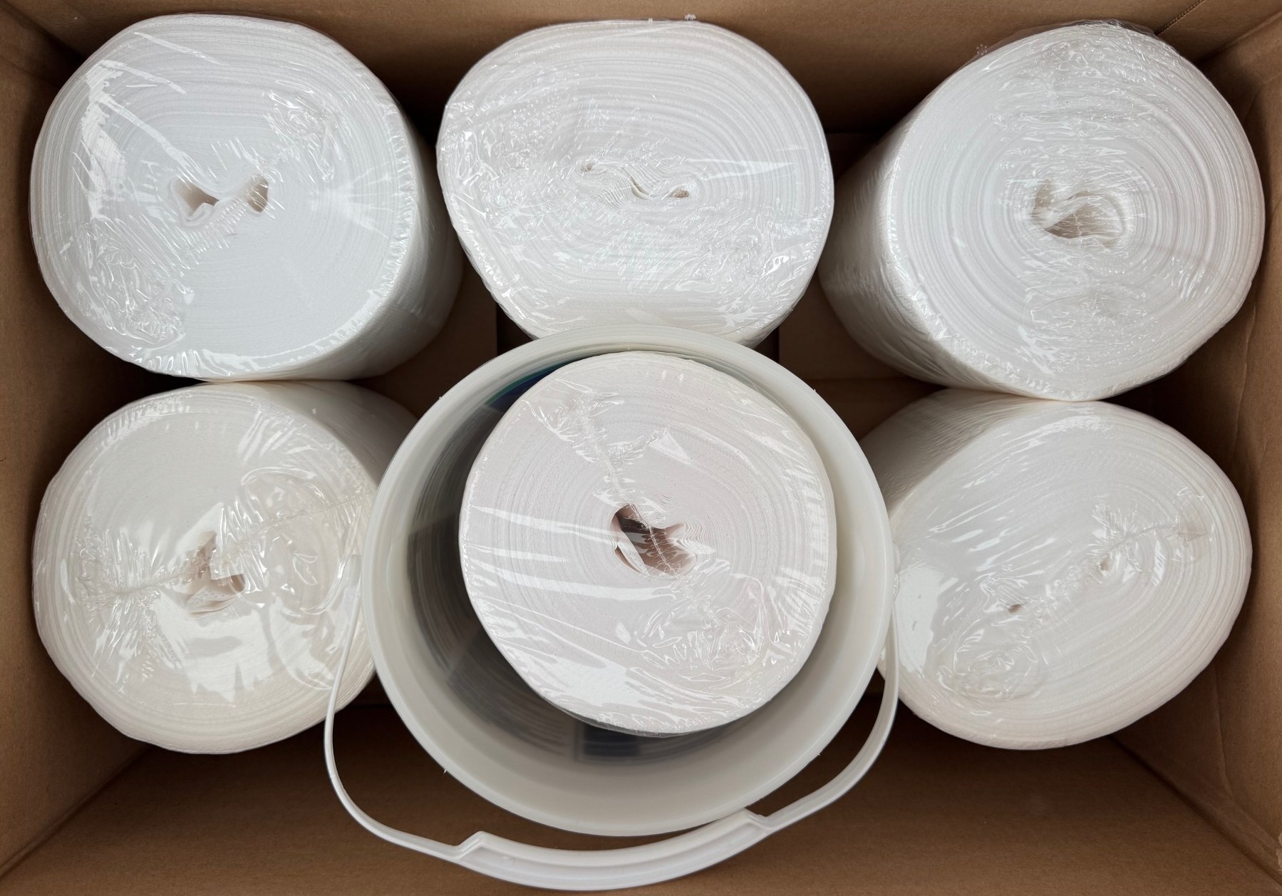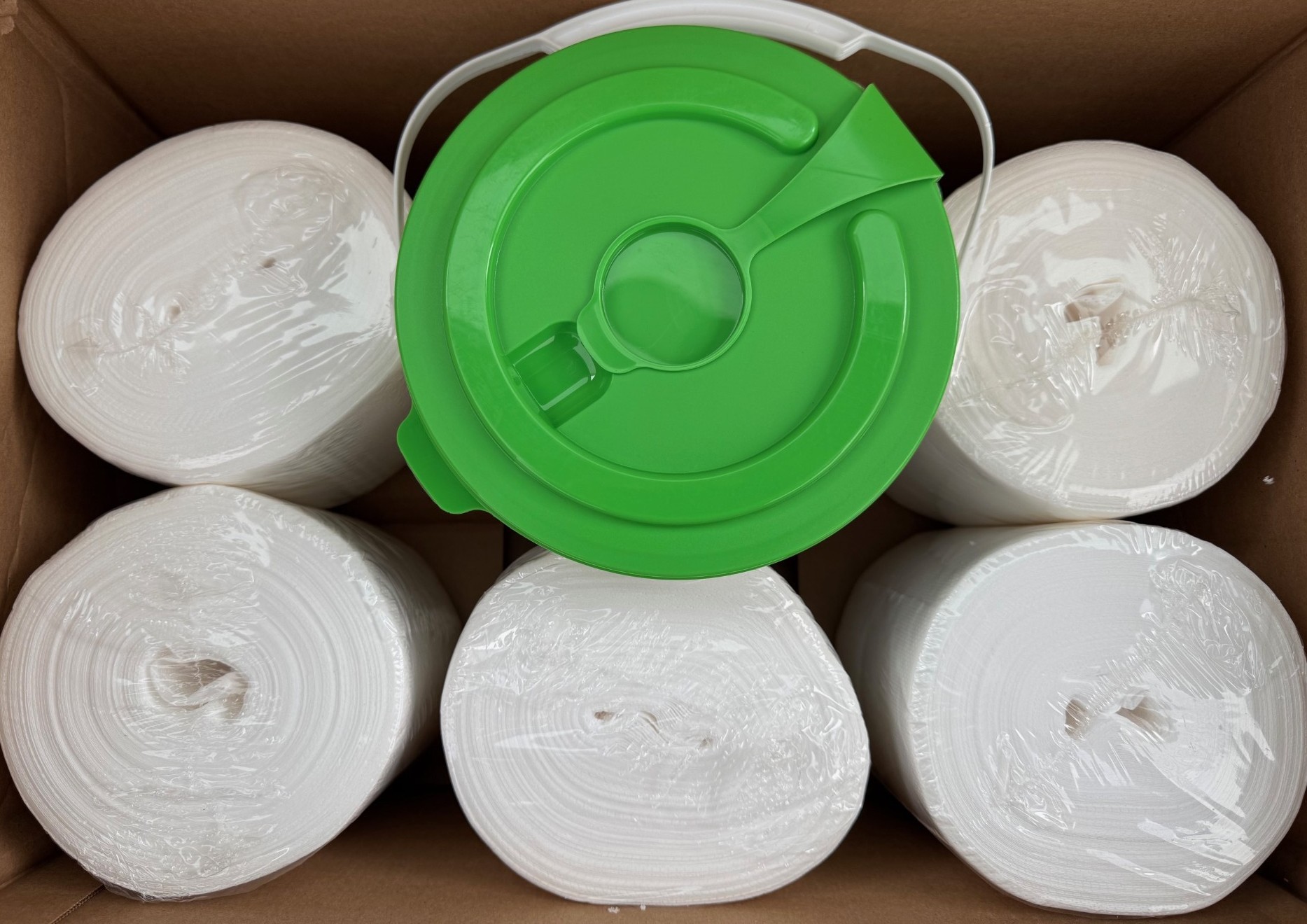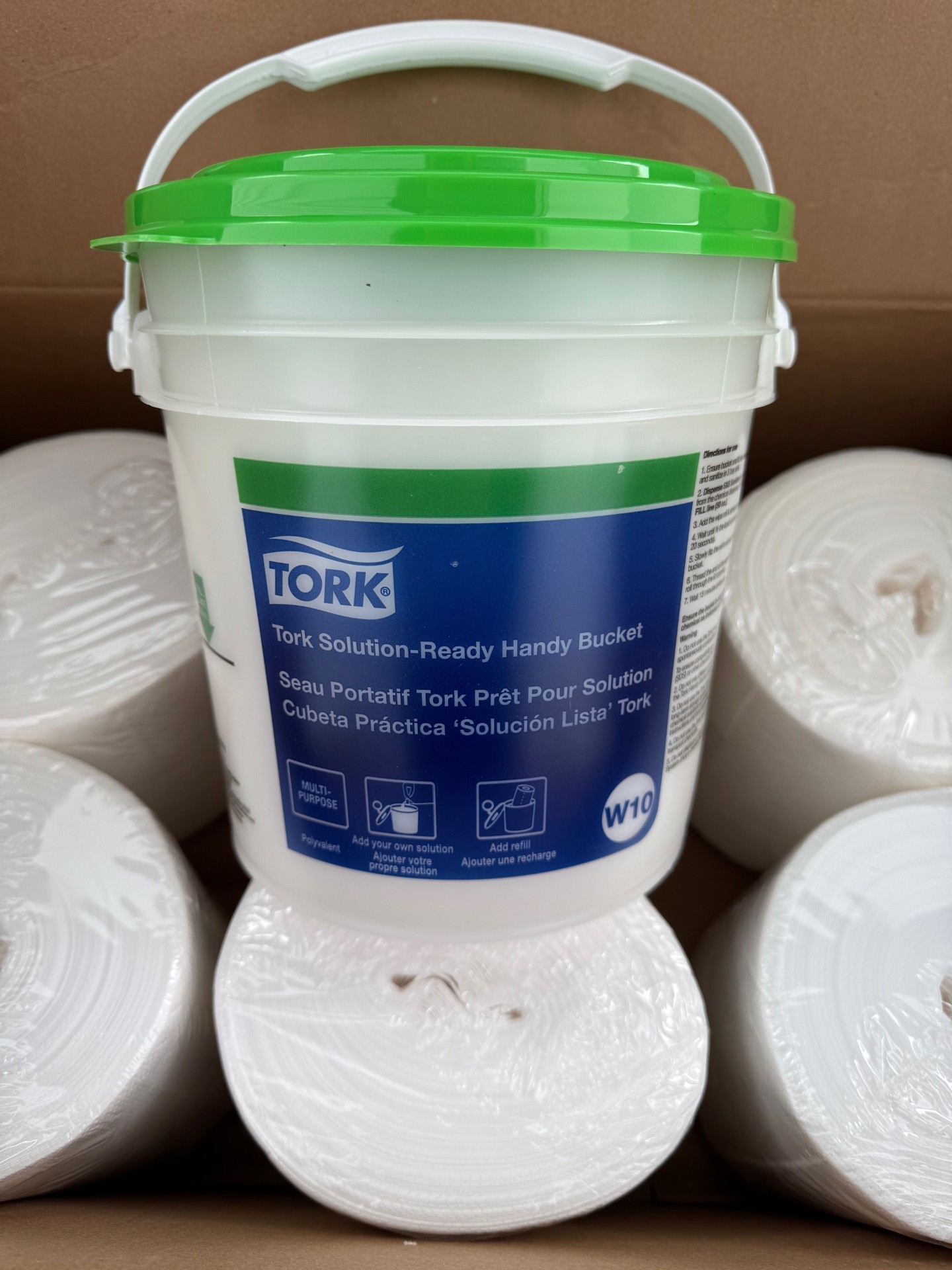 Tork Solution-Ready Cleaning Cloths with Plastic Refill Bucket; Each case includes a Plastic Bucket and (6) 110-Sheet Rolls of Cloth Cleaning Towels; Each Perforated Towel measures 8-inches x 12-inches. Pickup only.
