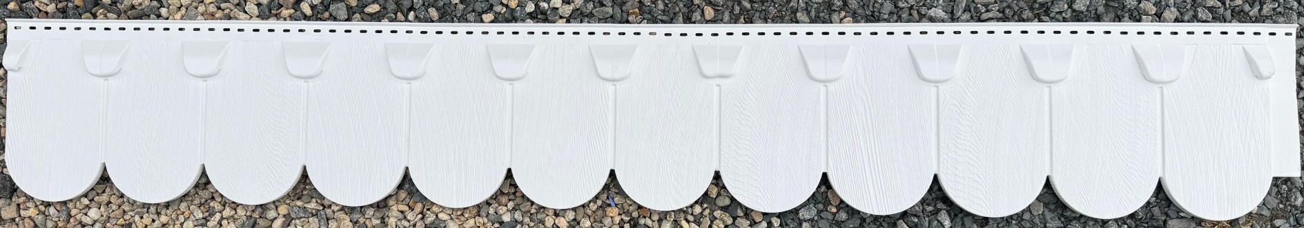 1 1/2 Square Norandex Home Accents White Scallop-Style Novelty Vinyl Siding - This lot consistes of 3 Boxes each of which contains 20 pieces of siding that measure 5-feet Wide x 6-inches High or 1/2 Square (60 Pieces Total / 1 1/2 Square) Boxes show sign of distress but the siding is perfectly fine. Pickup only.