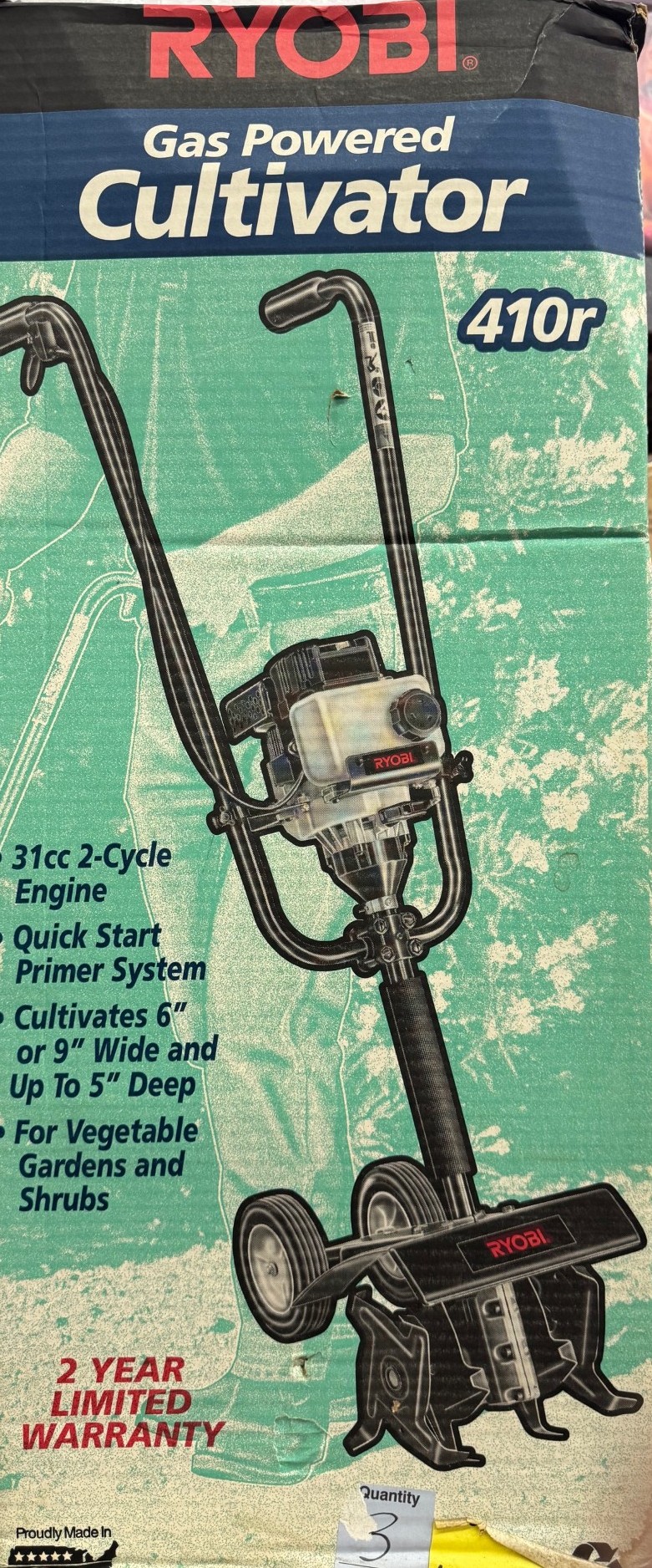 Ryobi 31cc 2-Cycle Gas Powerd Garden Cultivator for Vegetable Gardens and Shrubs - Cultivates 6-inches to 9-inches Wide x 5-inches Deep. Pickup only.