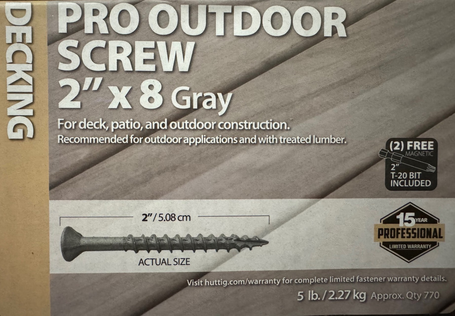 10-Pounds Huttig-Guard 2-inch x 8 Pro Outdoor Decking Screws w/two 2-inch T-20 Magnetic Bits - Gray.