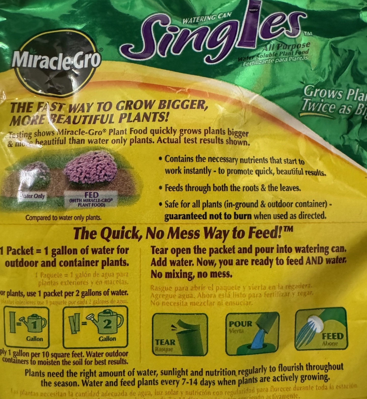 Miracle-Gro Watering Can Singles - All Purpose Water Soluble Plant Food - 24- Pre-Measured Packets. Pickup only.