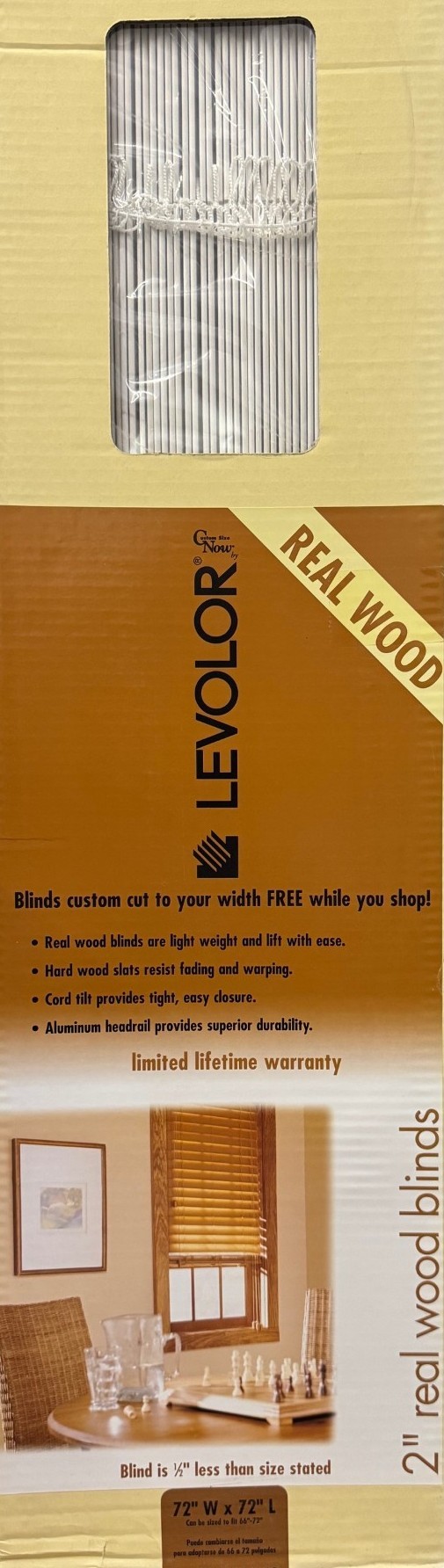 Levolor 2-inch Wide Real Wood Blinds - White - 72-inches Wide x 72-inches Long. Pickup only.