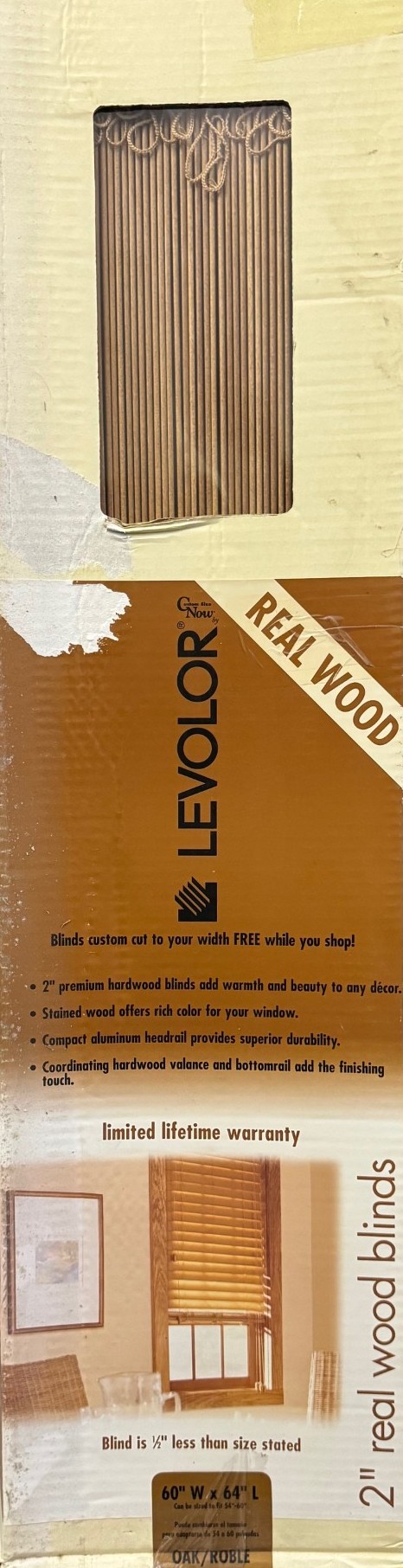 Levolor 2-inch Wide Real Wood Blinds - Natural Oak - 60-inches Wide x 64-inches Long. Pickup only.