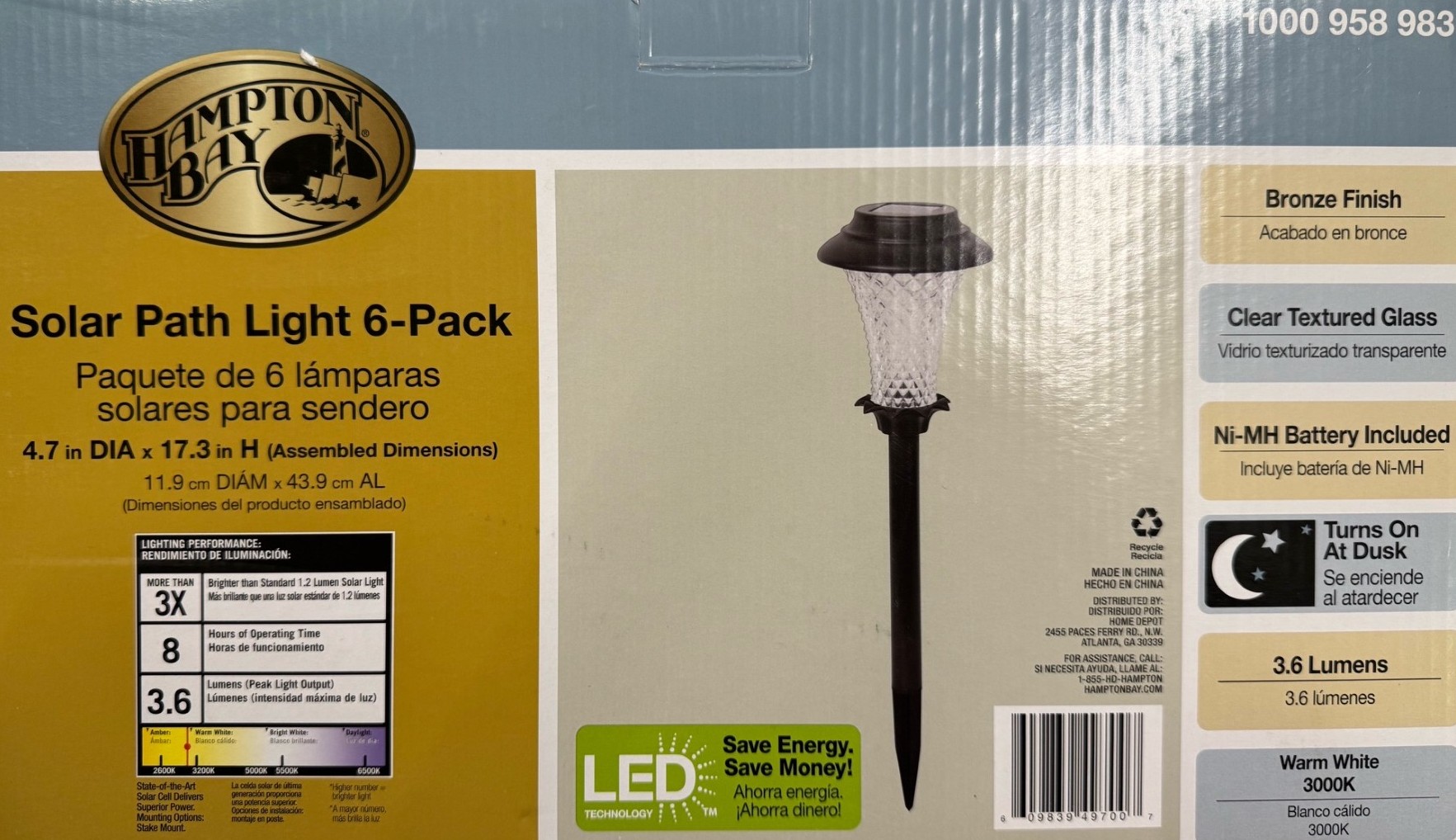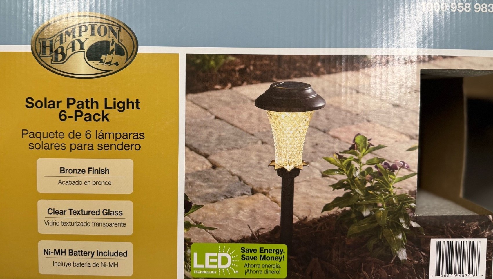 6-Pack Hampton Bay Solar LED Path Light Set - Bronze Finish with Clear Textured Glass Shades - Batteries Included / 3.6 Lumens Warm White 3000K.