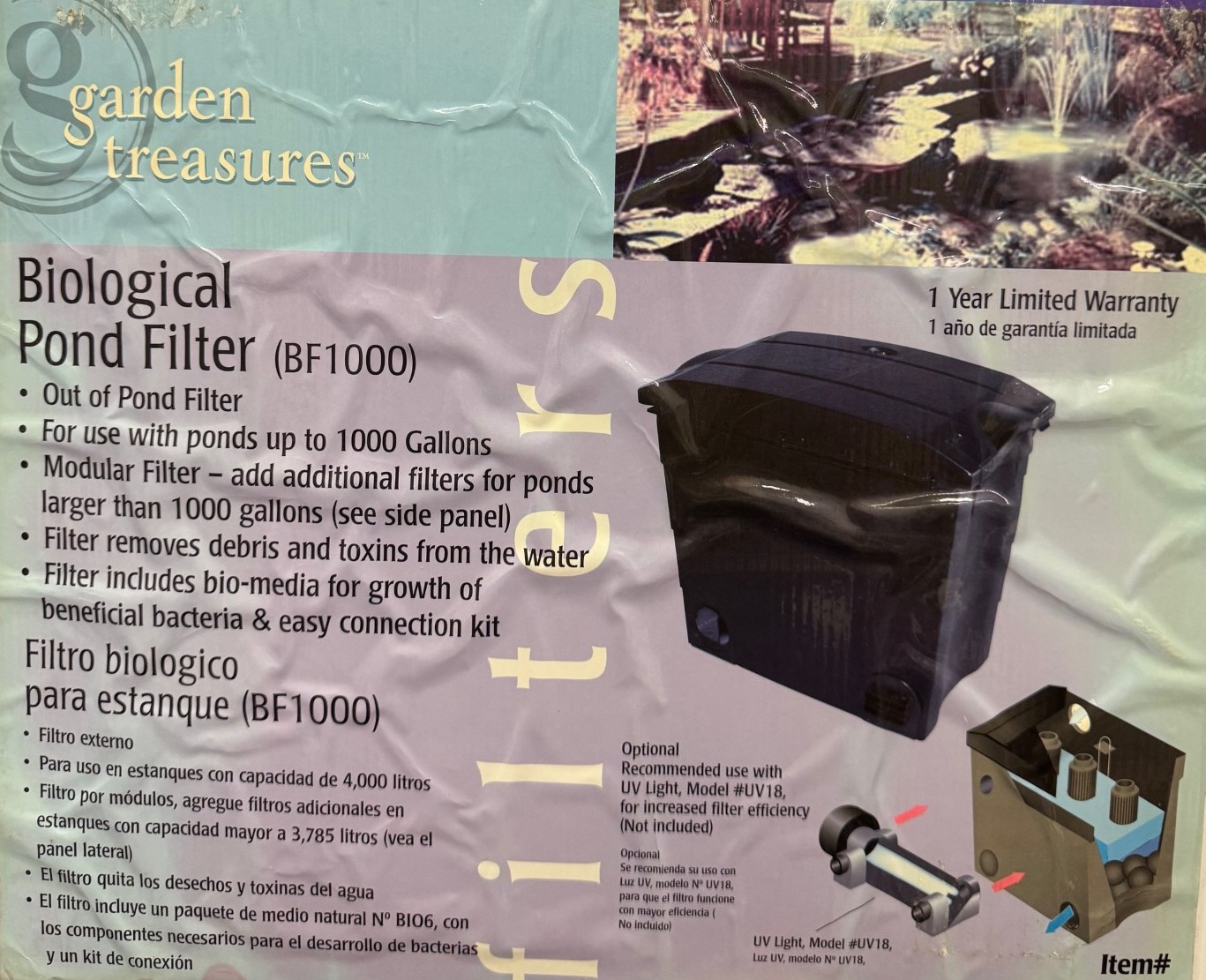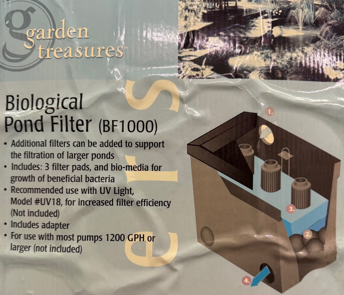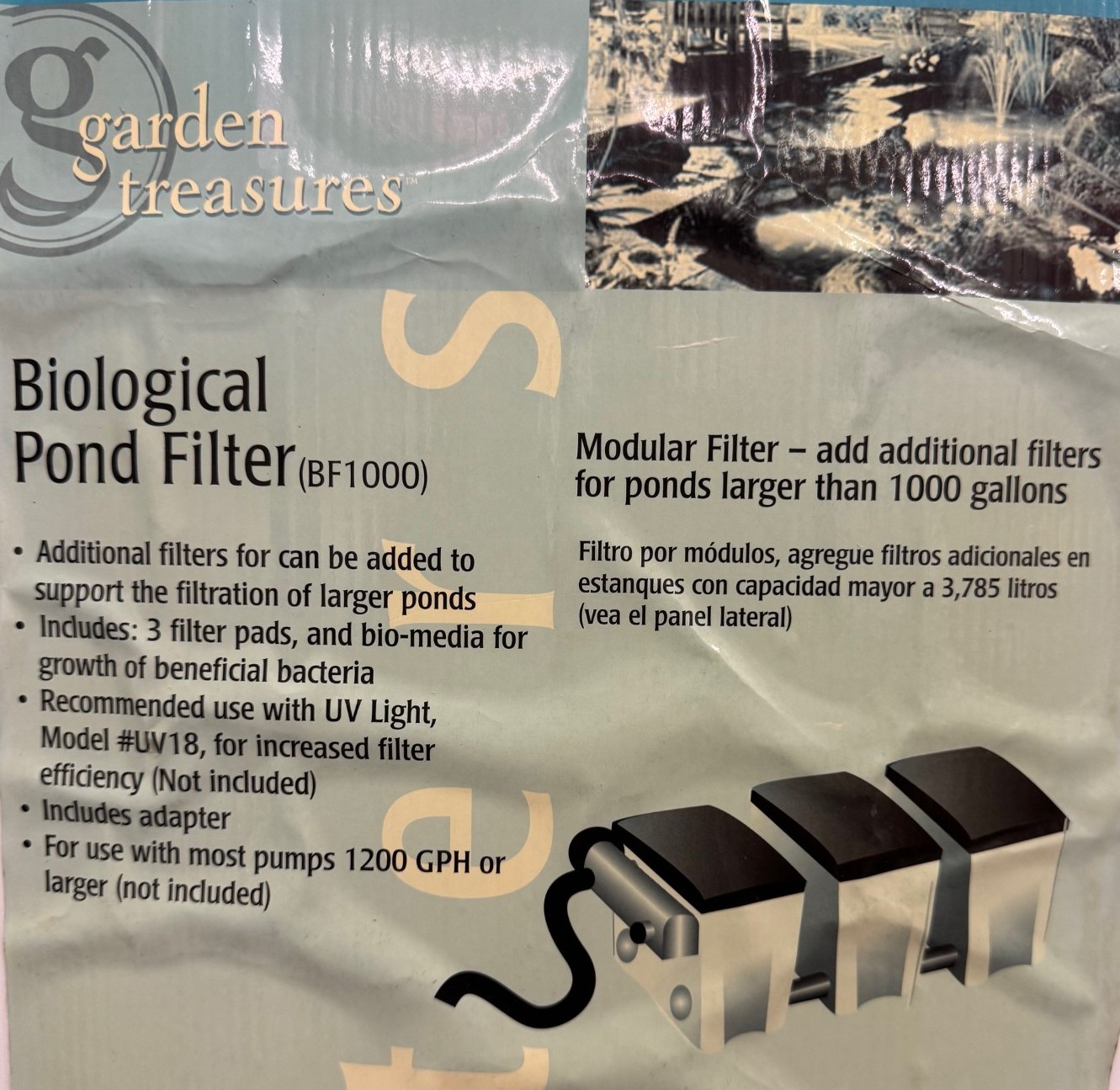 Garden Treasures Biological Pond Filter for use in Ponds up to 1,000 gallons; This is a Modular Filter and additional filter can be added for Larger Ponds.