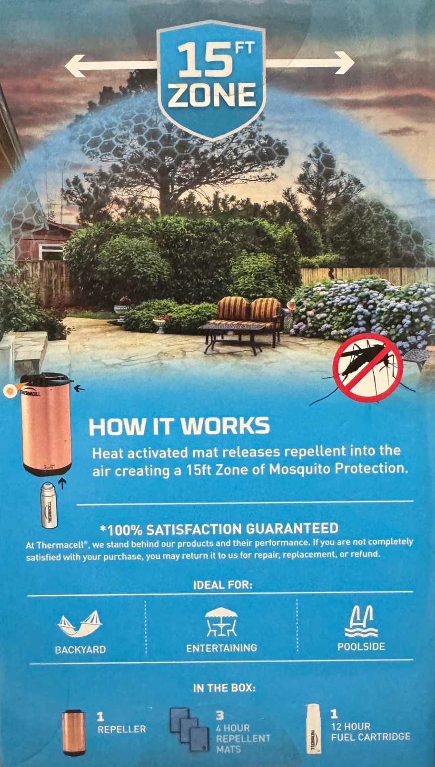 Thermacell Patio Shield Scent-Free Mosquito Repellent - Includes (1) Repeller / (3) 4-Hours Repeller Mats / (1) 12-Hour Fuel Cartridge - Copper.