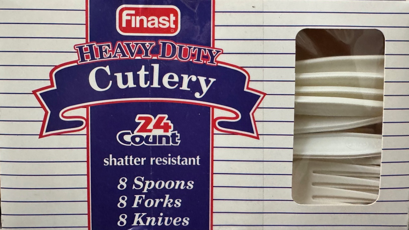 6 Boxes Finast - Heavy-Duty White Plastic Cutlery - 24 -Pieces per Box (8 Knives/8 Forks/8 Spoons) 144 Pieces Total.