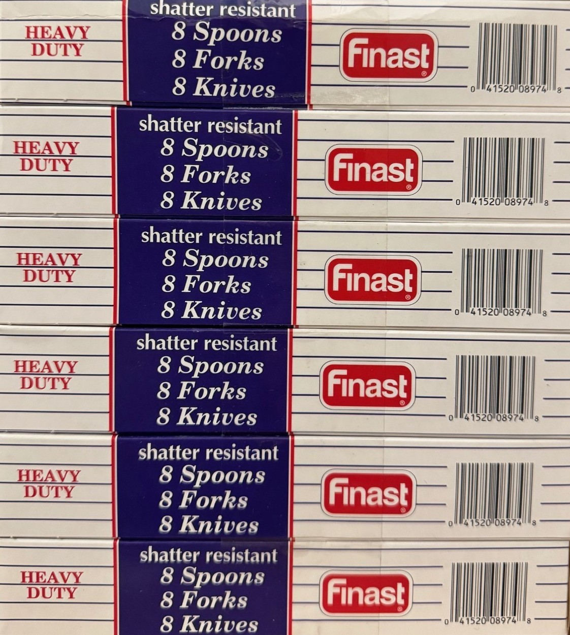 6 Boxes Finast - Heavy-Duty White Plastic Cutlery - 24 -Pieces per Box (8 Knives/8 Forks/8 Spoons) 144 Pieces Total.