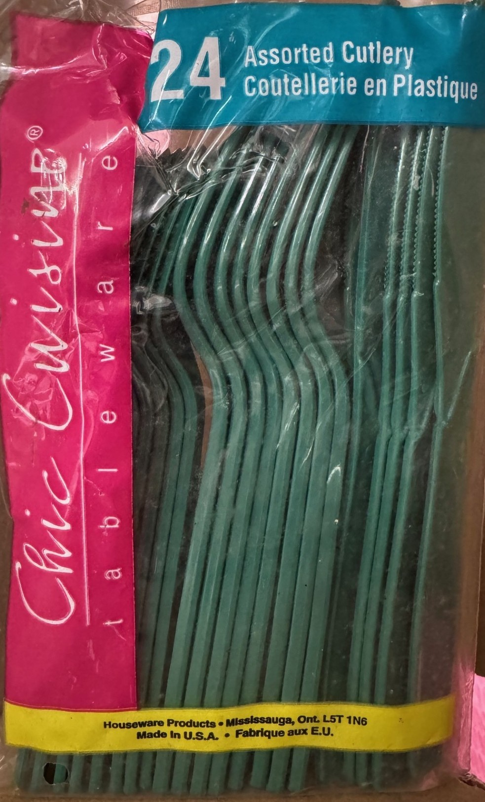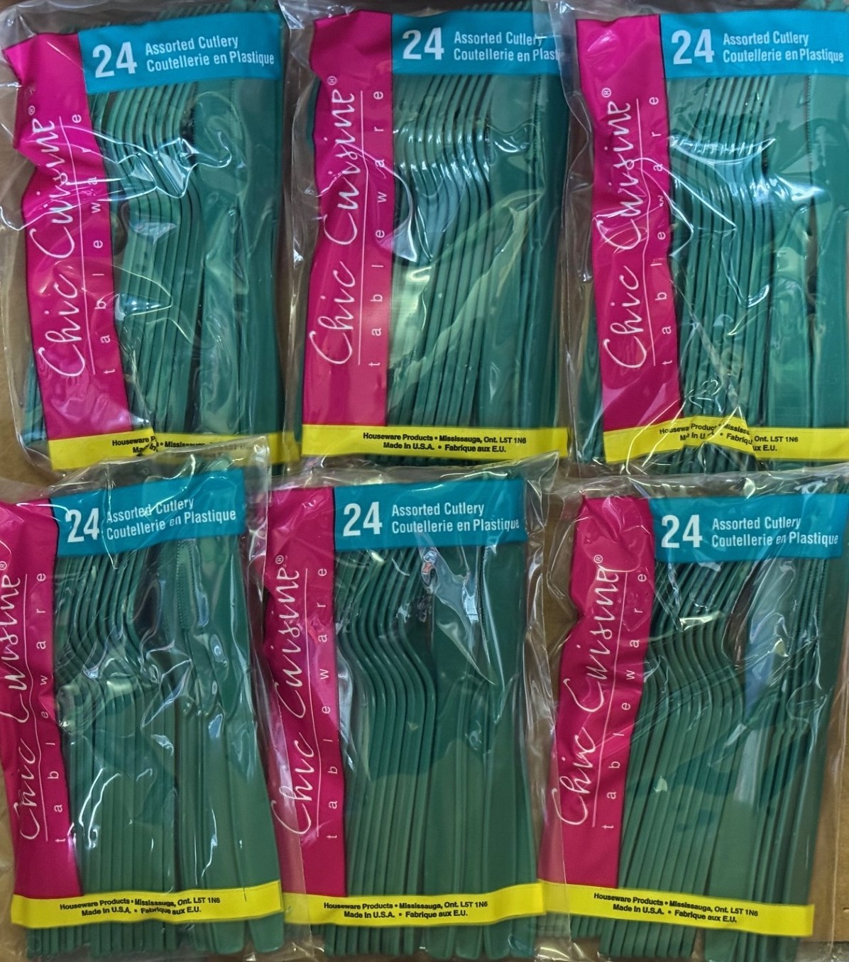 6 Packages Chic Cuisine Extra Heavy-Duty Plastic Cutlery - Green Color 24 -Pieces per Box (8 Knives/8 Forks/8 Spoons) 144 Pieces Total - Made in USA.