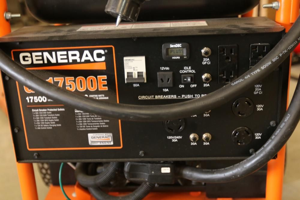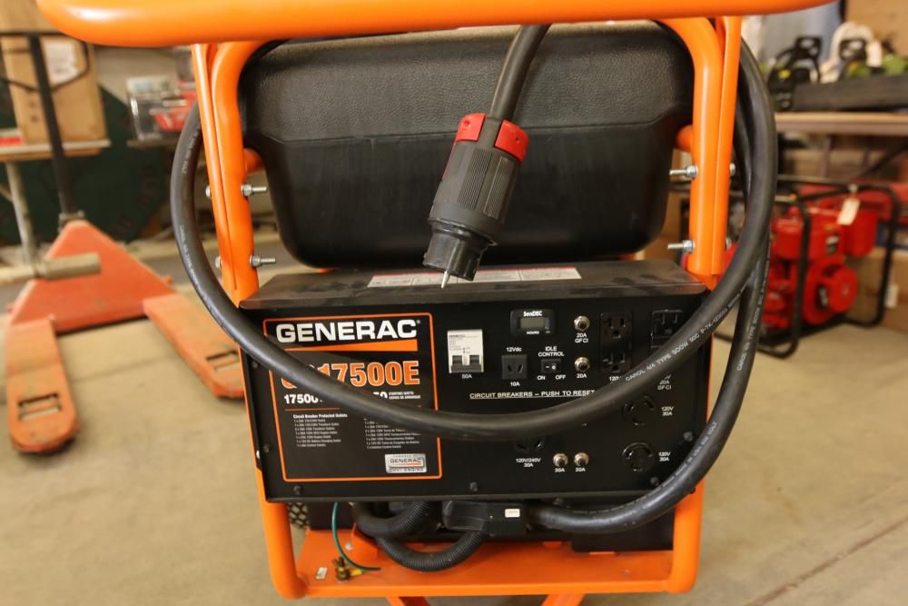 Generac generator 17,500Watts, electric start, hours reading 202.5 hours. Runs and operates as intended.
