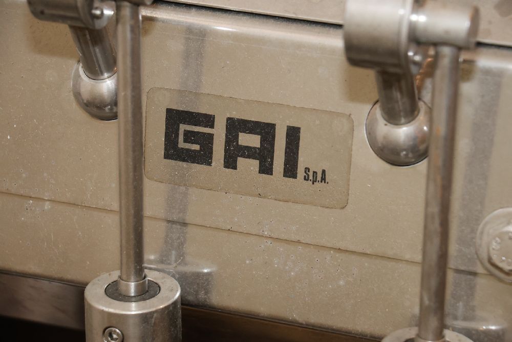 GAI bottling machine. Seller reports: worked when removed from service, current operating condition is unknown. There will be a forklift onsite to assist in loading however the buyer is responsible for the proper and safe removal including bringing the proper tools, equipment and vehicle.