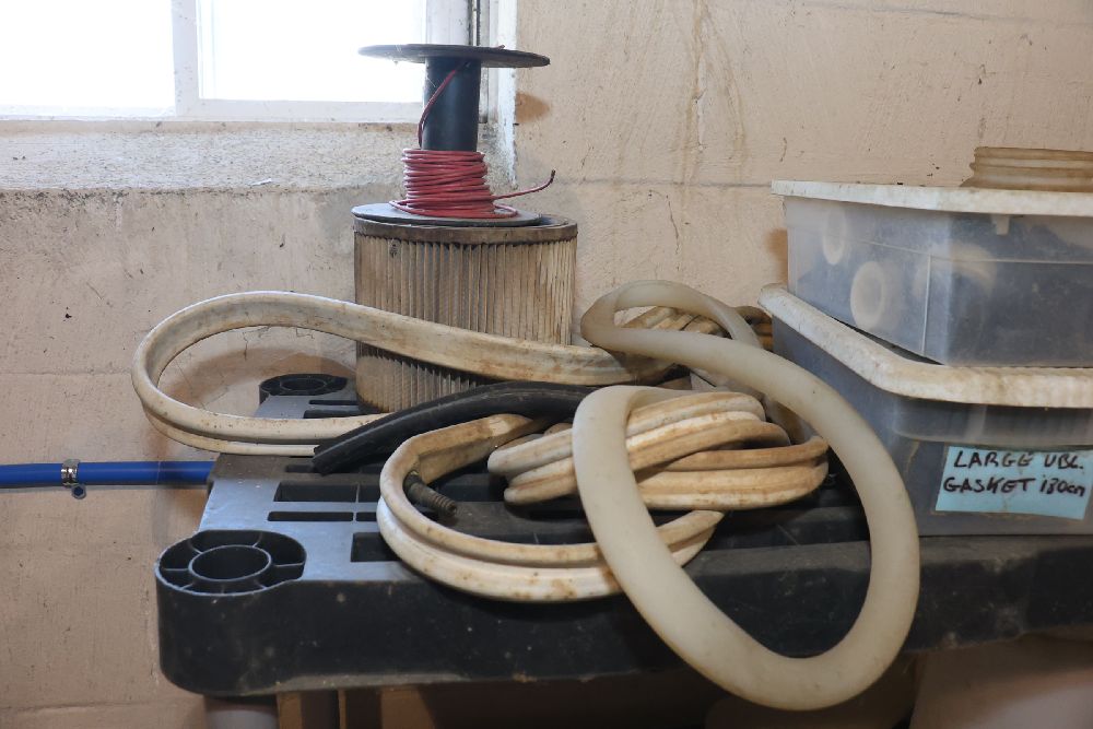 Items include TCM forklift; VE. AR.T fiberglass fermentation cellar; stainless steel storage tank; Defranceschi 39051 Bronzolo cooling tank; Landa VHW3-700 commercial pressure washer; stainless steel Spadoni OMESS plate & frame filter press; Surge "Kube Kooler" sanitary heat exchanger; Europress crusher/destemmer; stainless steel fruit bladder press; 2001 Riempitrice Bottling machine; GAI S.P.A. single-head corker; SS barrels; Mueller tank; Della Toffolla filtration; chest freezers; hanging rack; sanitization bottle trees; spools of trellis wire; candelabra/cafe table/patio furniture; plastic 55 gal. barrels; 4" tubing; shelving; Cambridge pallet scale; empty wine bottles; First pressing table & more. Items are located in Red hook, NY.